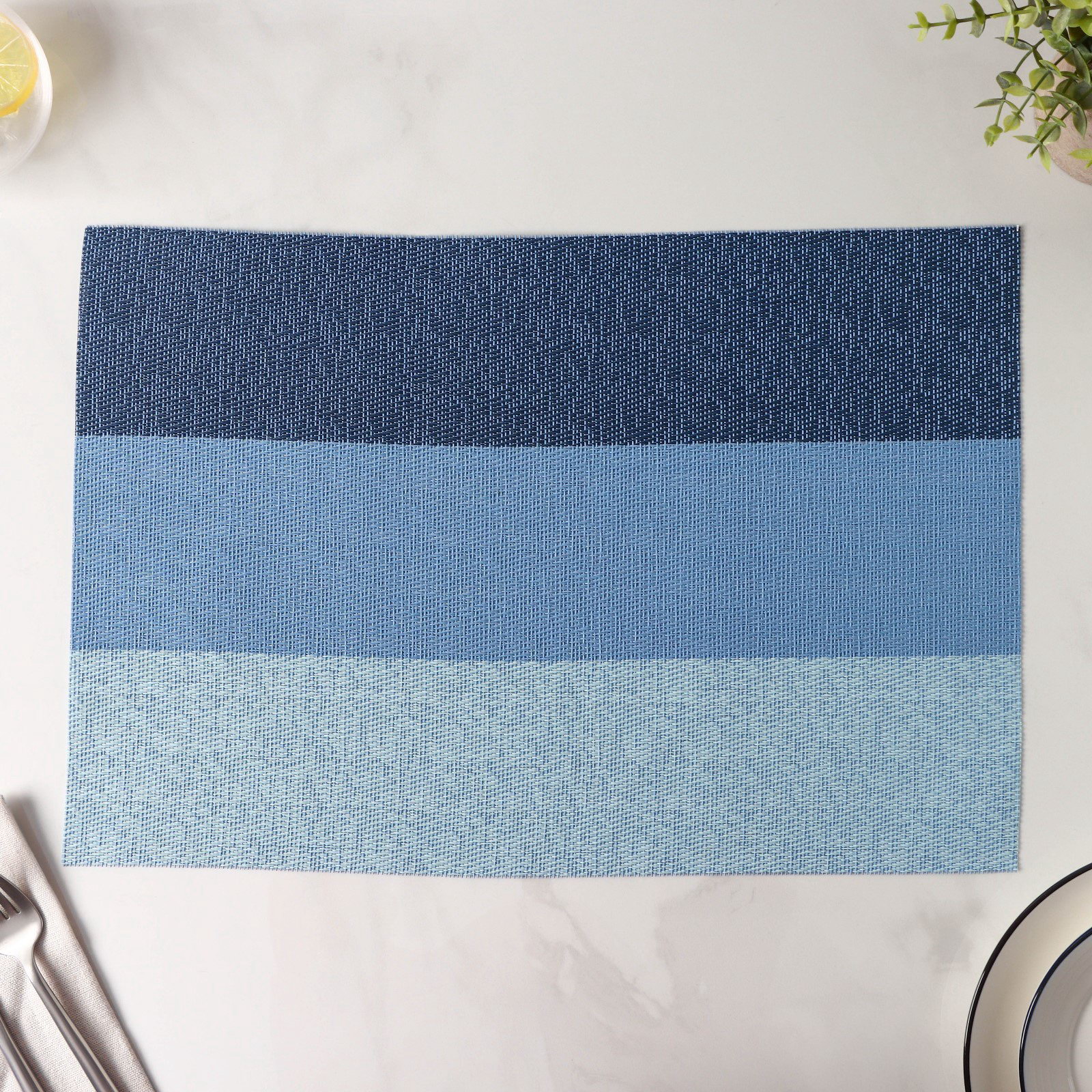 Салфетка сервировочная на стол "Три полосы", 45x30 см, голубая, 30x45 см., Китай