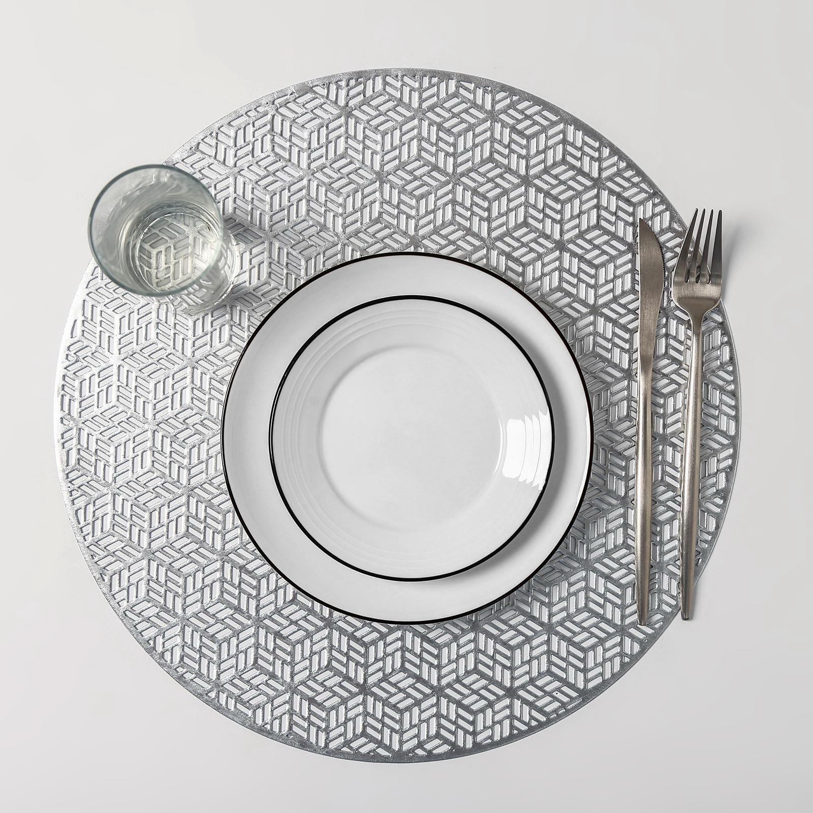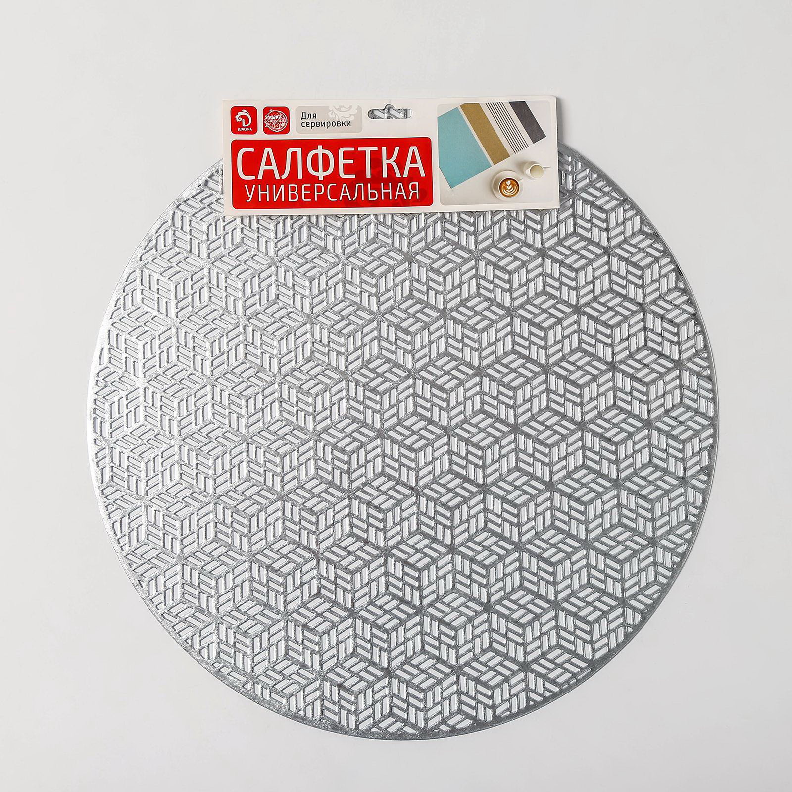 Набор салфеток сервировочных на стол "Соты", 4 шт., d=38 см, серебристый, Доляна, Китай