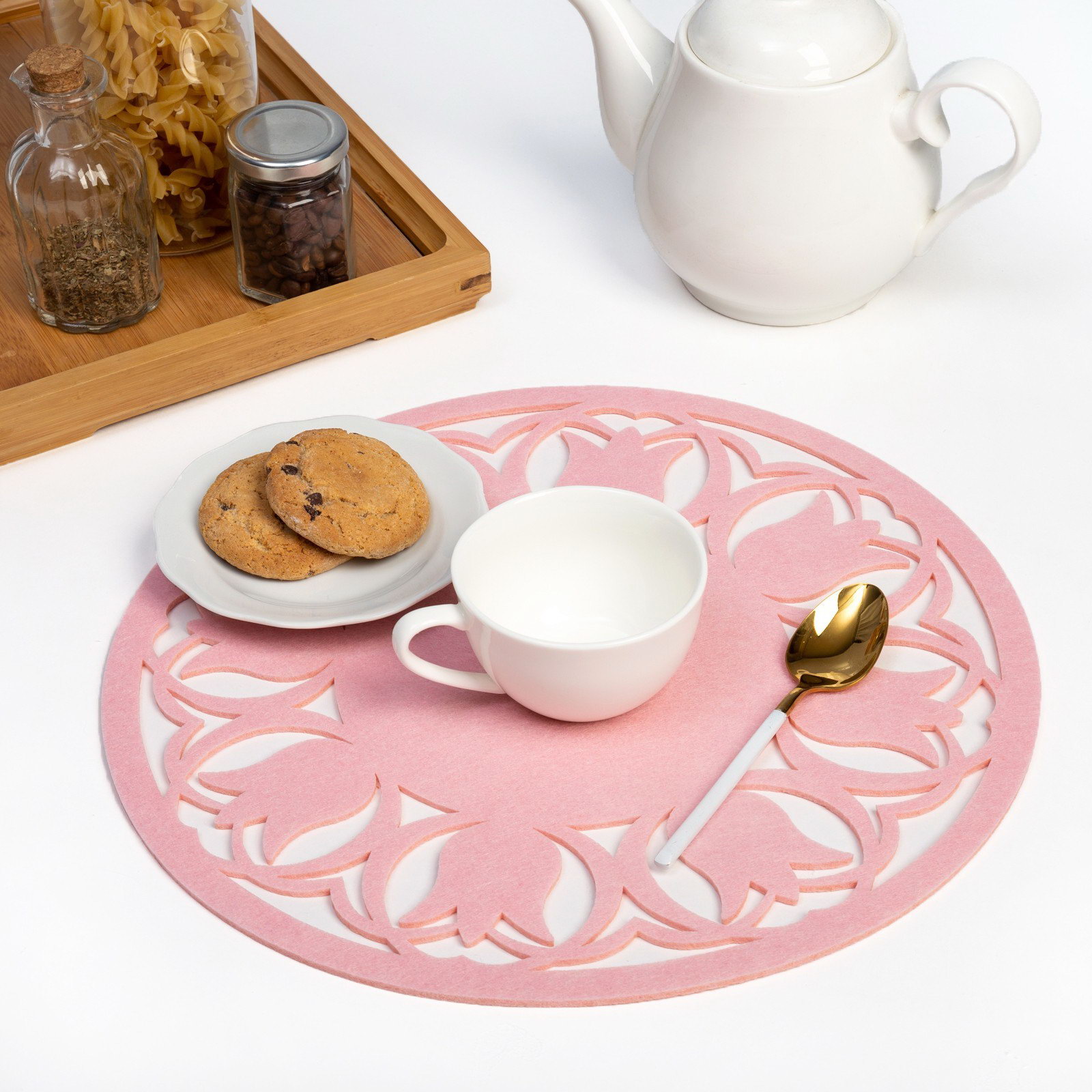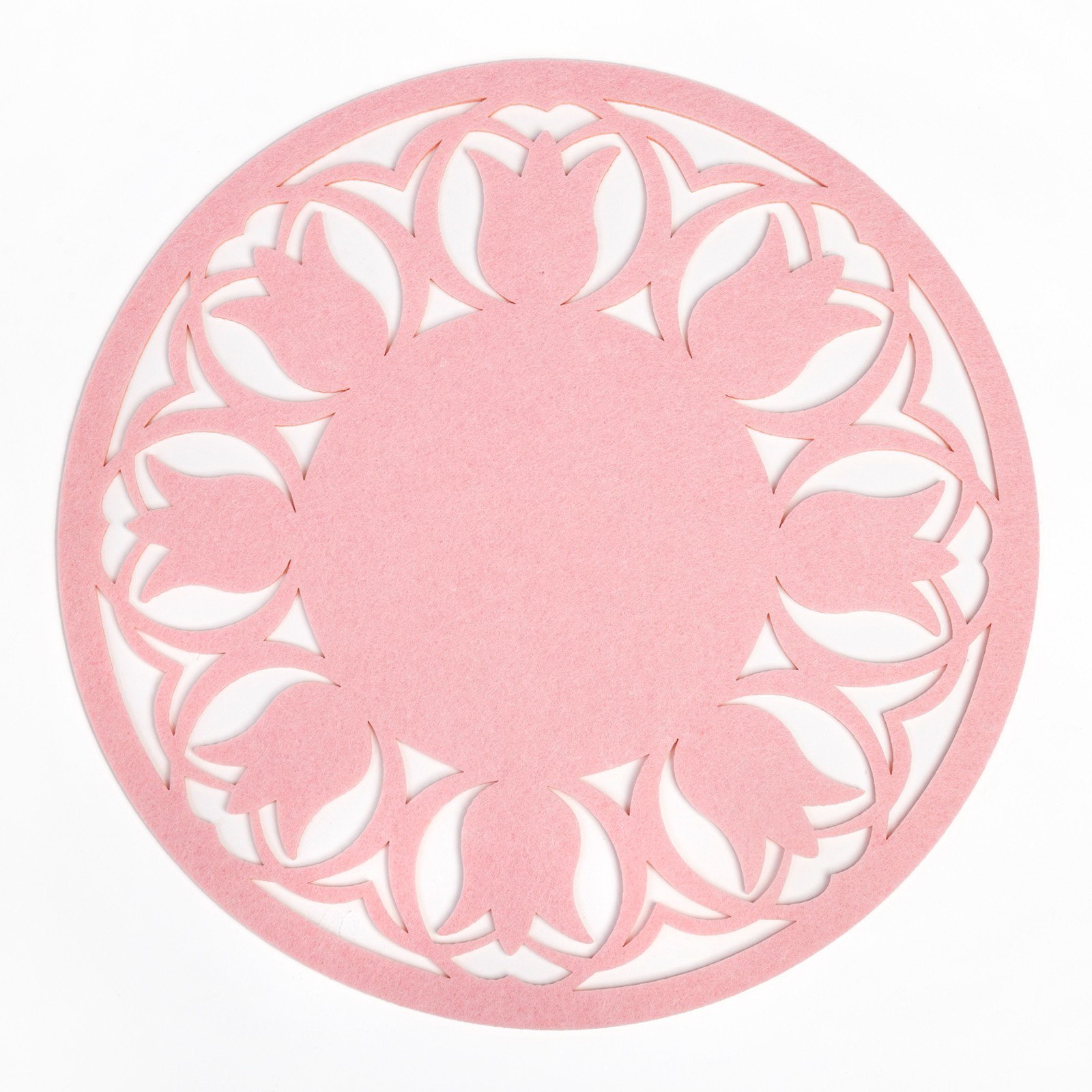 Салфетка декоративная"Тюльпаны" цвет розовый,d 30 см, 100% п/э, фетр, Доляна, Россия