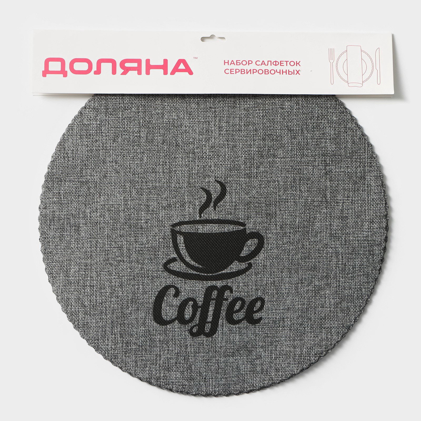 Салфетки сервировочные на стол Coffee, 4 шт., d=37 см, серые, 37x37x0.1 см., Доляна, Китай