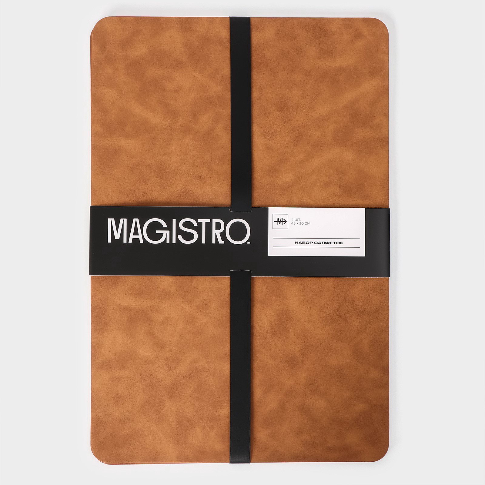 Салфетки сервировочные 4 шт., экокожа, 45x30 см, коричневые, 30x45x0.3 см., Magistro, Китай