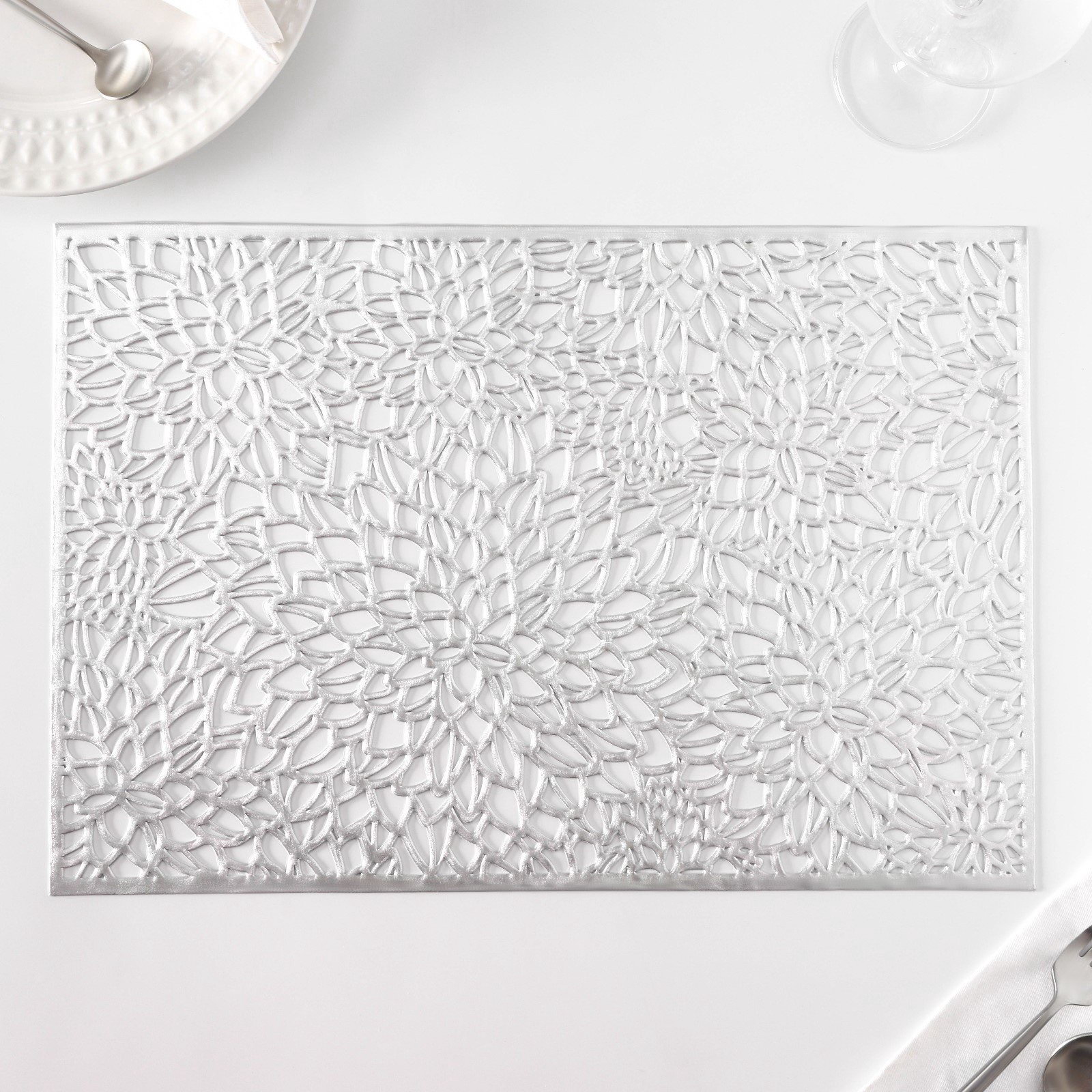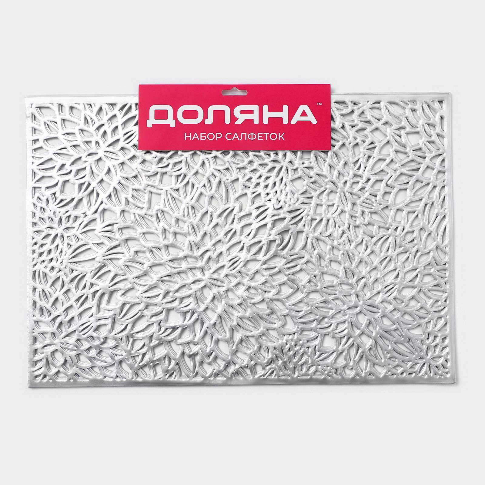Салфетки сервировочные на стол "Астра", 45x30 см, 4 шт., серебряные, 30x45x0.2 см., Доляна, Китай