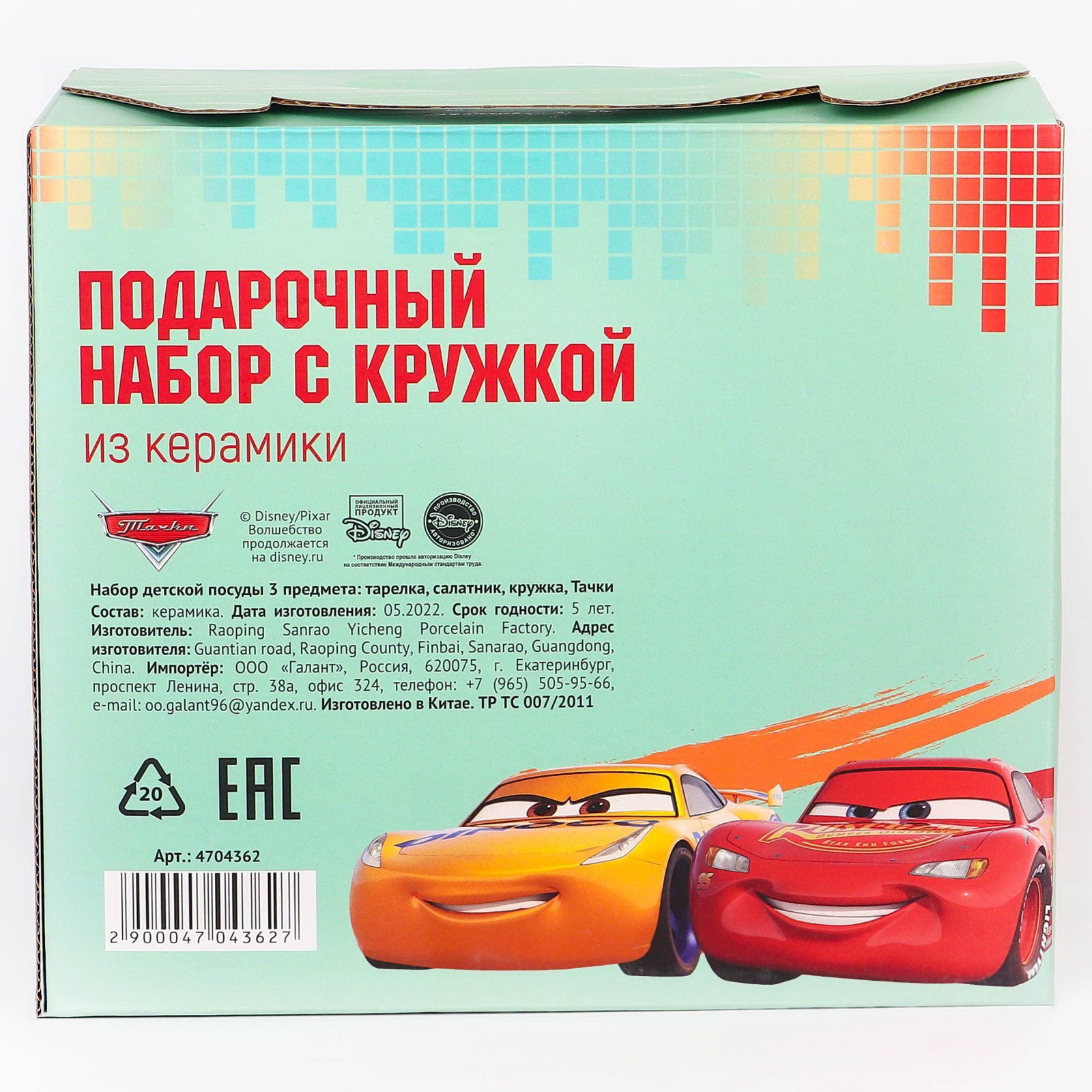 Набор посуды, 3 предмета: тарелка ? 16.5 см, миска ? 14 см, кружка 200 мл, Тачки, 20x20x10 см., Disney, Китай