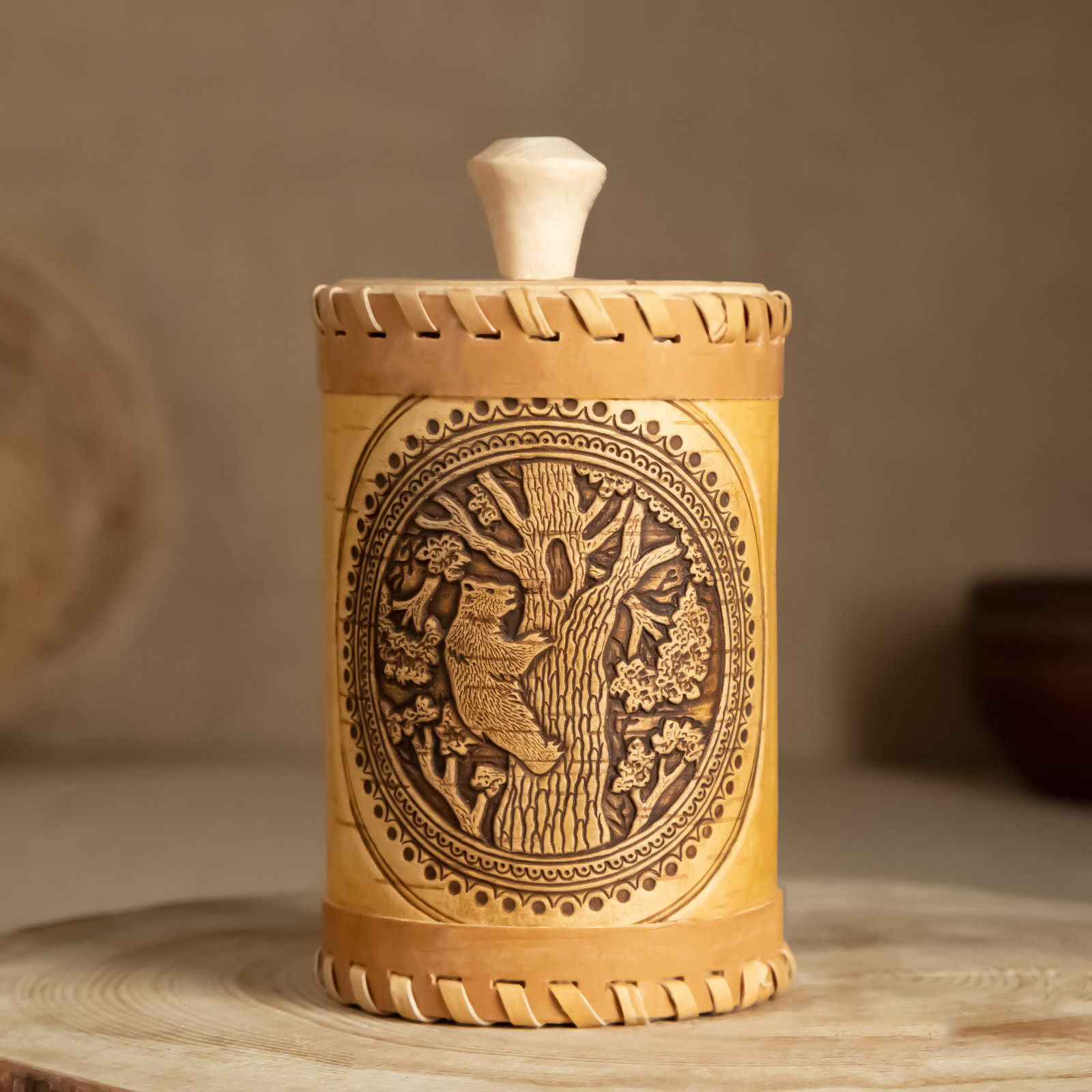 Форма: Круг, Цилиндрическая Размер упаковки: 9 x 12 x 9 см. Герметичная крышка: Нет Набор: Нет В наборе, шт.: 1 Цвет: Коричневый Цвет: Коричневый tnved: 4419009000 Тематика праздника: Универсальная тематика Тип нанесения рисунка: Тиснение Крышка: Да Покрытие: Воск Вид дерева: Берёза Можно мыть в посудомоечной машине: Нет Рисунок: Да Температурное ограничение: Нет Из натурального дерева: Да Назначение: Универсальная Материал крышки: Дерево Объём: 300 мл - 500 мл Особенности: Без особенностей Текстура: С рельефом Береста верхний слой берёзовой коры, который является природным антисептиком благодаря дёгтю в составе. Храните продукты и напитки в берестяной посуде, и они долго не испортятся и сохранят вкусовые качества. Пластичность и лёгкость бересты позволяет мастерам создавать витиеватые узоры и мелкие детали, поэтому берестяная посуда украшает интерьер. Изделия авторской работы находятся на пике популярности в России и других странах. С давних пор считается, что береста обладает оздоровительными свойствами и положительной энергетикой. | ||