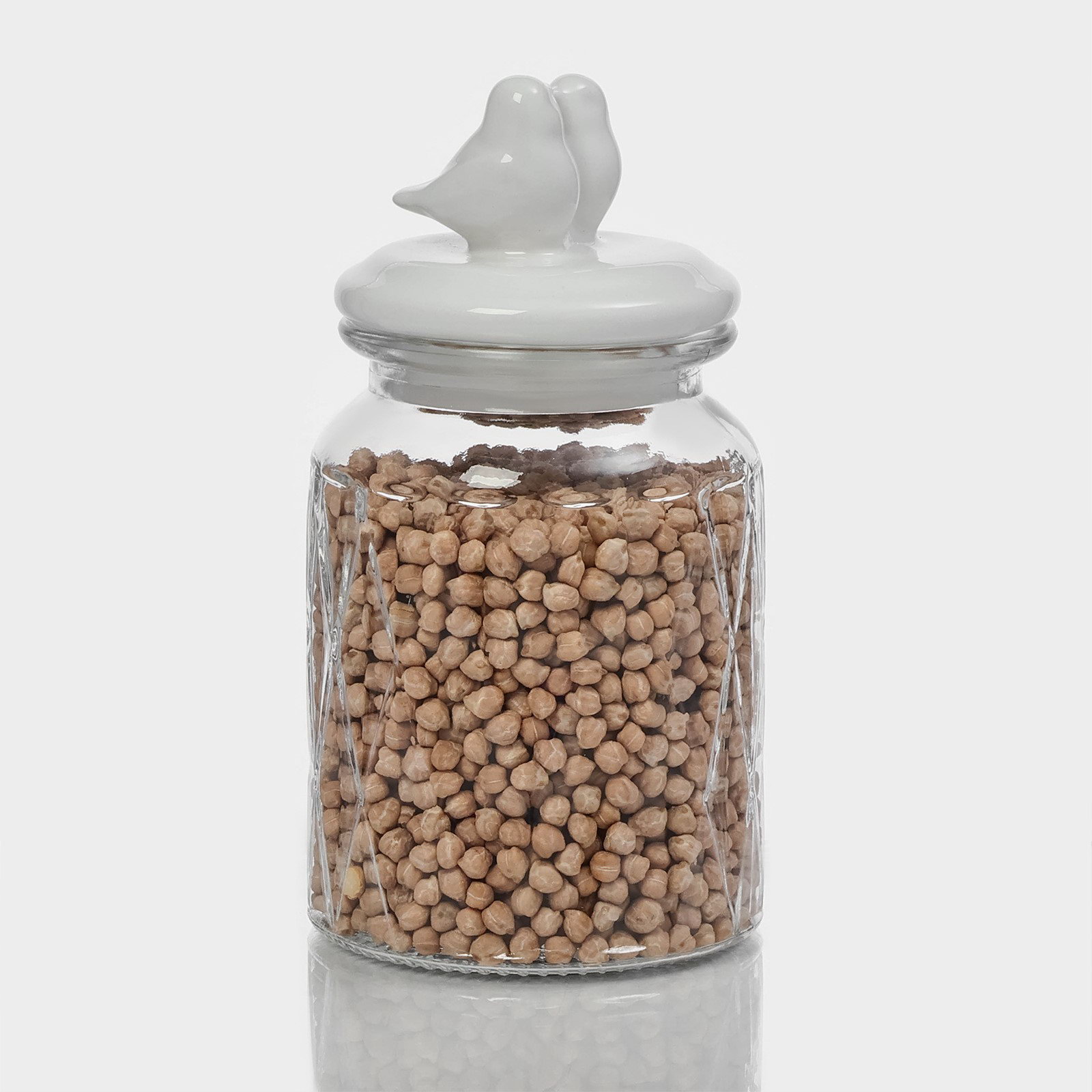 Банка стеклянная для хранения сыпучих продуктов Доляна "Голубки", 800 мл, 11x20 см, с керамической крышкой, 11x11x20 см., Доляна, Китай