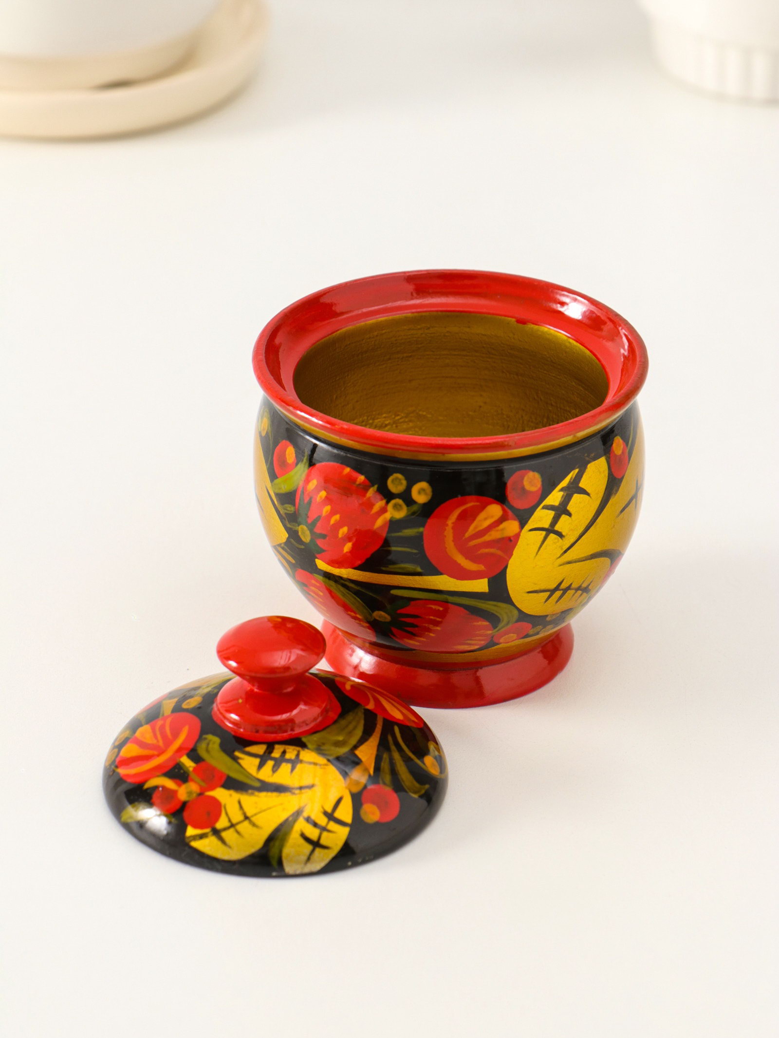 Банка для хранения сыпучих продуктов "Чайница", 11x9 см, хохлома, дерево, Россия
