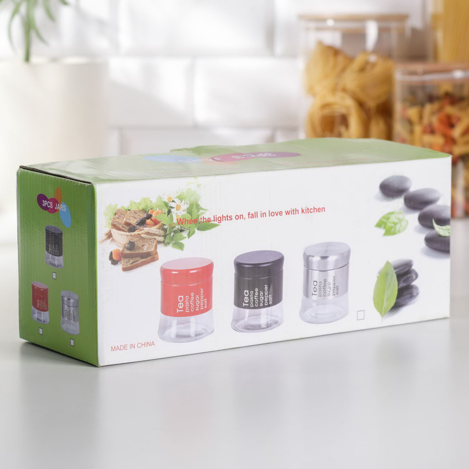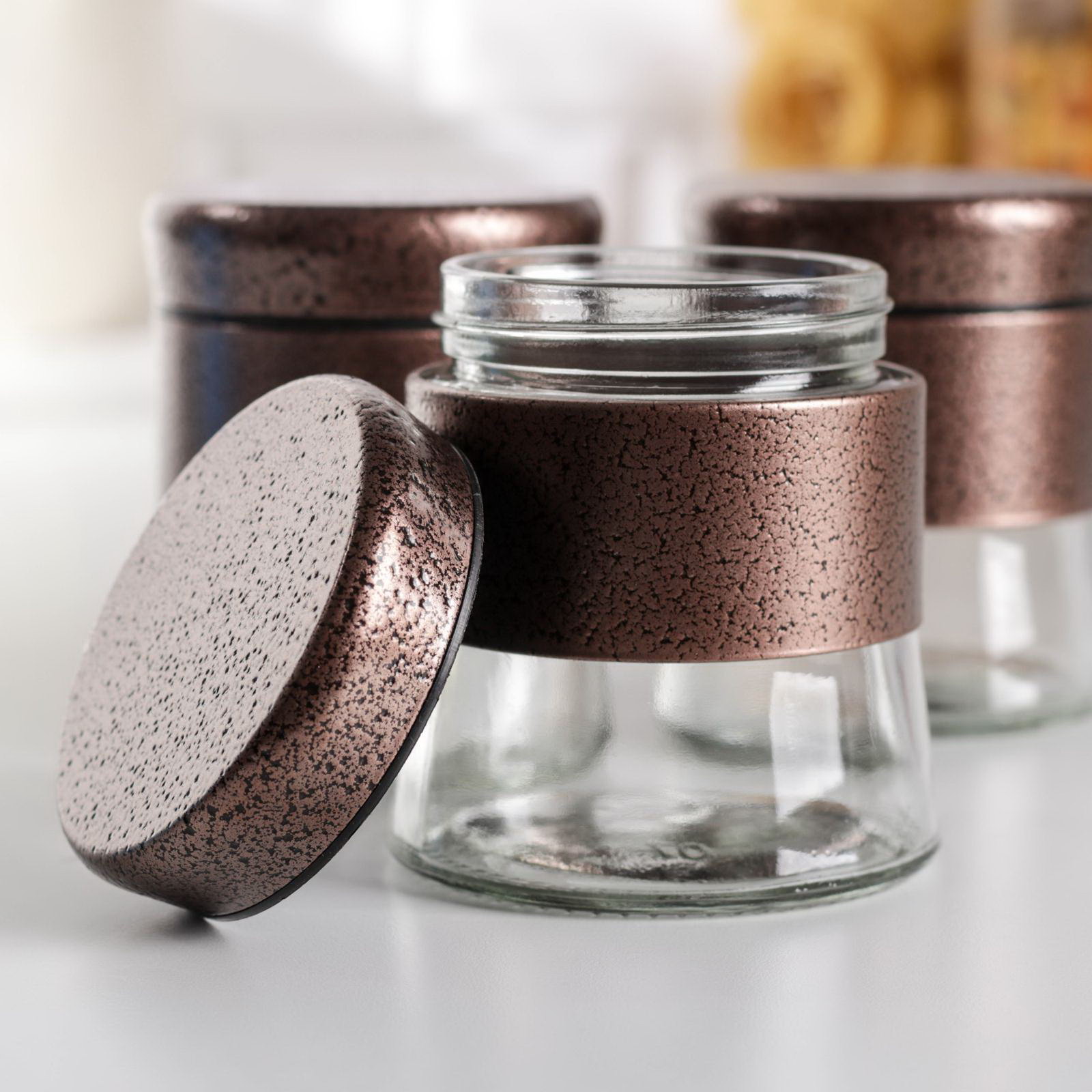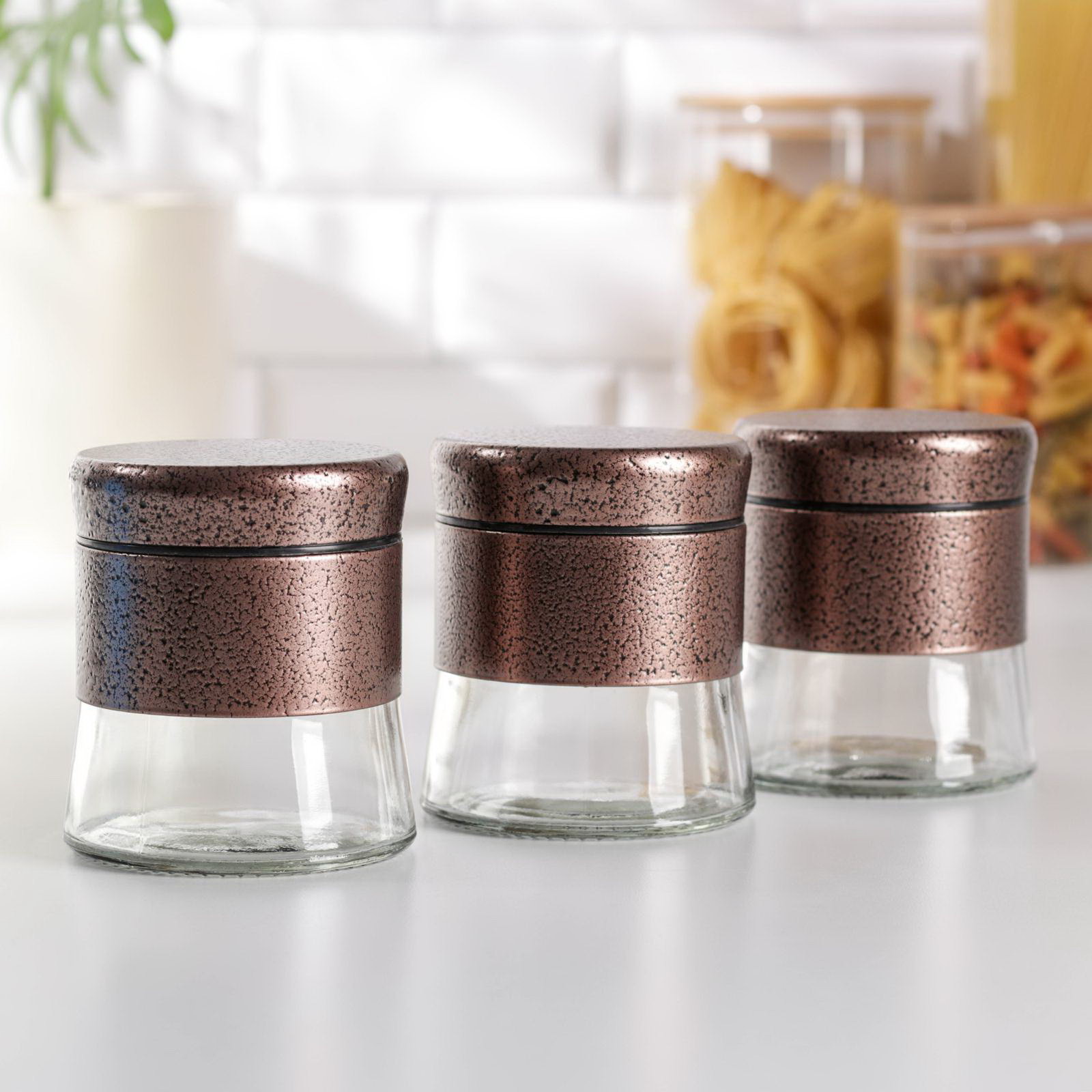 Набор банок для сыпучих продуктов "Трио", 350 мл, 9.5x10 см, 3 шт., цвет бронзовый, 9.5x29x10 см., Китай