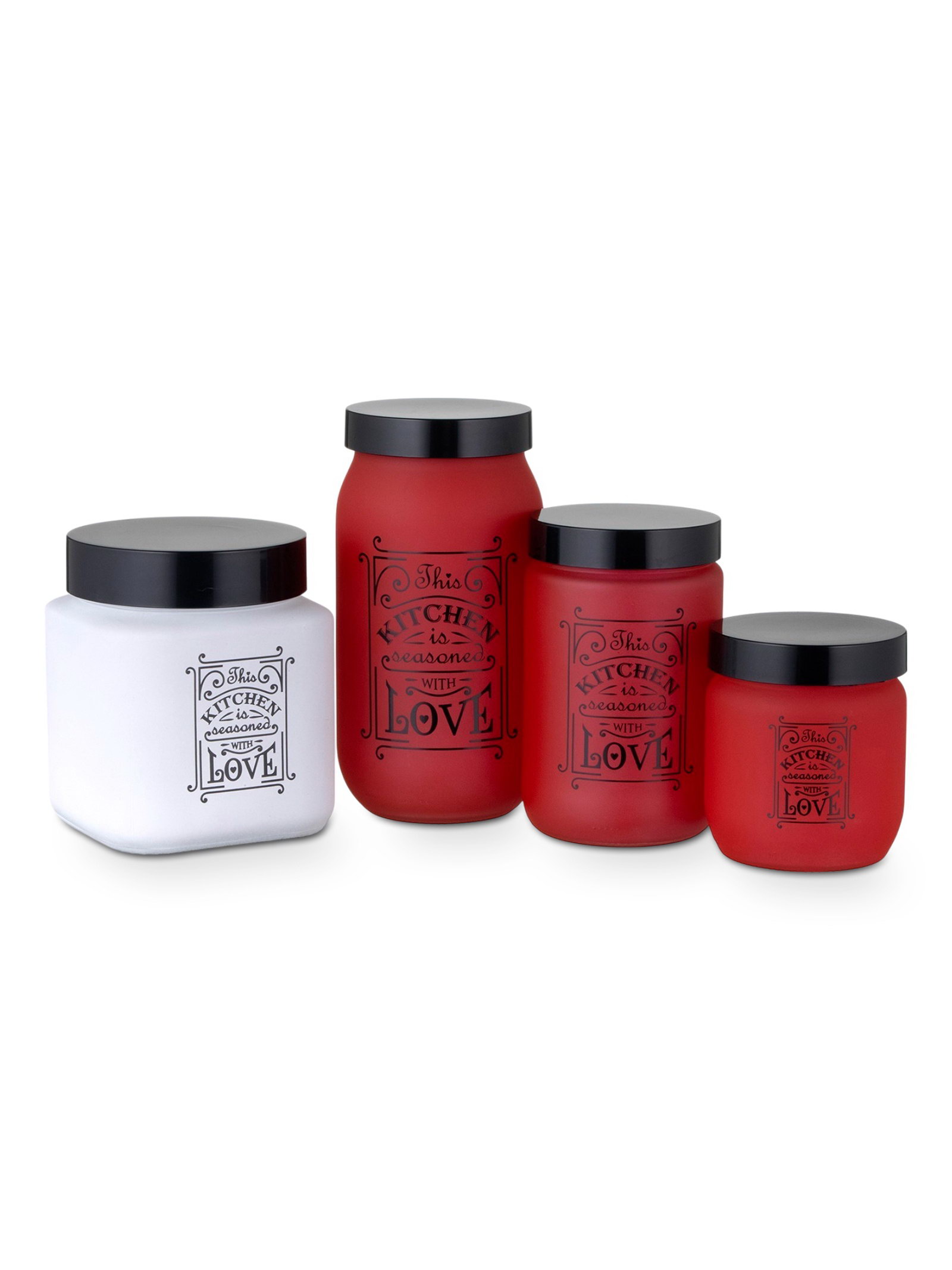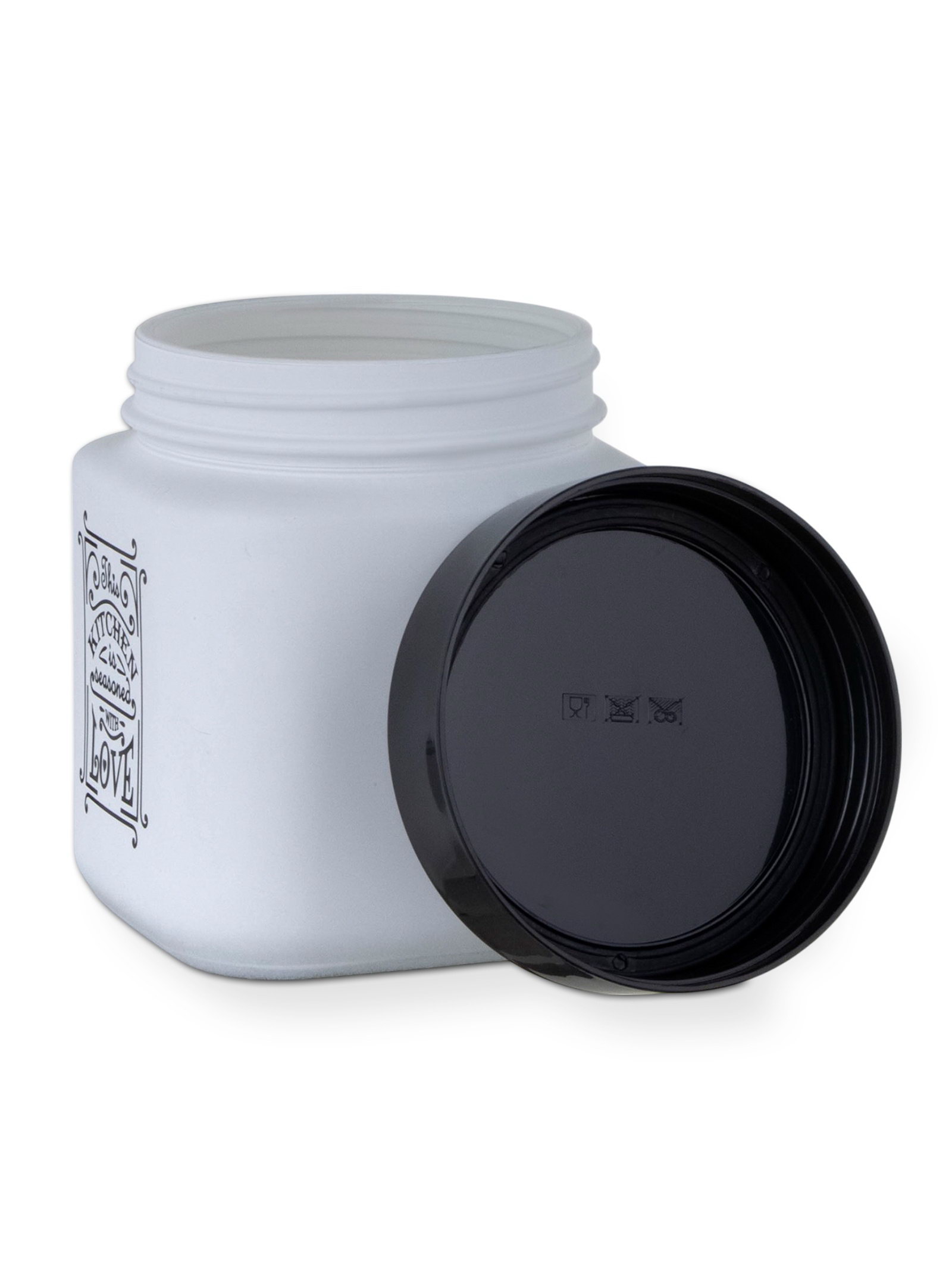 Банка для сыпучих "Любовь на кухне", 1 л, стекло, белая, 12x12x12.3 см., Herevin, Турция