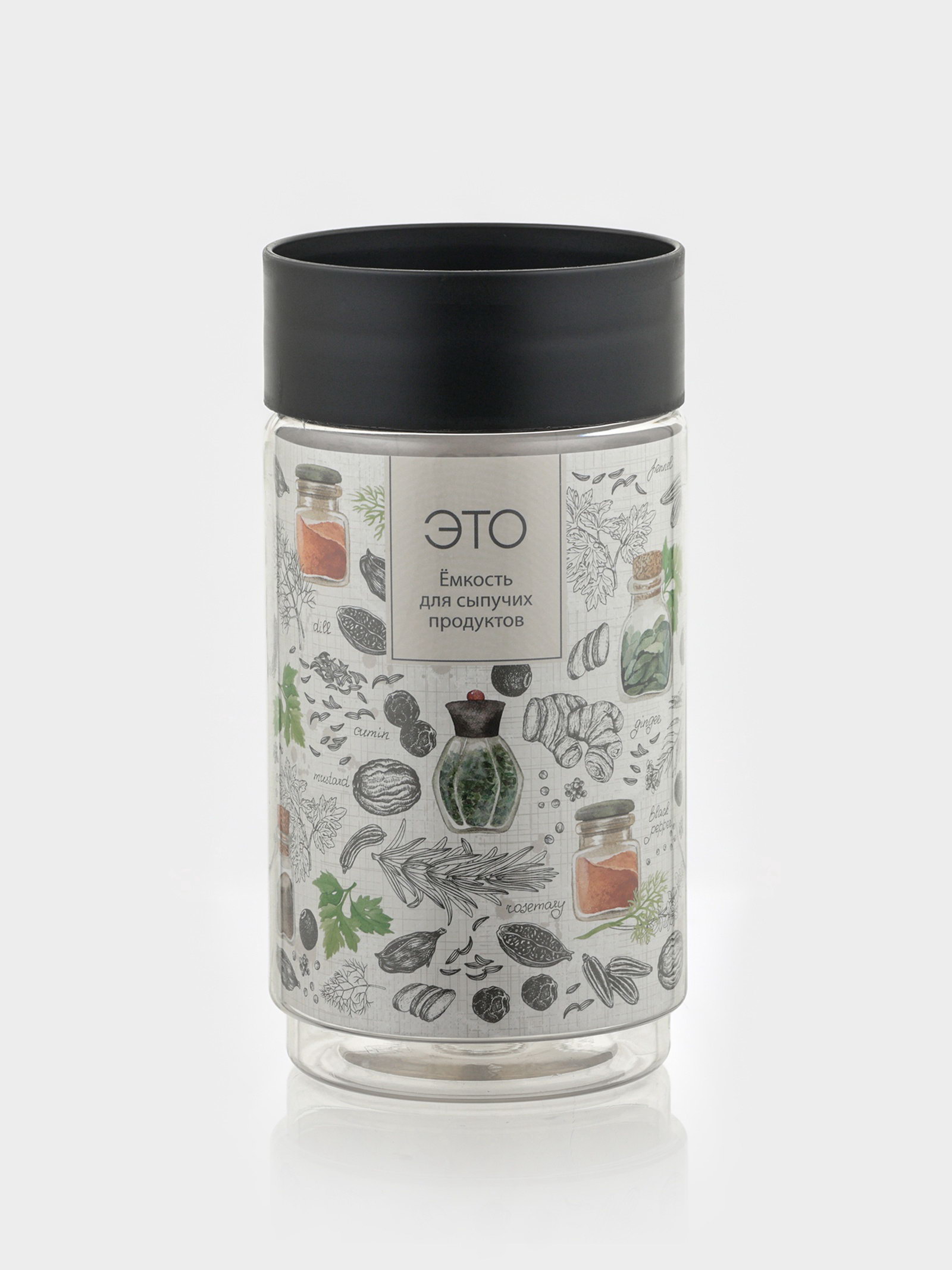 Ёмкость для сыпучих продуктов Asti, 1 л, прозрачный, крышка черная, 1000 мл., Idiland, Россия