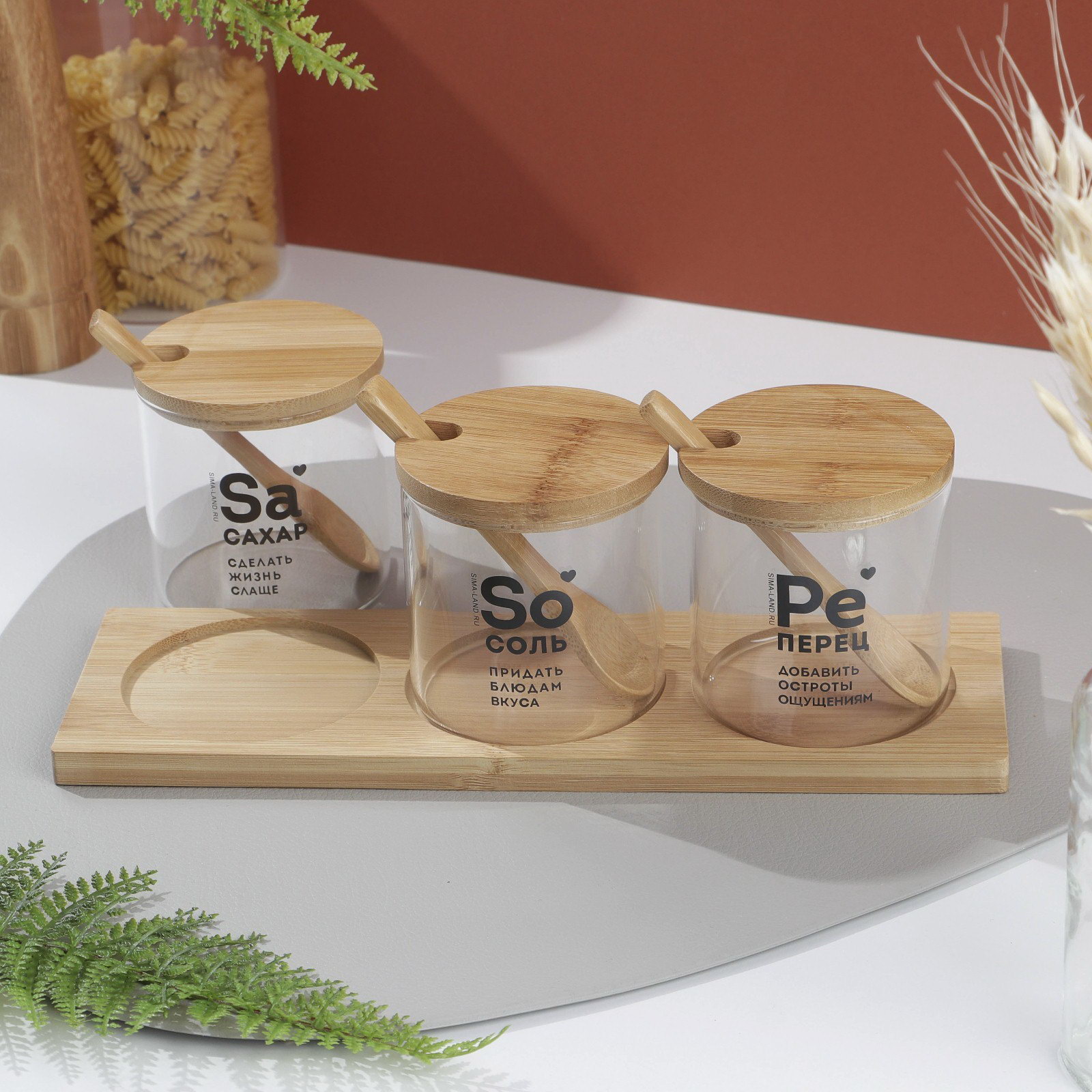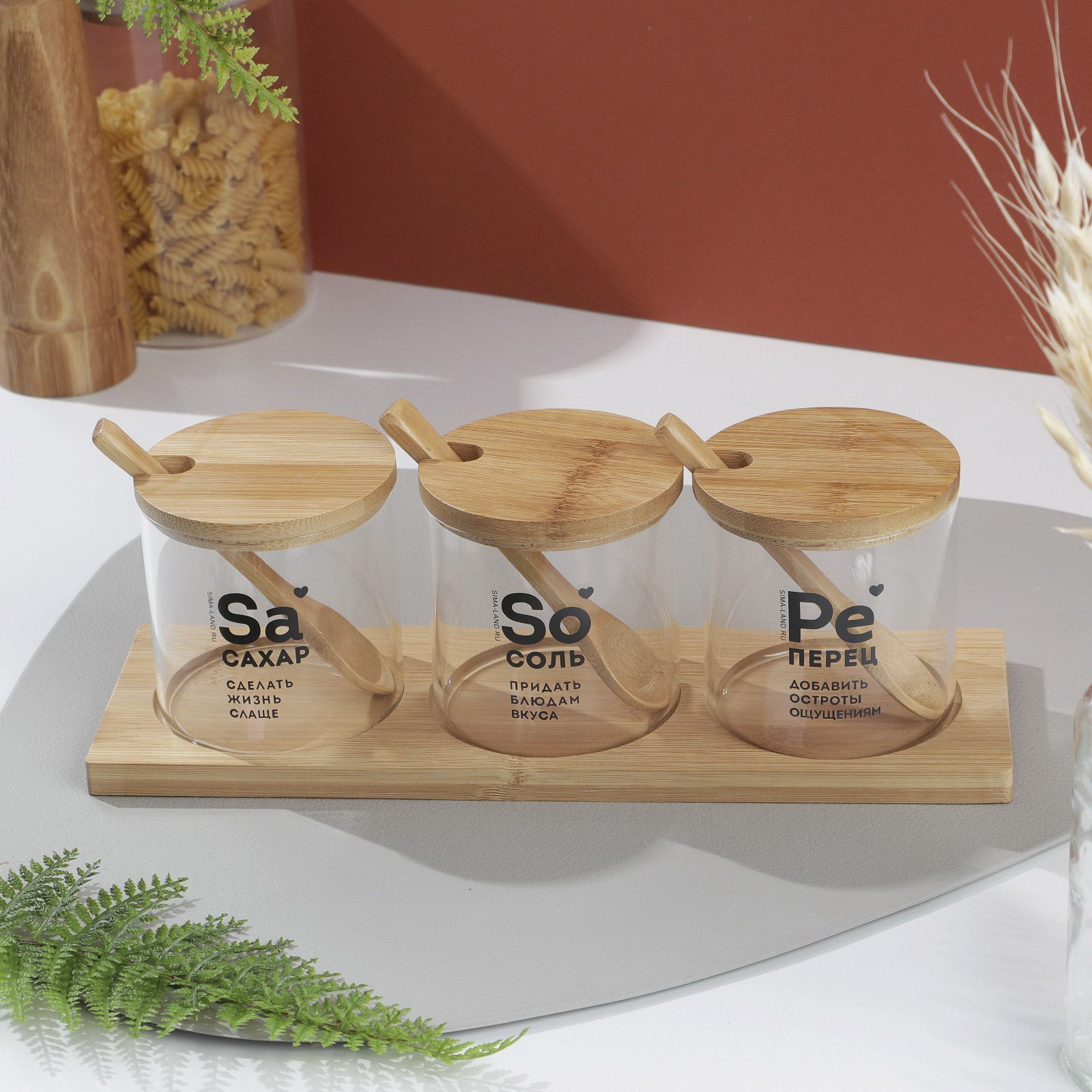 Набор банок для хранения "Перец, соль, сахар", 3 шт., 350 мл, 10x29x10.5 см., Дорого внимание, Китай