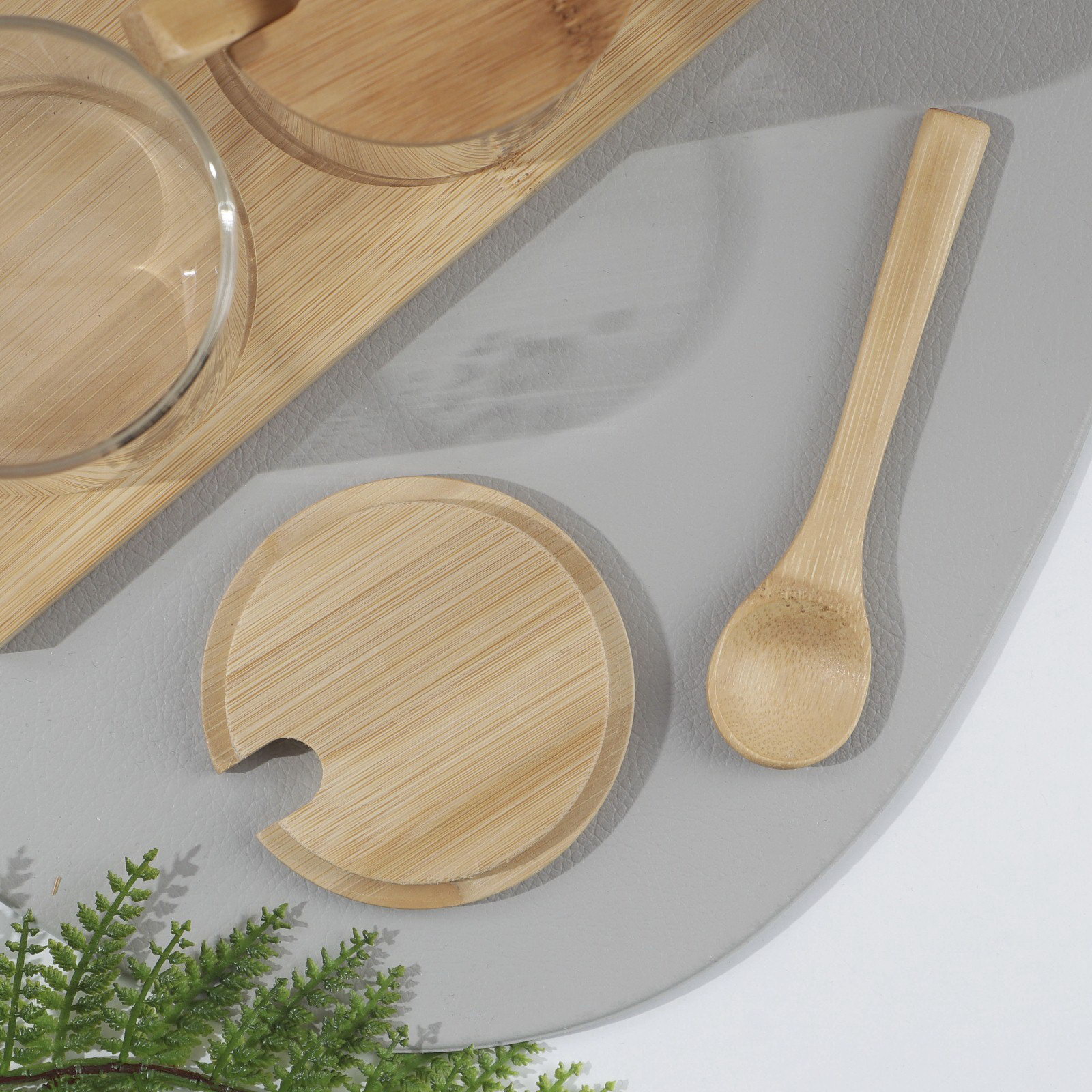 Особенности: На подставке, С ложкой Размер упаковки: 10.5 x 10.5 x 29 см. Форма: Круг tnved: 7013500000 Цвет: Прозрачный Рисунок: Да Набор: Да Герметичная крышка: Нет В наборе, шт.: 3 Можно использовать в СВЧ-печи: Нет Материал крышки: Дерево Назначение: Для сыпучих Диаметр дна, см: 10 Можно мыть в посудомоечной машине: Да Объём: 300 мл - 500 мл Текстура: Гладкая | ||