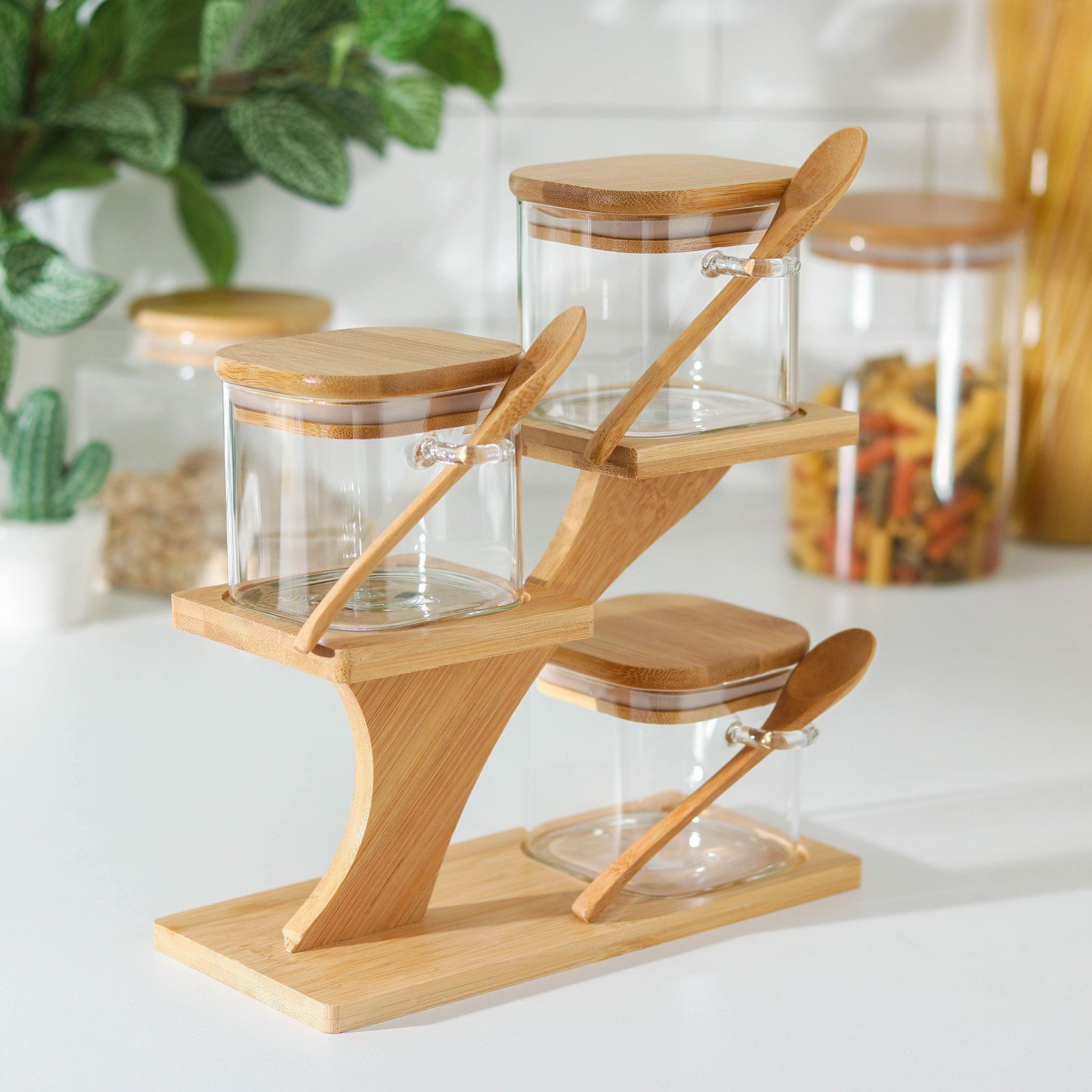 Набор банок для сыпучих продуктов "Эко", 20x10x25 см, на подставке, 3 шт., 10x20x25 см., Китай