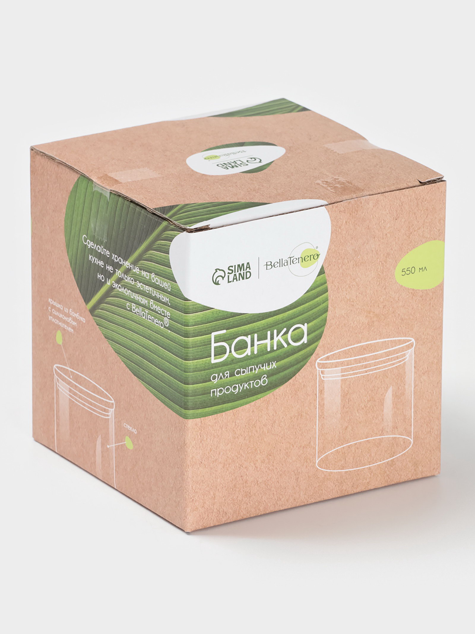 Банка для сыпучих продуктов "Эко", 550 мл, 10x10.5 см, с бамбуковой крышкой, стекло, прозрачная, 10x10x10.5 см., BellaTenero, Китай