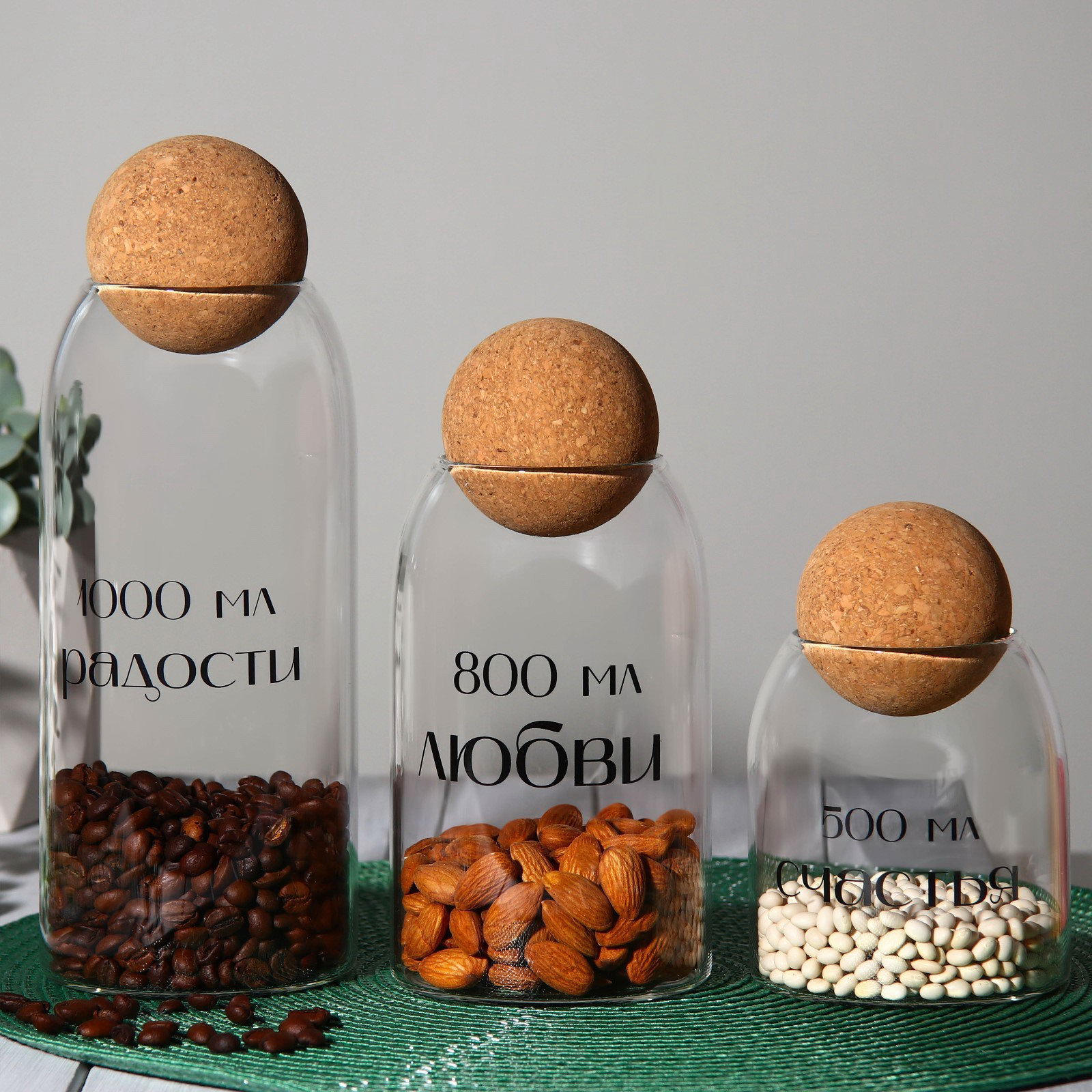 Банка для хранения сыпучих продуктов и круп "800 мл любви", 800 мл, 9x19x9 см., Дорого внимание, Китай