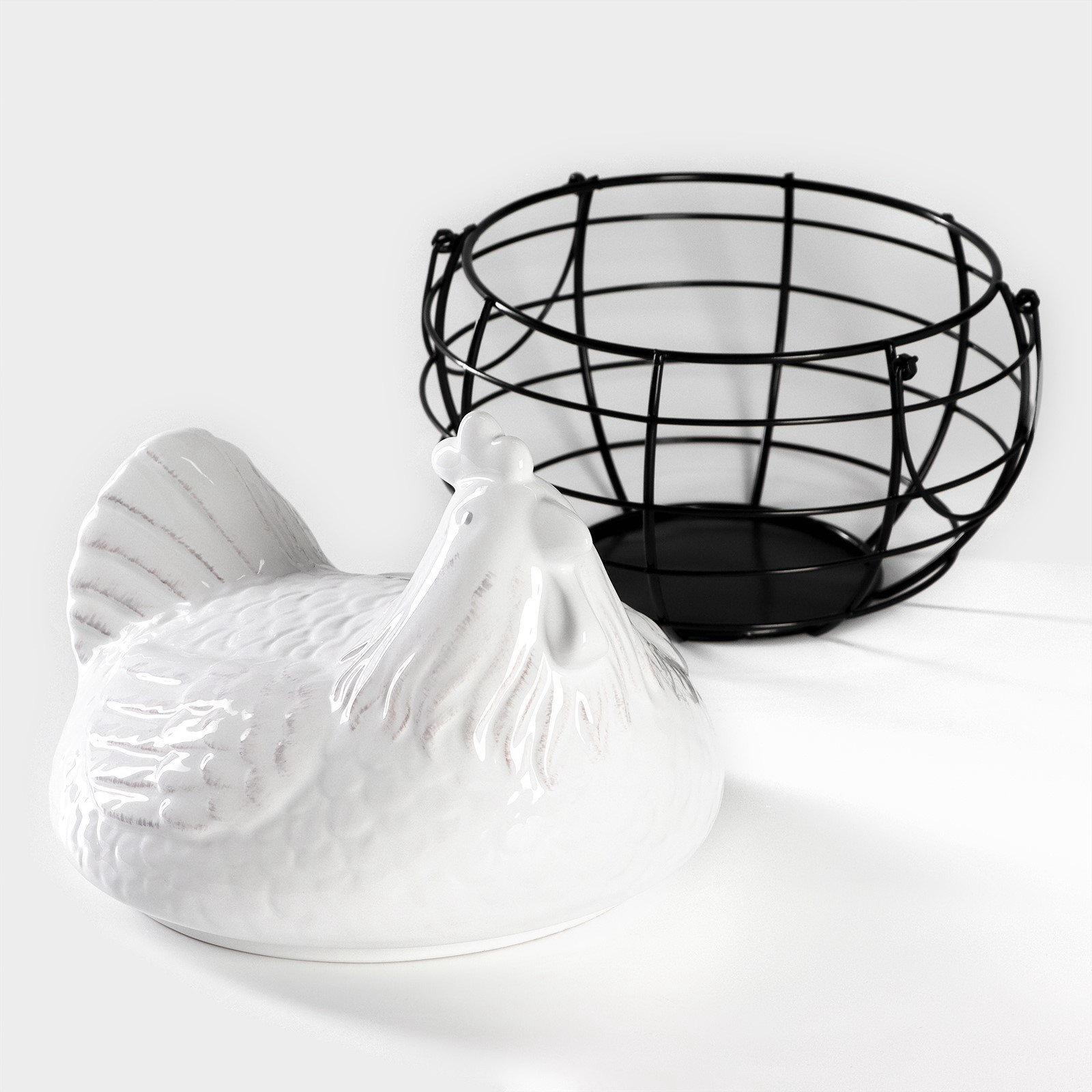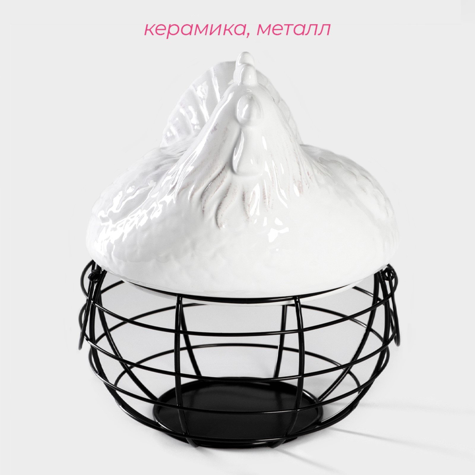 Ёмкость керамическая для хранения "Курочка", 22x20.5 см, цвет белый, 20.5x22x26.5 см., Доляна, Китай