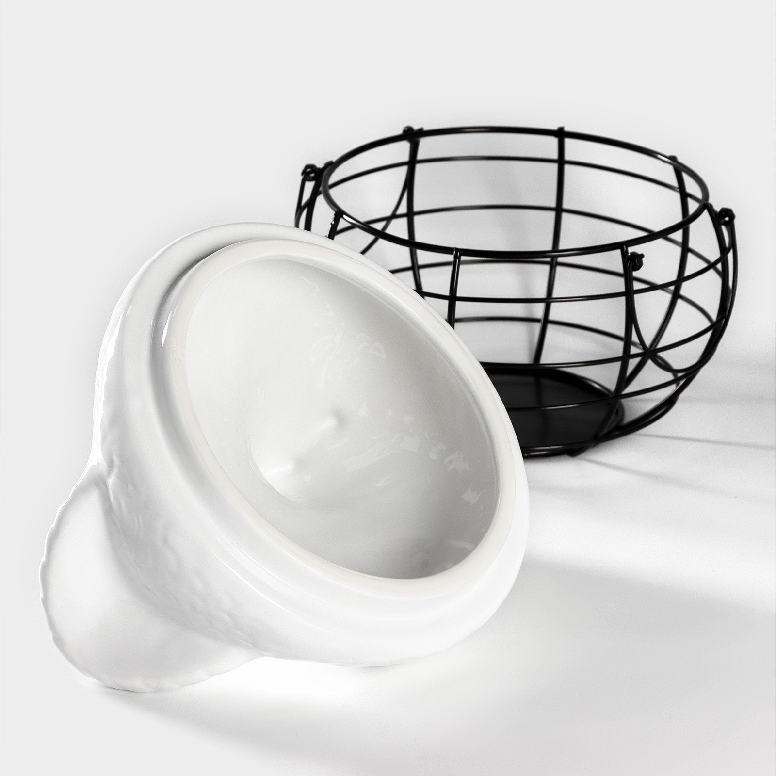 Особенности: Без особенностей, Без особенностей Цвет: Белый, Чёрный Размер упаковки: 22 x 27 x 22 см. Матовая поверхность: Нет Крышка: Да Форма: Фигурная tnved: 6912002600 Рисунок: Нет Герметичная крышка: Нет В наборе, шт.: 1 Набор: Нет Материал крышки: Керамика Можно мыть в посудомоечной машине: Нет Текстура: С рельефом Запрет реализации по сегментам: 00000000485 Ёмкость для хранения Доляна "Курочка" - незаменимая вещь на кухне любой хозяйки. Основание ёмкости изготовлено из металла, фигурная крышка выполнена из керамики. Благодаря оригинальному дизайну, изделие гармонично дополнит сервировку стола, а также прекрасно подойдёт в качестве подарка на любой праздник, в том числе на Пасху. Не рекомендуется использовать в СВЧ-печи и посудомоечной машине. | ||