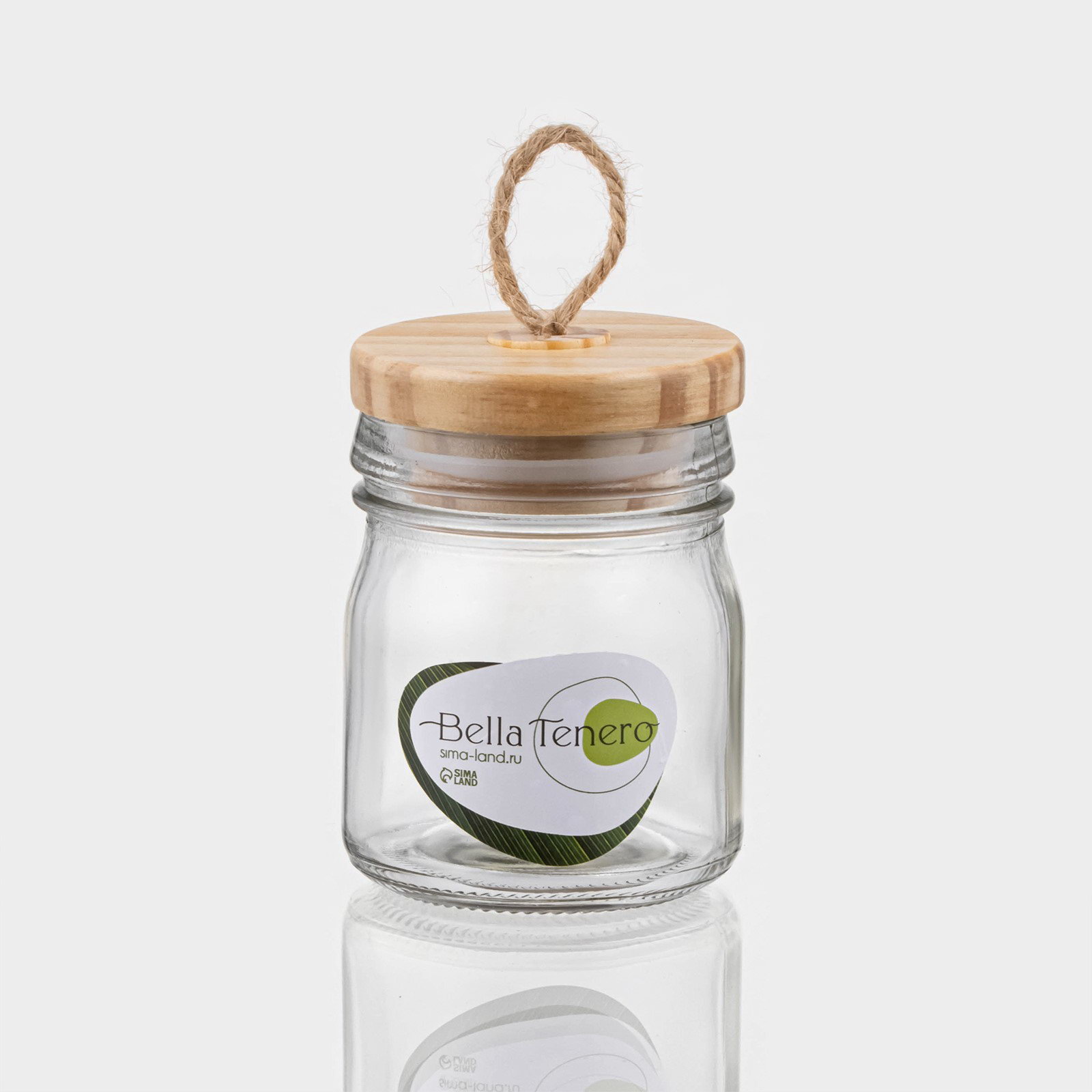 Банка стеклянная для хранения сыпучих продуктов "Эко", 200 мл, 6.5x9 см, с бамбуковой крышкой, 6.5x6.5x9 см., BellaTenero, Китай