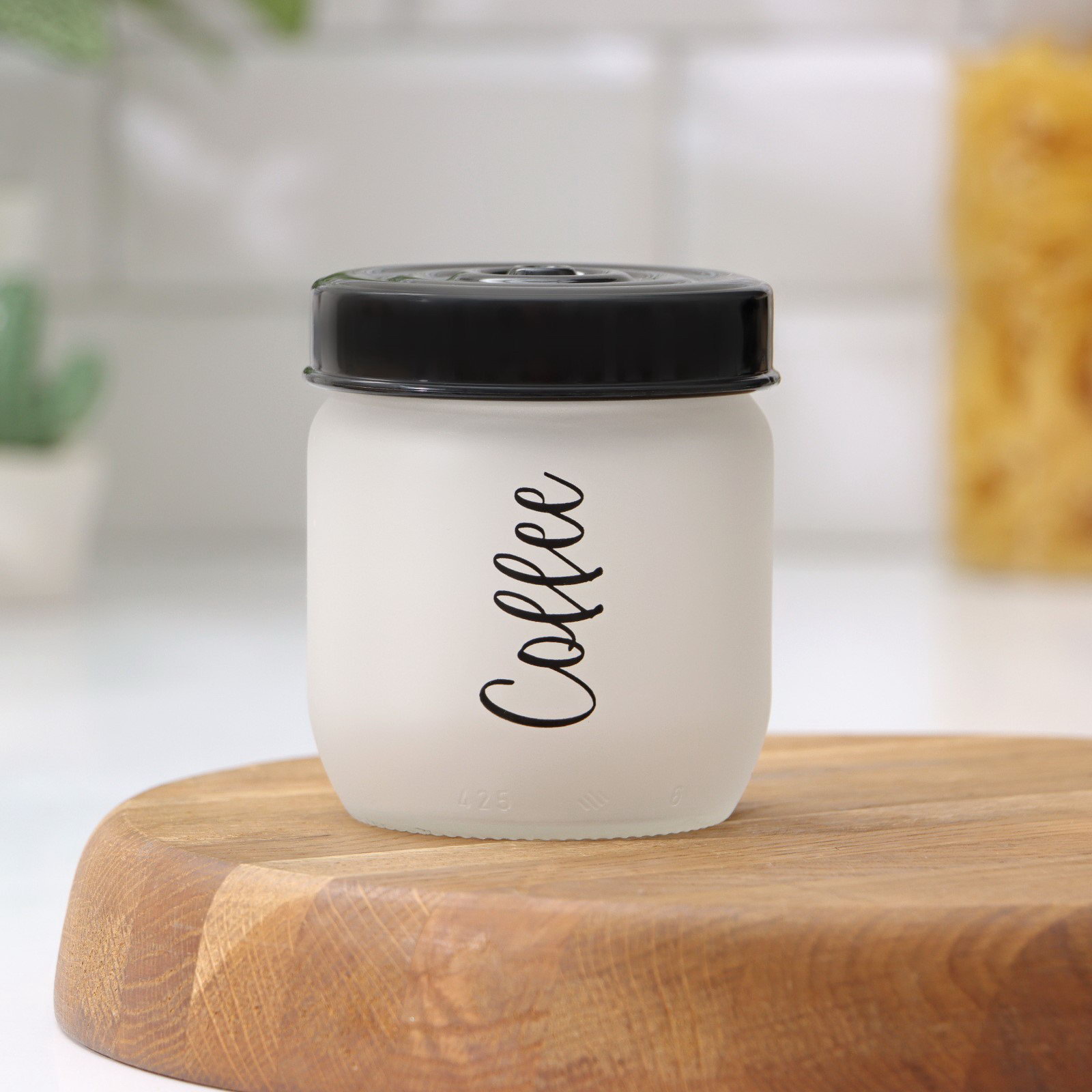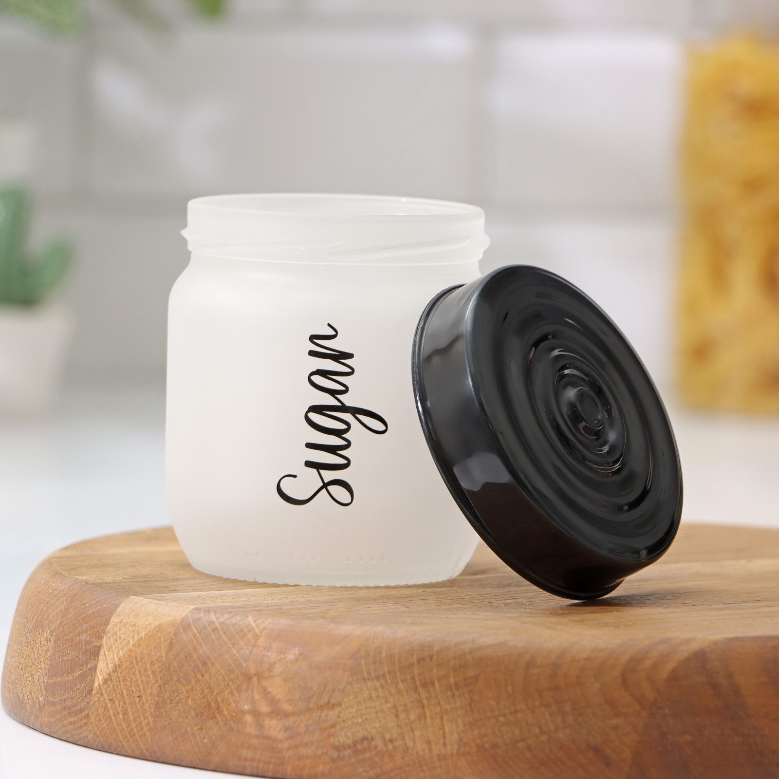 Банка стеклянная для сыпучих продуктов "Классика", 425 мл, надпись МИКС, 8.5x8.5x10 см., Herevin, Турция