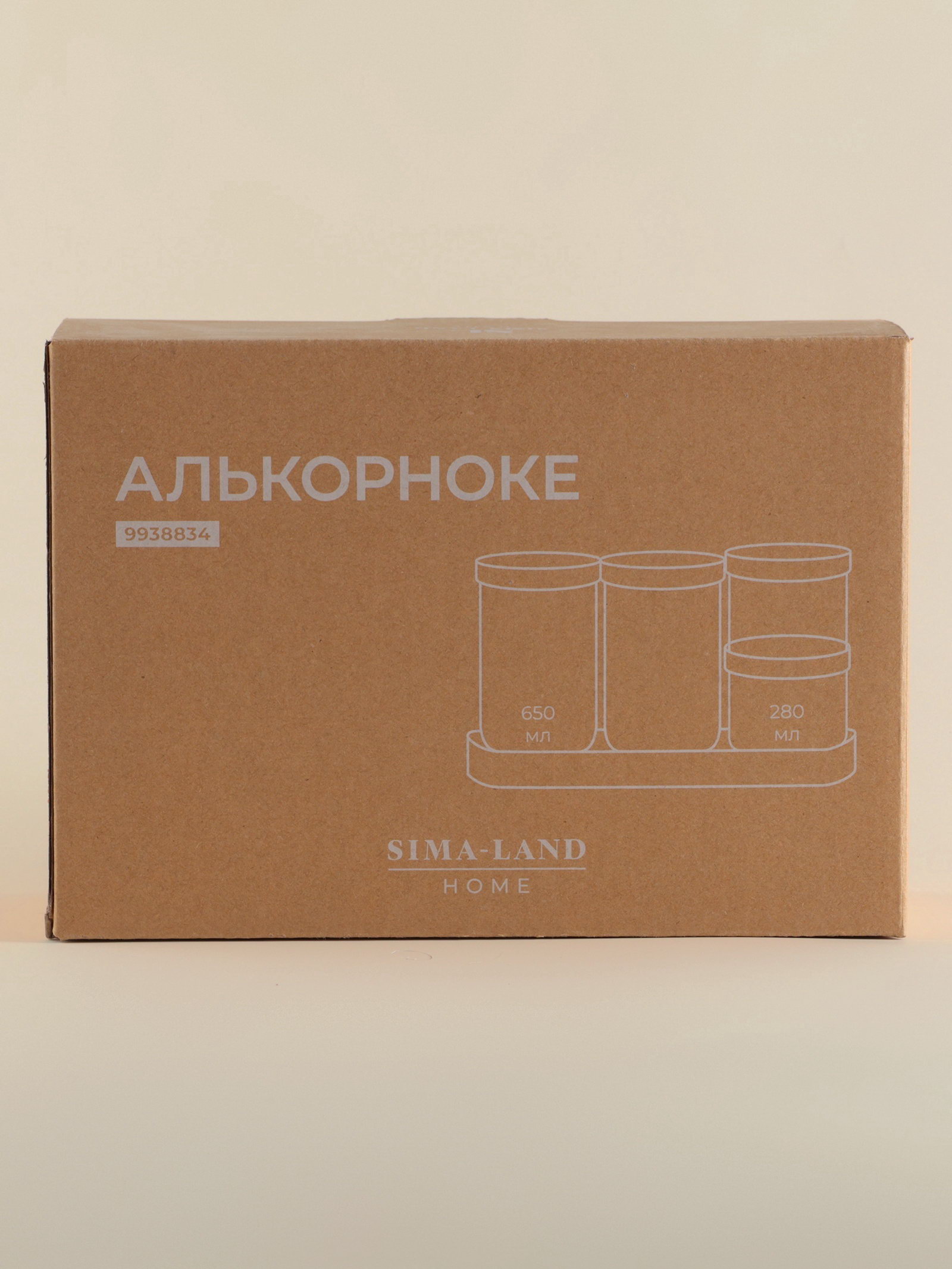 Банки для сыпучих SL Home "Алькорноке", 2 банки 280 ми, 2 банки 650 мл, с пробковой крышкой, на подставке, стекло, прозрачные, 9.7x26x18 см., Sima-Land Home, Китай