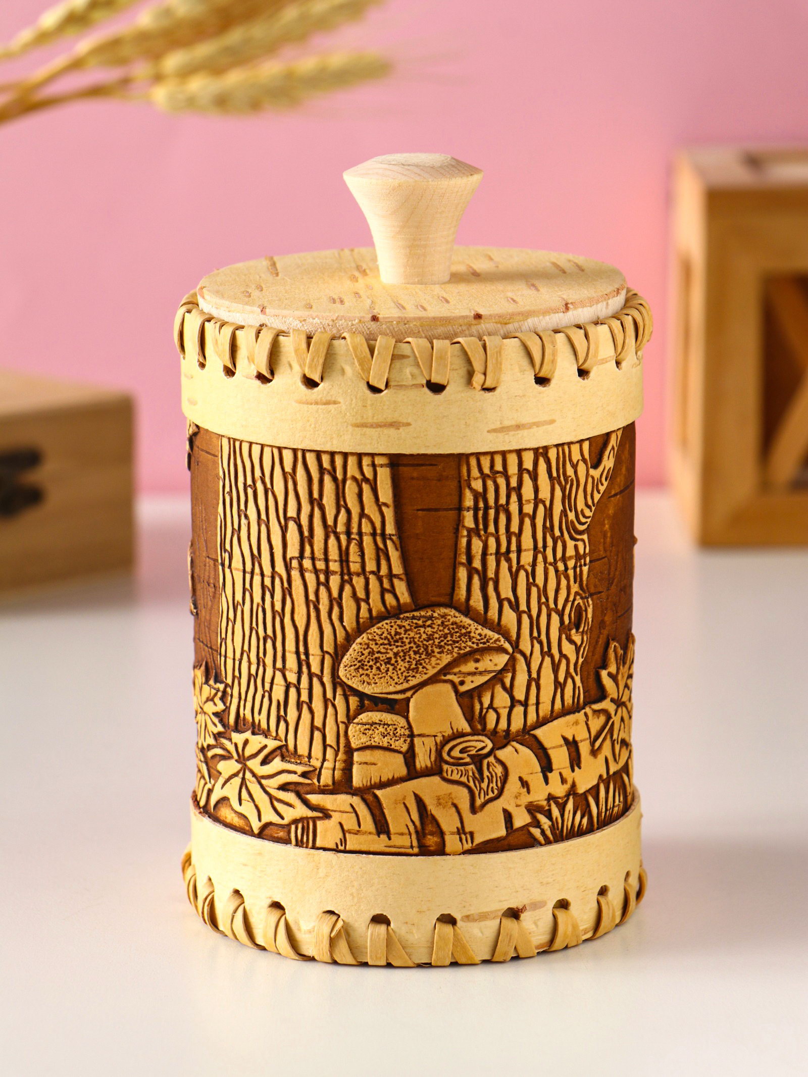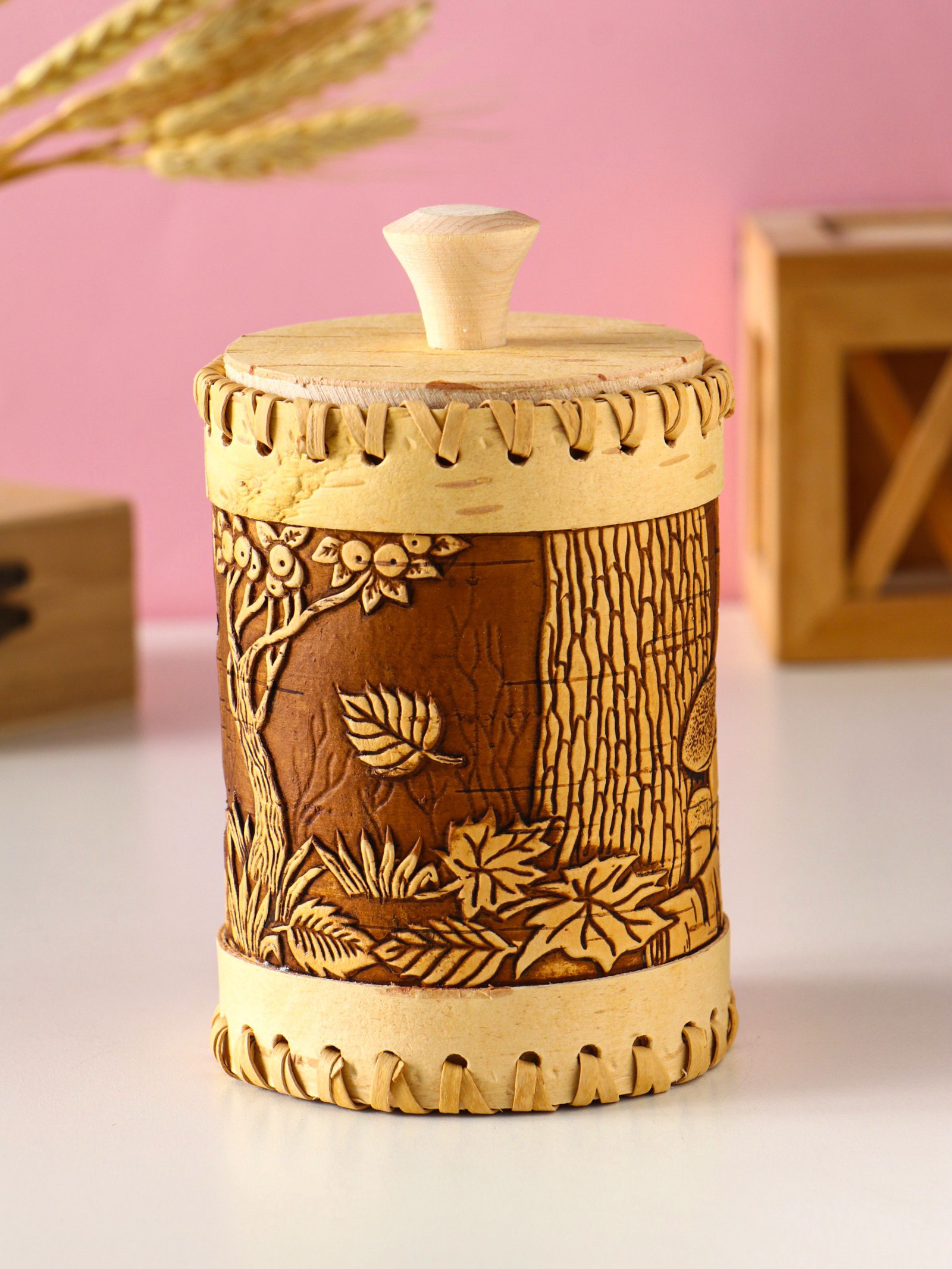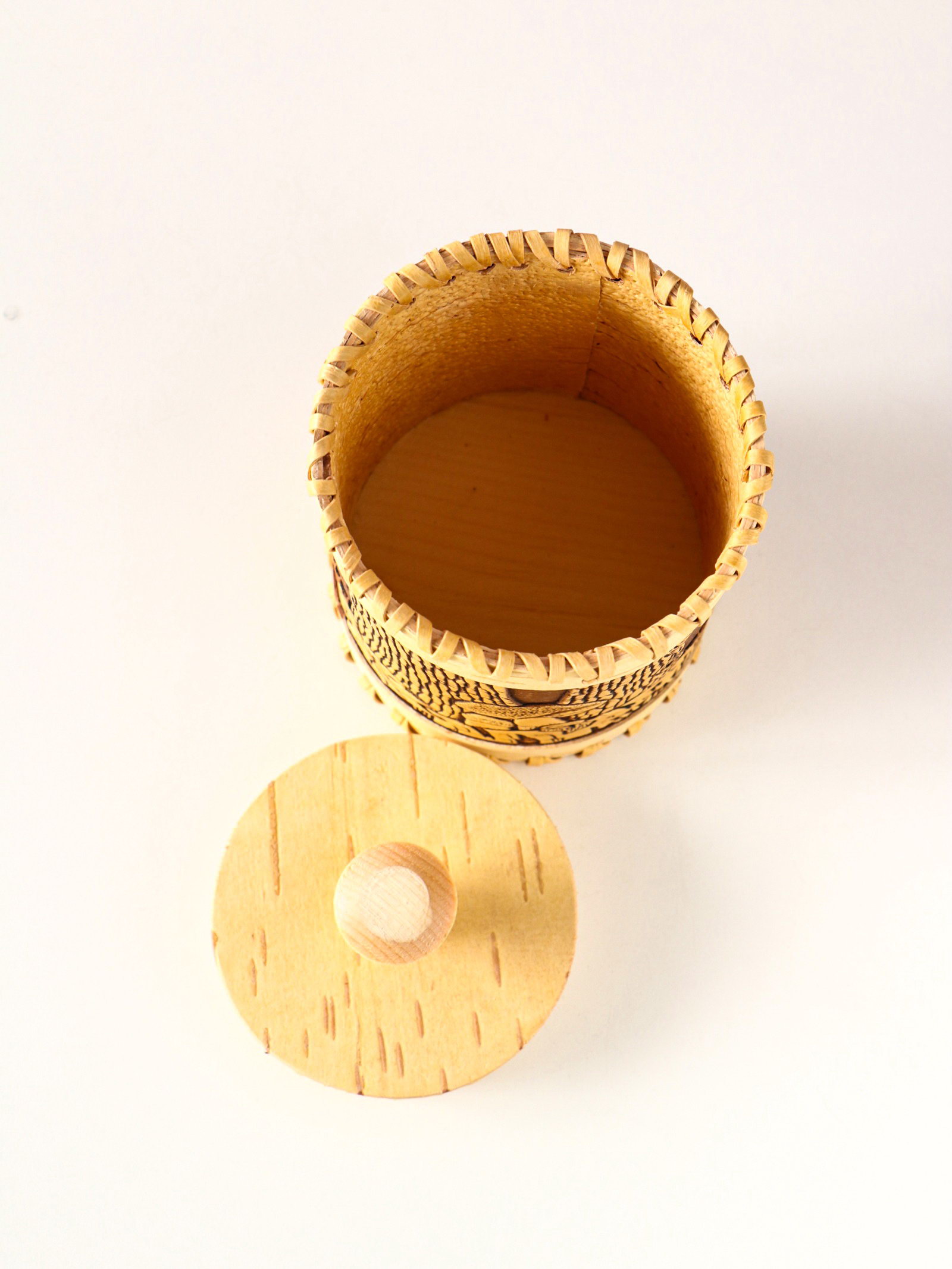 Универсальное применение: Берестяной туес подходит для хранения чая, трав, круп, специй, хлеба или конфет. Он станет стильным акцентом на кухне, в гостиной или на даче. Использование природного материала делает эту вещь экологичной и безопасной. Этот расписной туес отличный выбор для тех, кто ценит аутентичность, натуральность и ручную работу. | ||