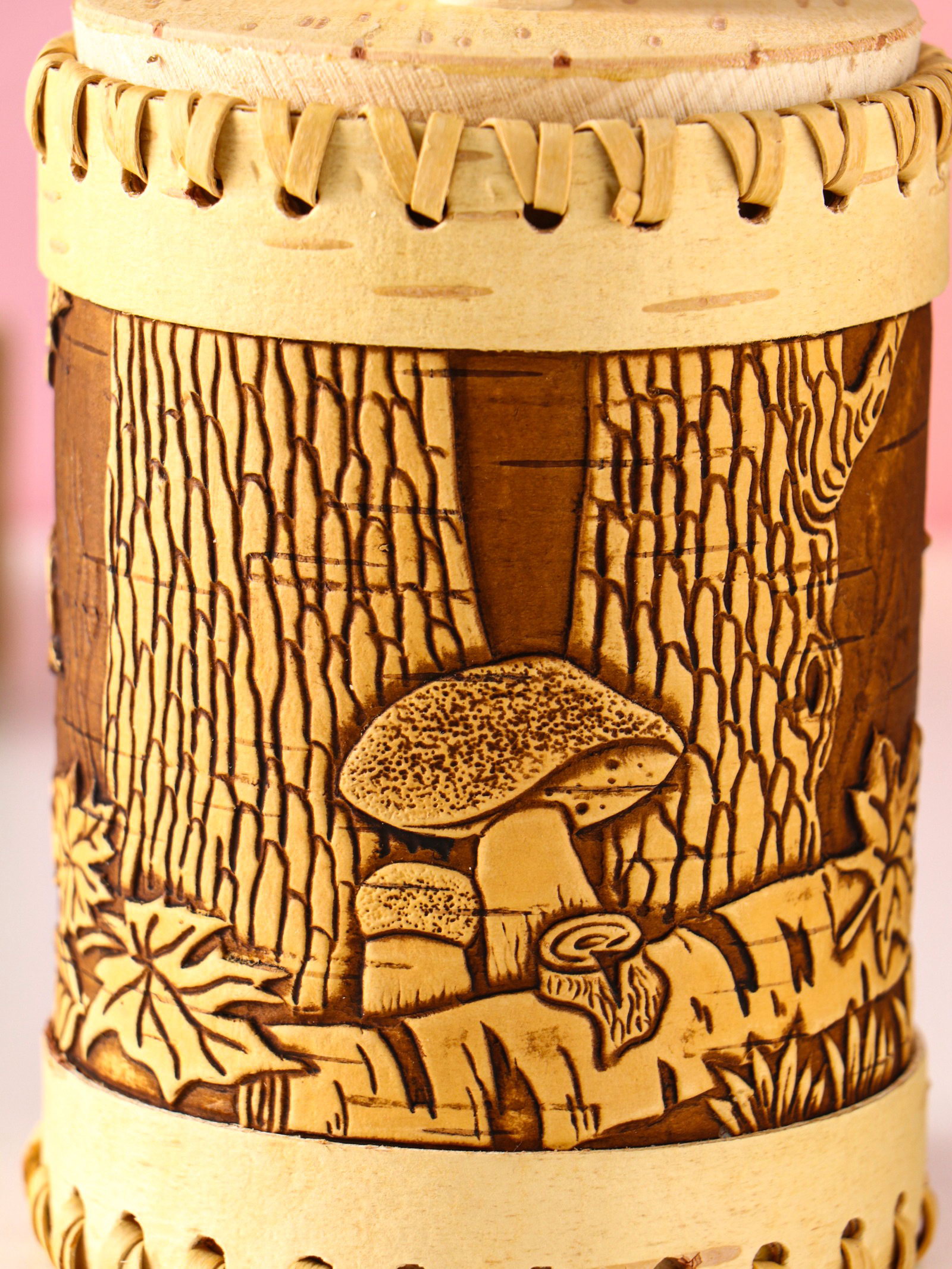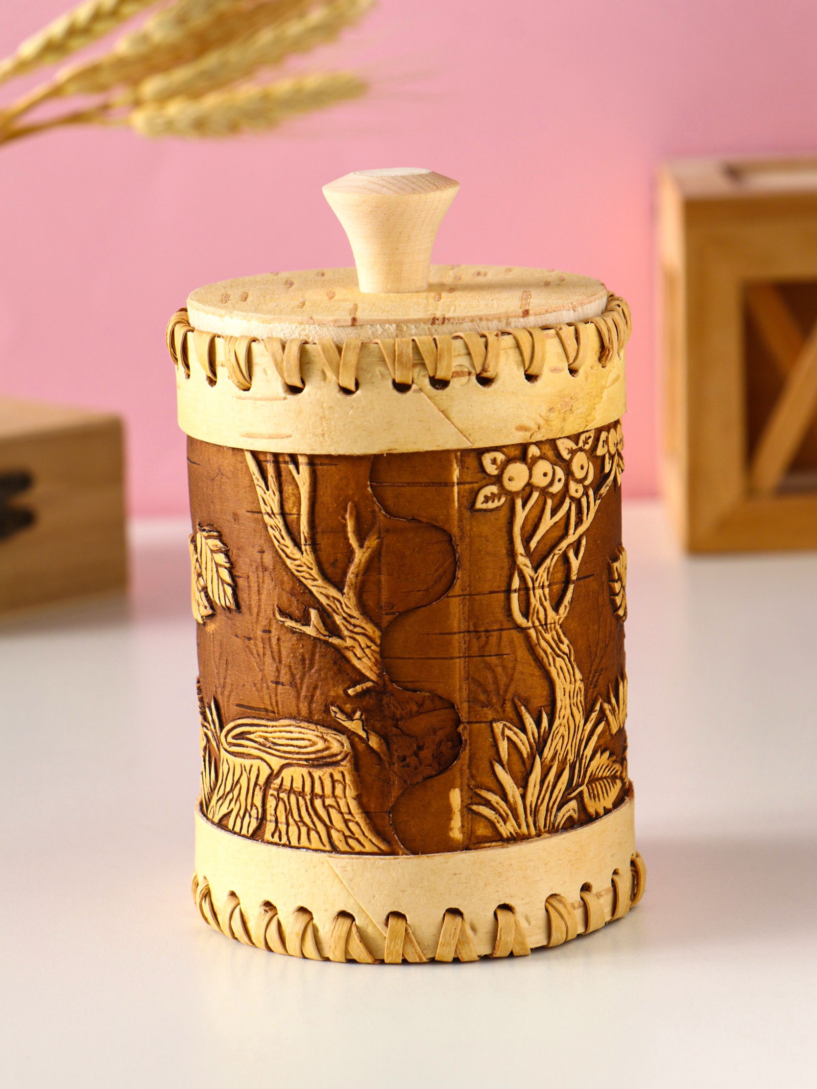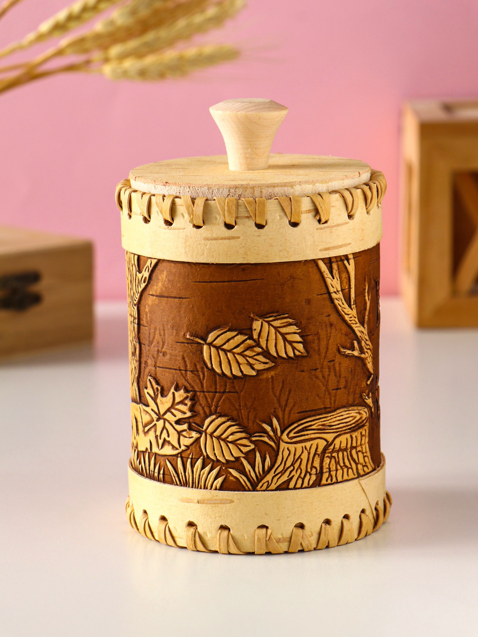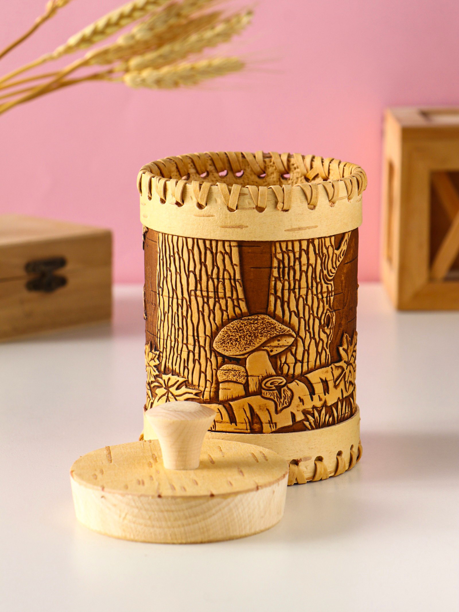 Универсальное применение: Берестяной туес подходит для хранения чая, трав, круп, специй, хлеба или конфет. Он станет стильным акцентом на кухне, в гостиной или на даче. Использование природного материала делает эту вещь экологичной и безопасной. Этот расписной туес отличный выбор для тех, кто ценит аутентичность, натуральность и ручную работу. | ||