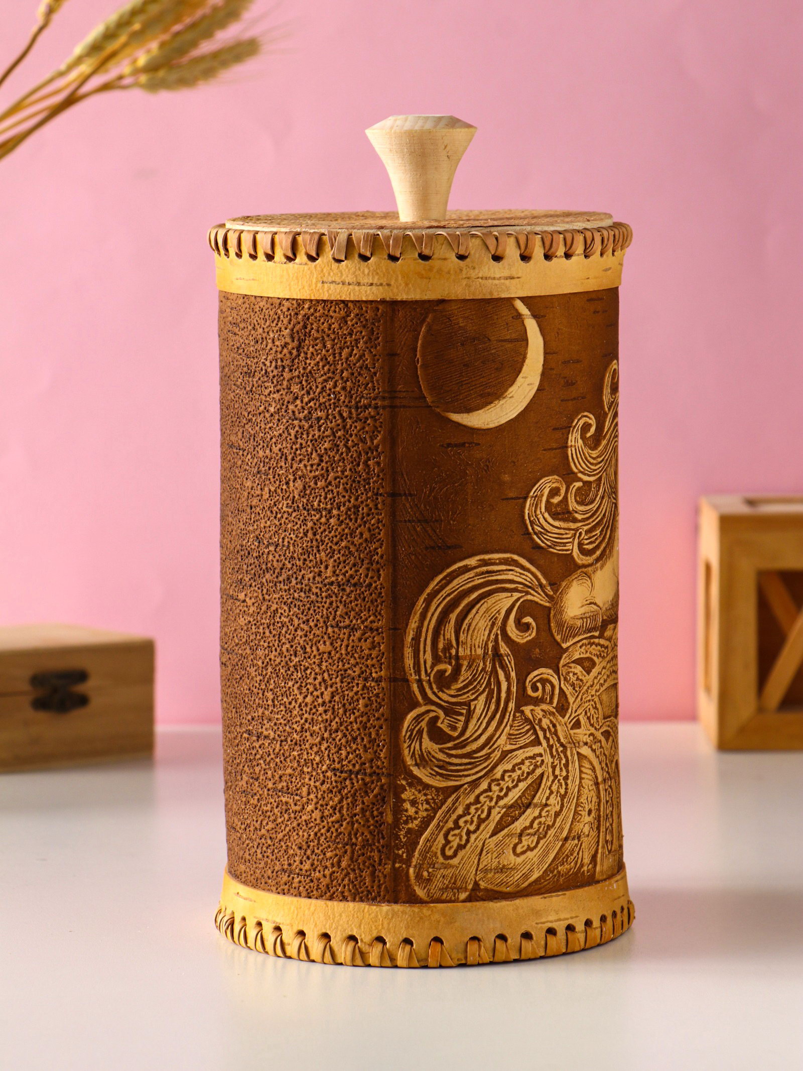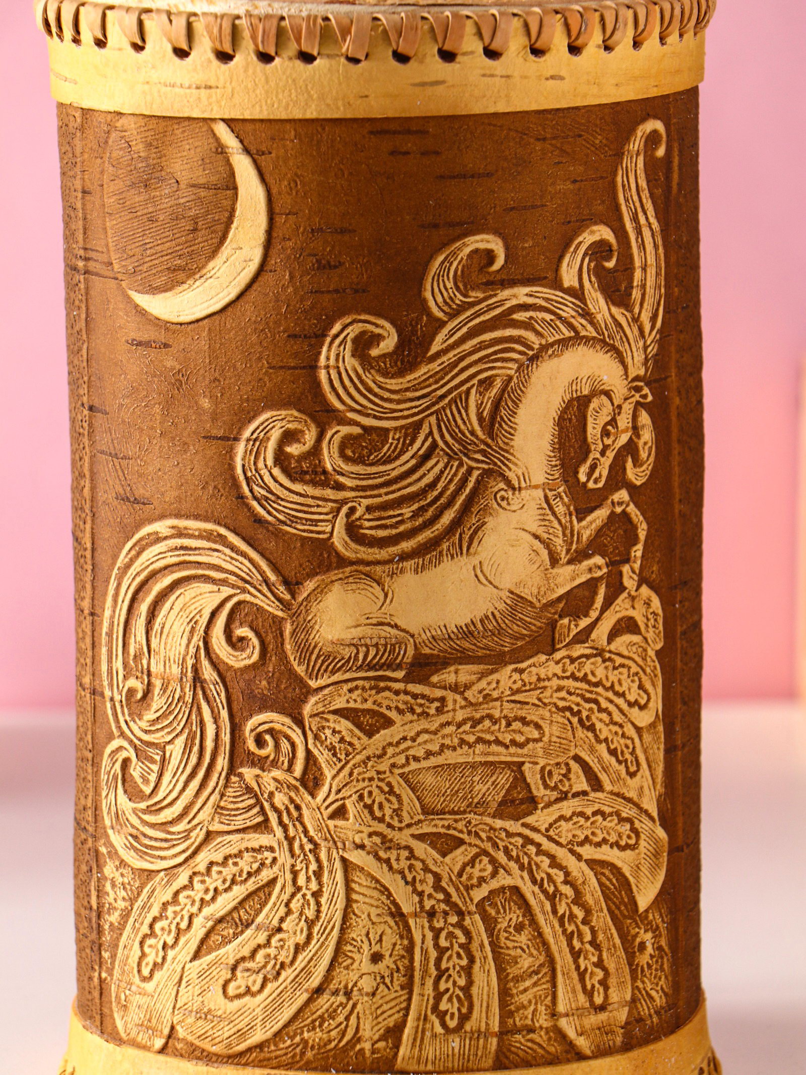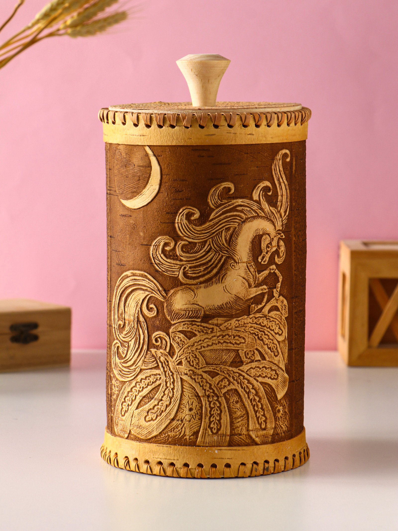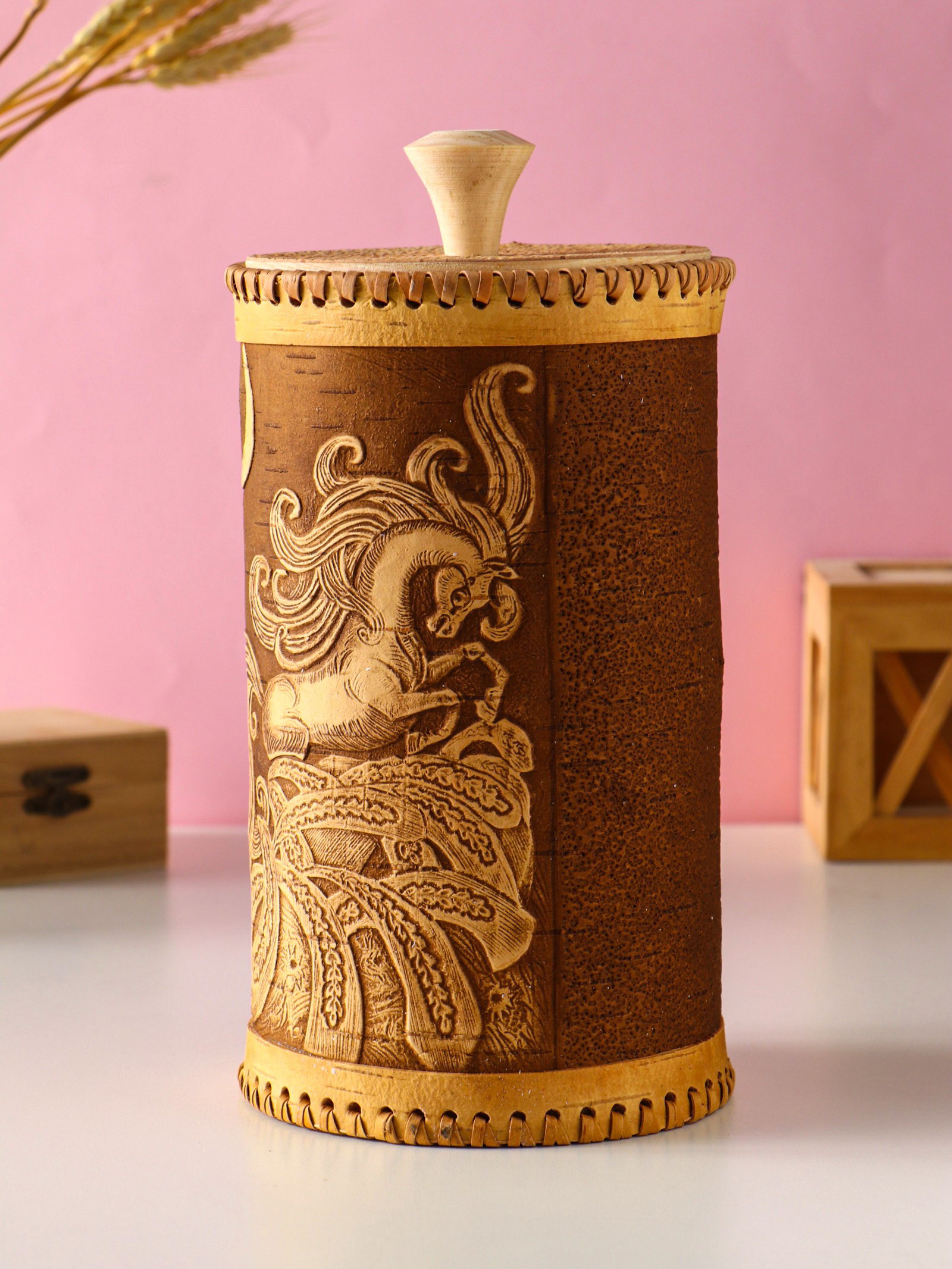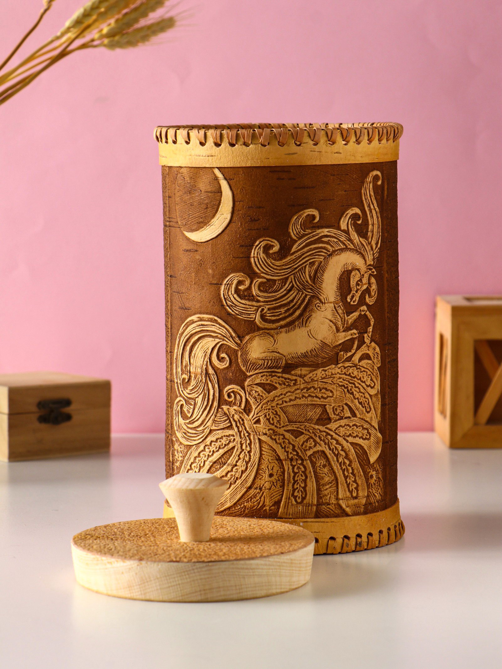 Туес большой "Конек-Горбунок", банка для хранения, береста, 2250 мл., Россия