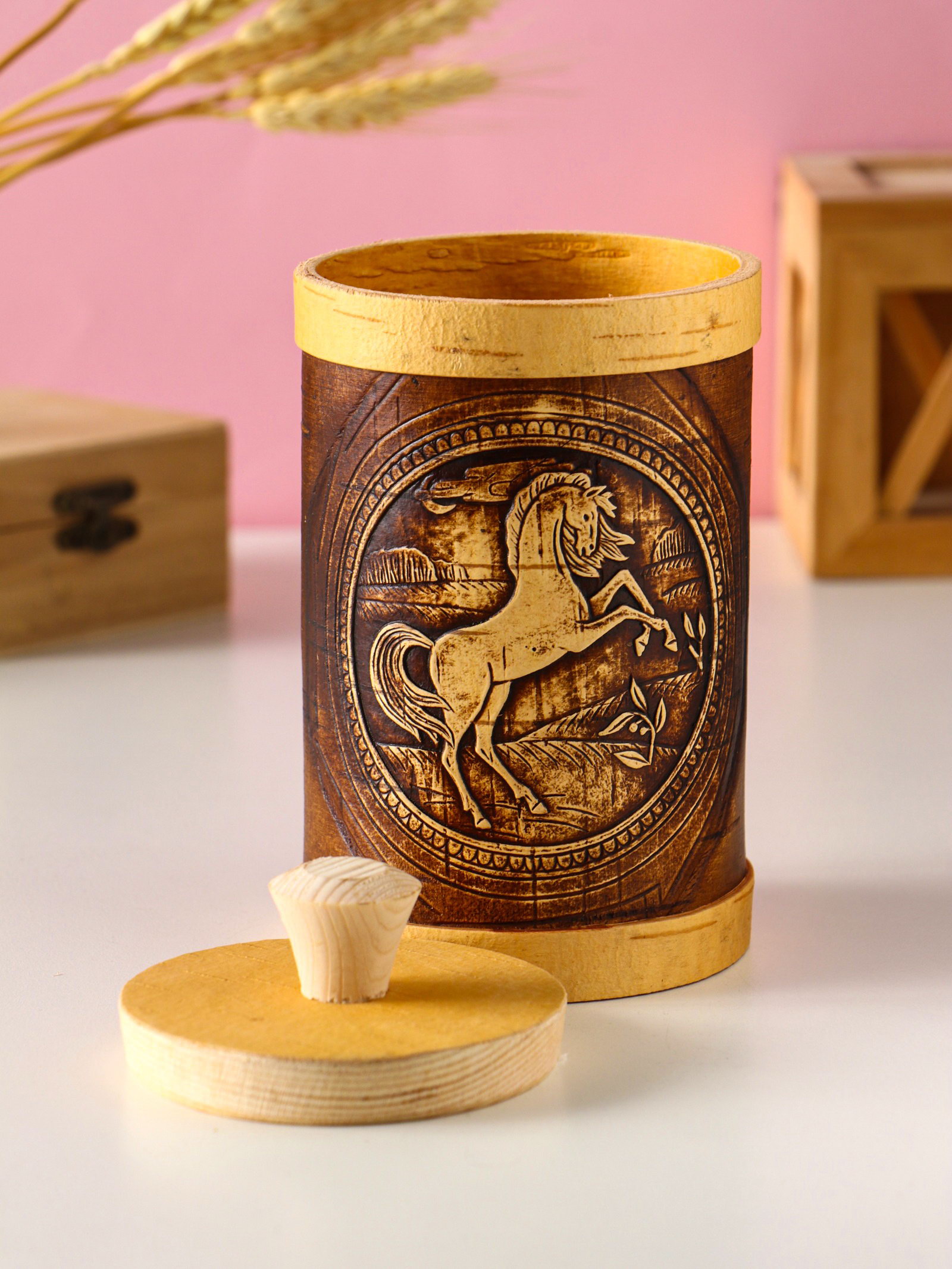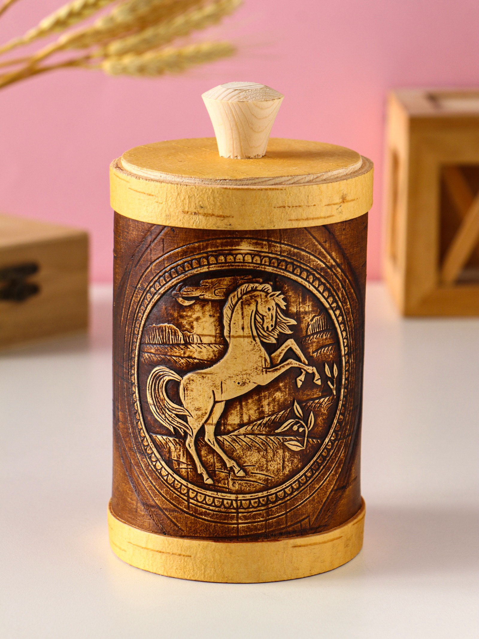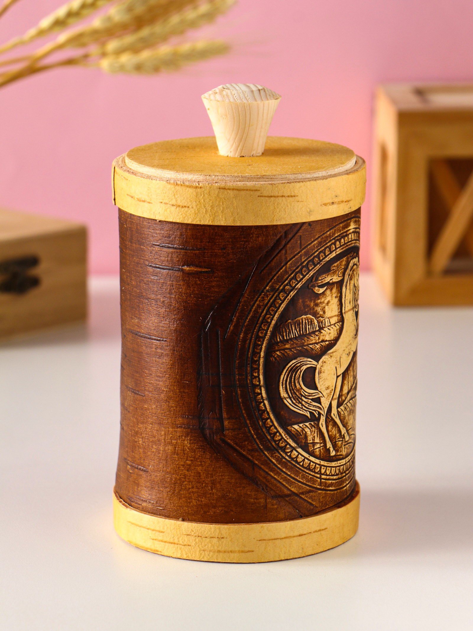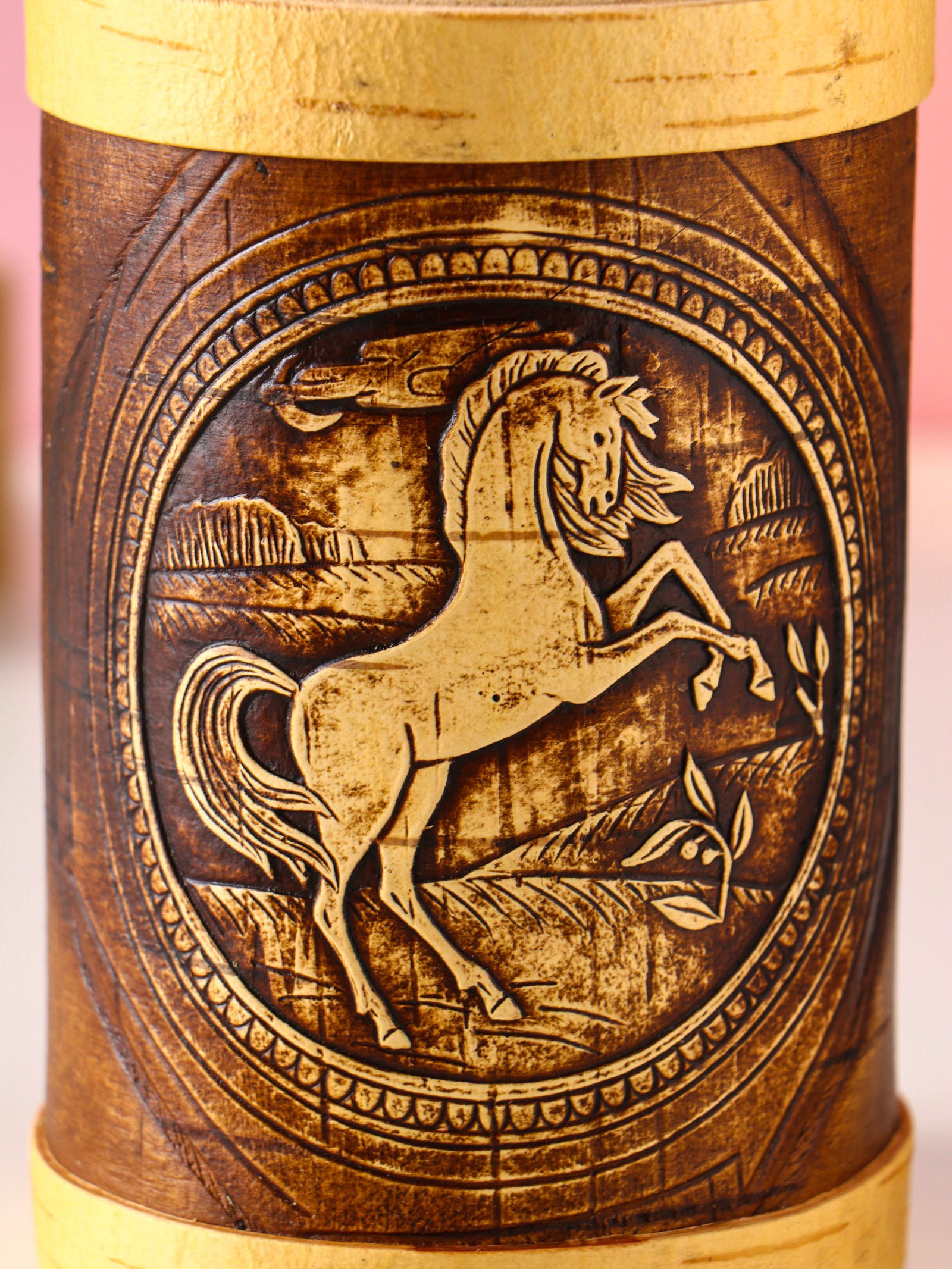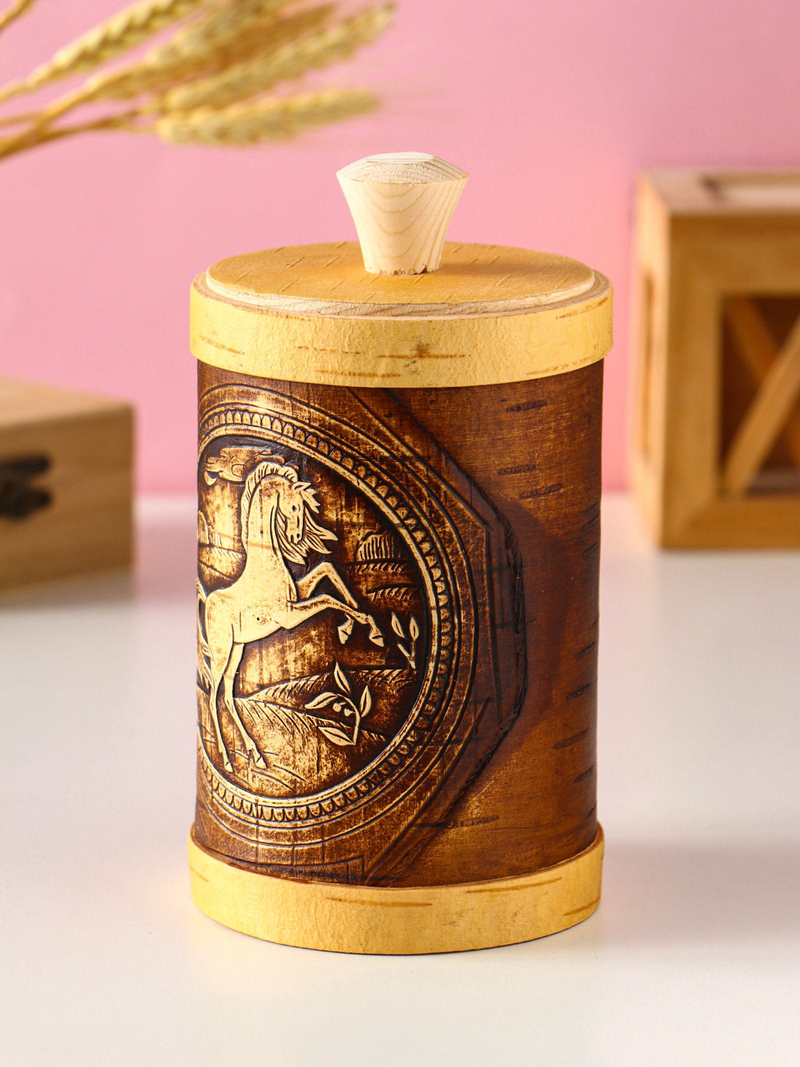Туес "Конь вороной", банка для хранения, береста, 500 мл., Россия