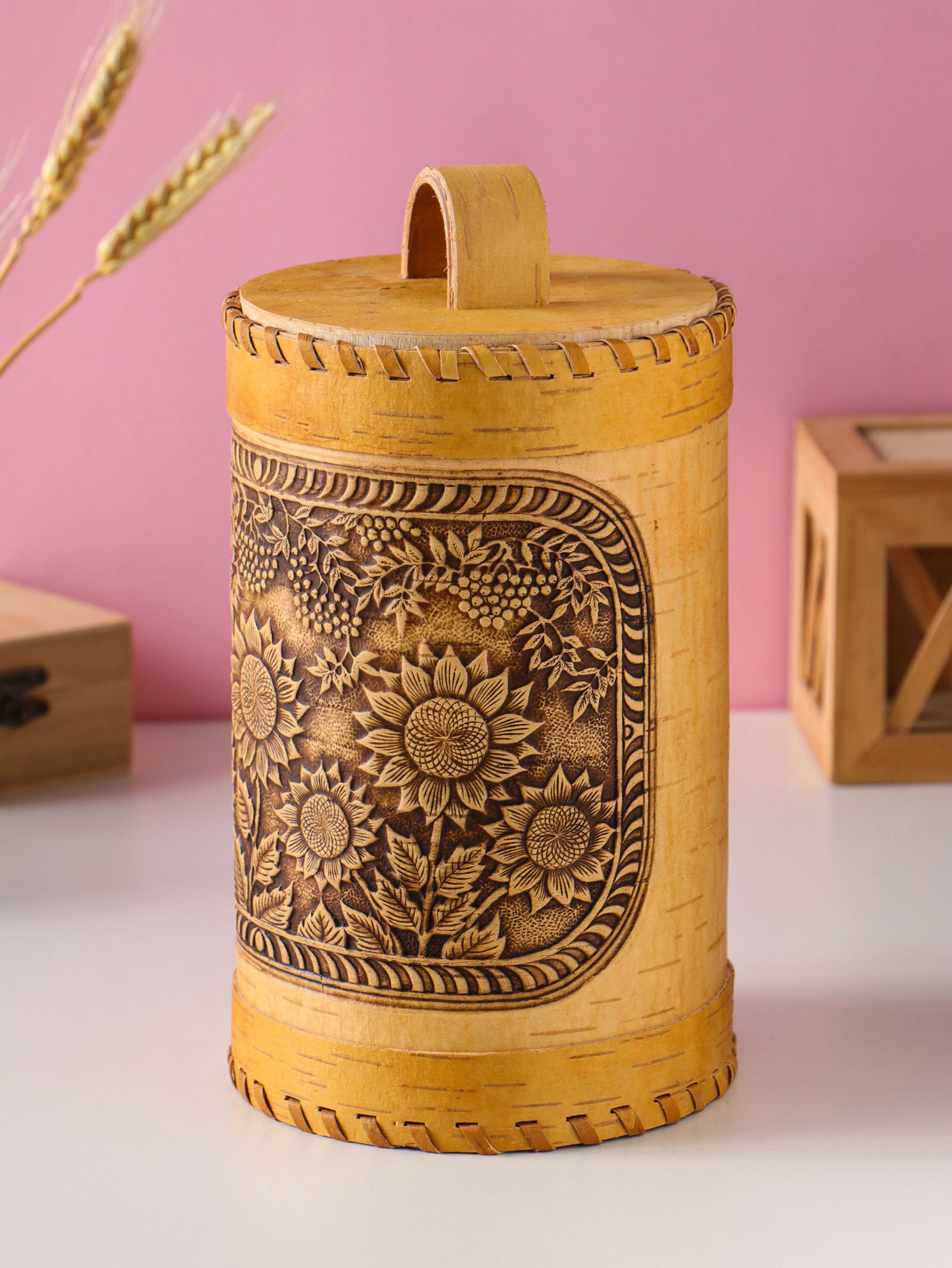 Туес "Подсолнухи", банка для хранения, 12x17 см, береста, Россия