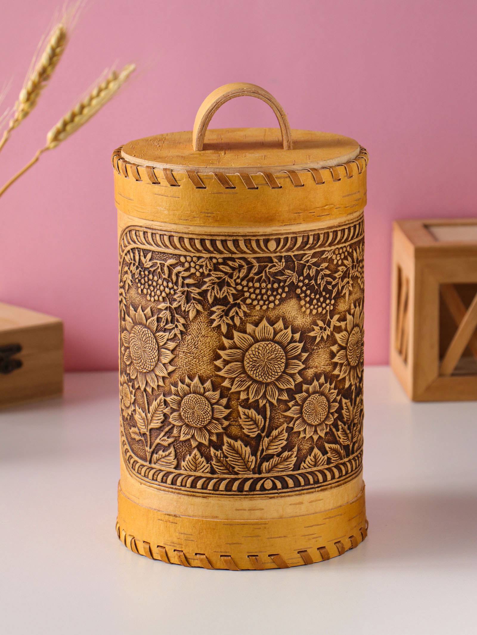 Естественная красота в каждой детали Берестяная посуда веками служила для хранения продуктов, даря им особую сохранность. Эта банка продолжает традицию, соединяя экологичность природного материала с изящным декором. Она не просто хранит, но и создаёт уют, напоминая о тёплом лете и солнечных полях каждый раз, когда вы берёте её в руки. Простое и функциональное решение для организованной кухни. | ||