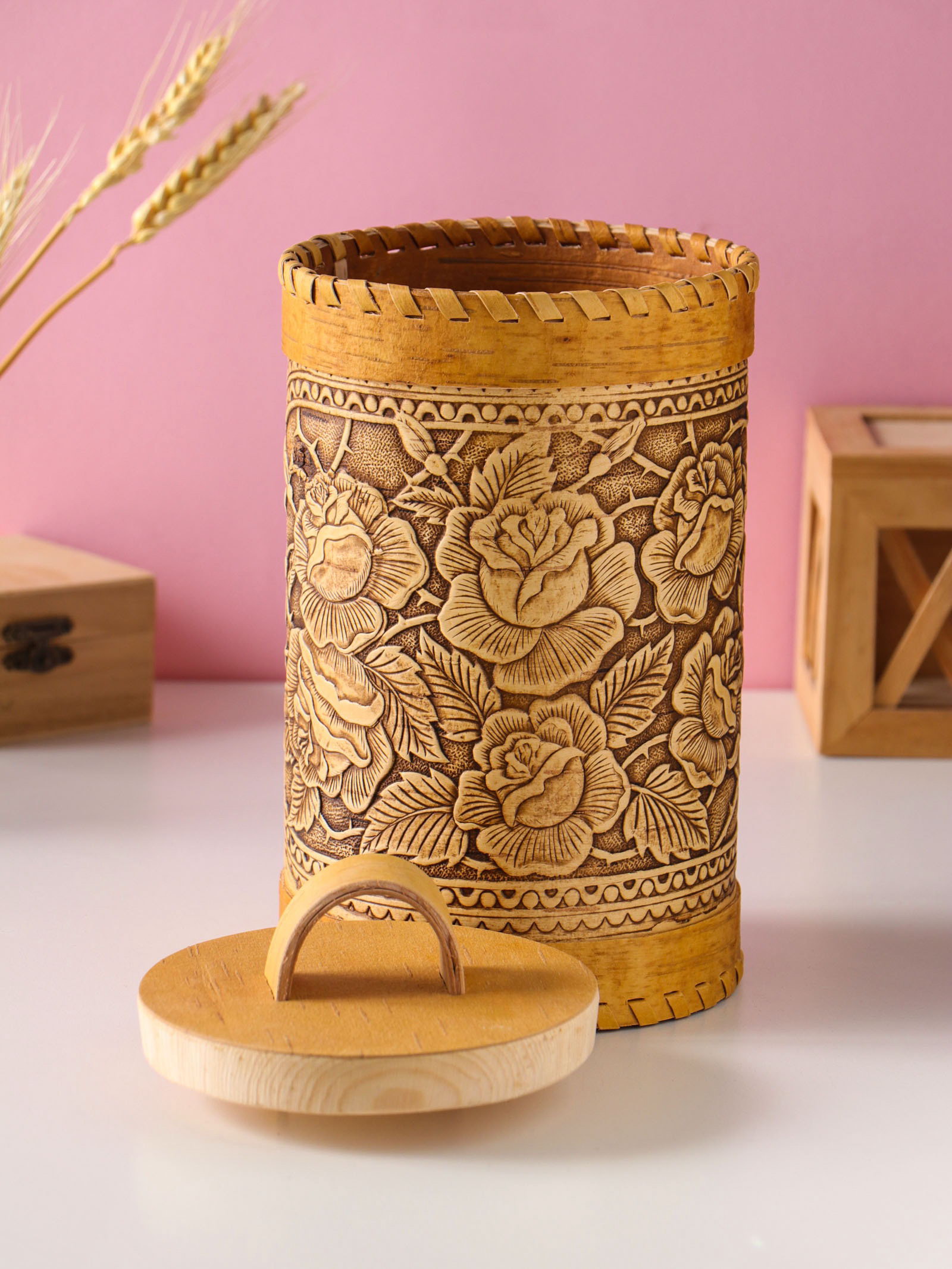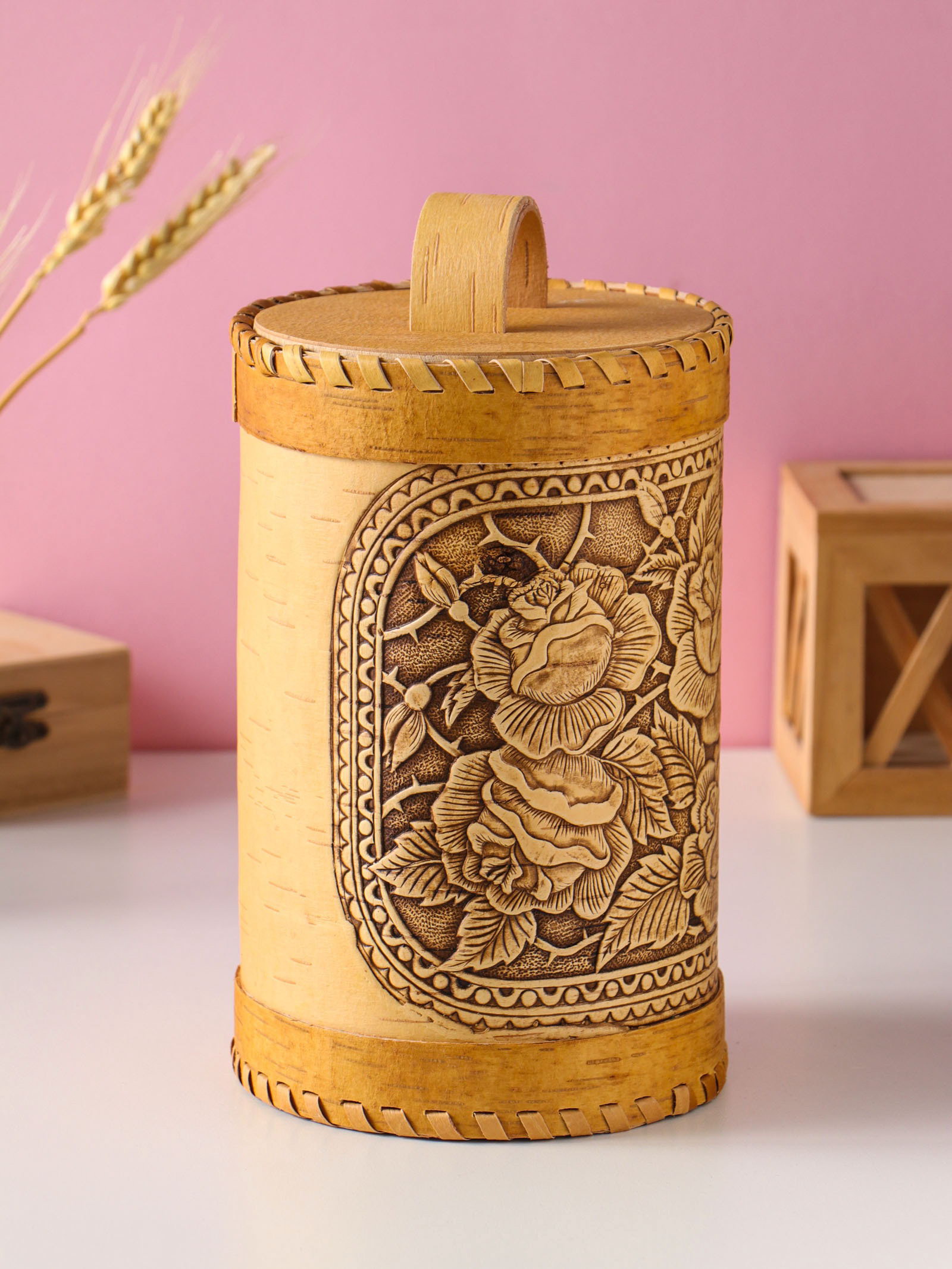 Туес "Розы", 12x17 см, банка для хранения, береста, Россия