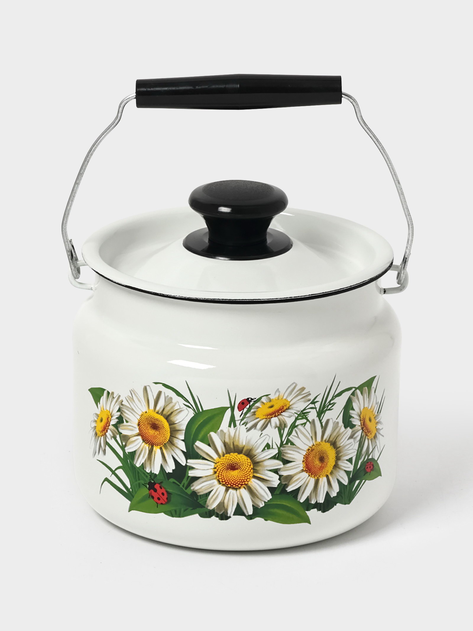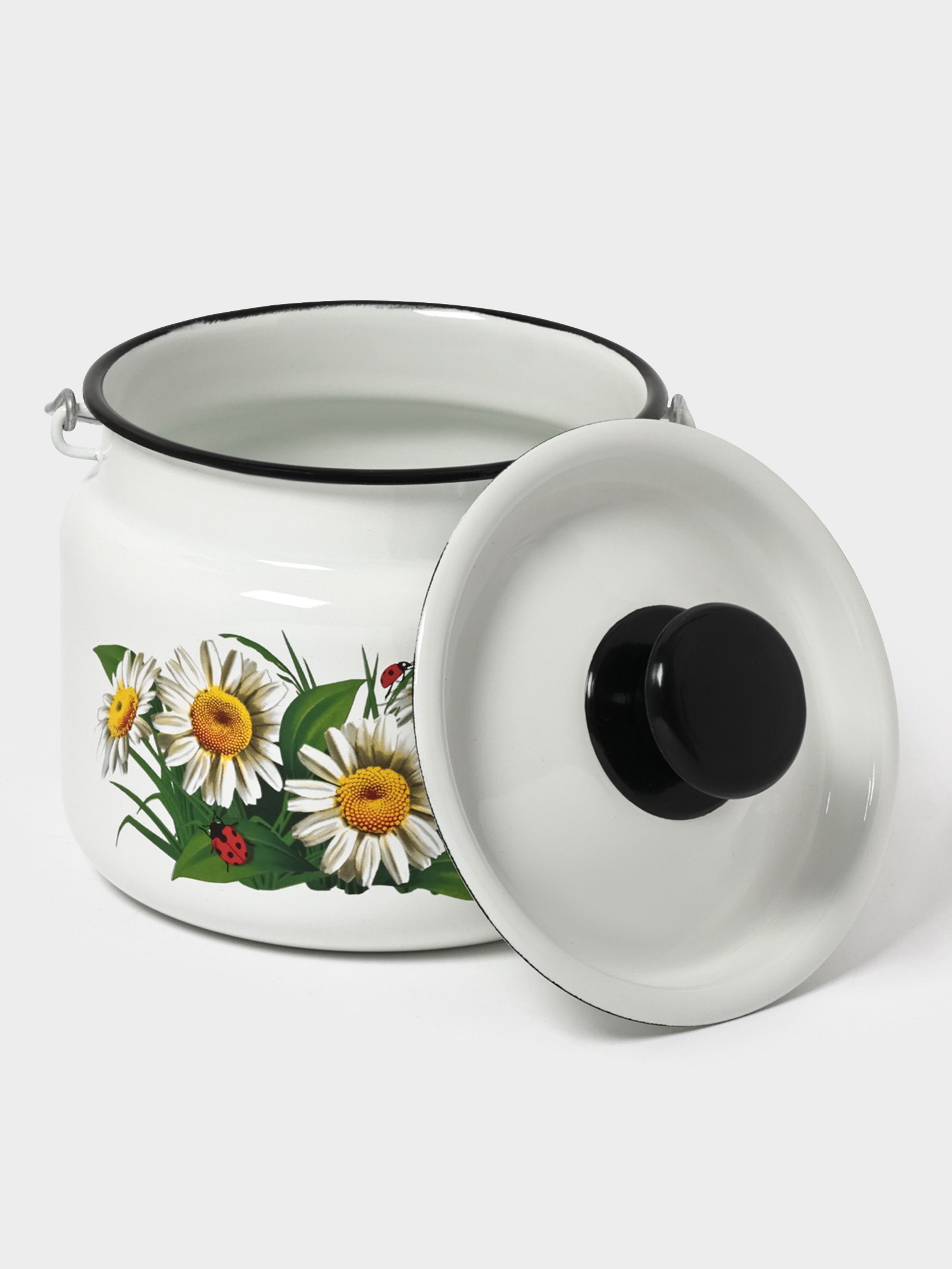 Бидон эмалированный, 2 л, с ручкой и крышкой, белый, 2000 мл., Россия