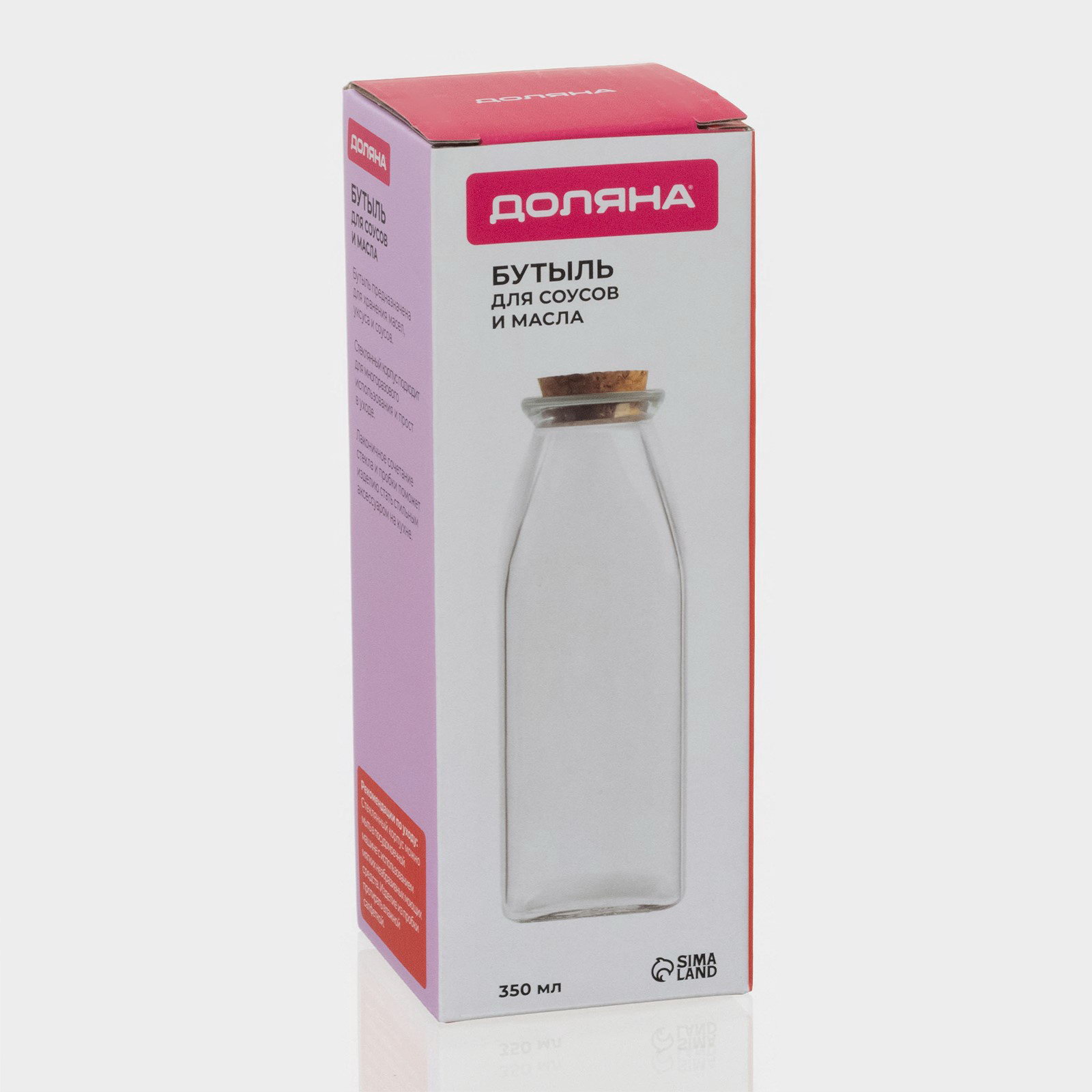 Бутылка для соусов и масла "Парфе", 350 мл, 5.5x16 см, с пробковой крышкой, стекло, прозрачная, 5.5x5.5x16 см., Доляна, Китай