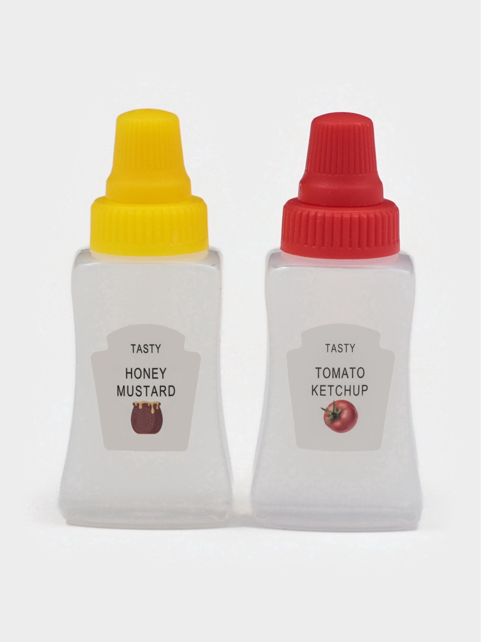 Бутылки для соуса "Мини", набор 2 шт., 24 мл, 7.3x3x2.2 см, пластик, прозрачные, наклейка МИКС, 24 мл., Китай