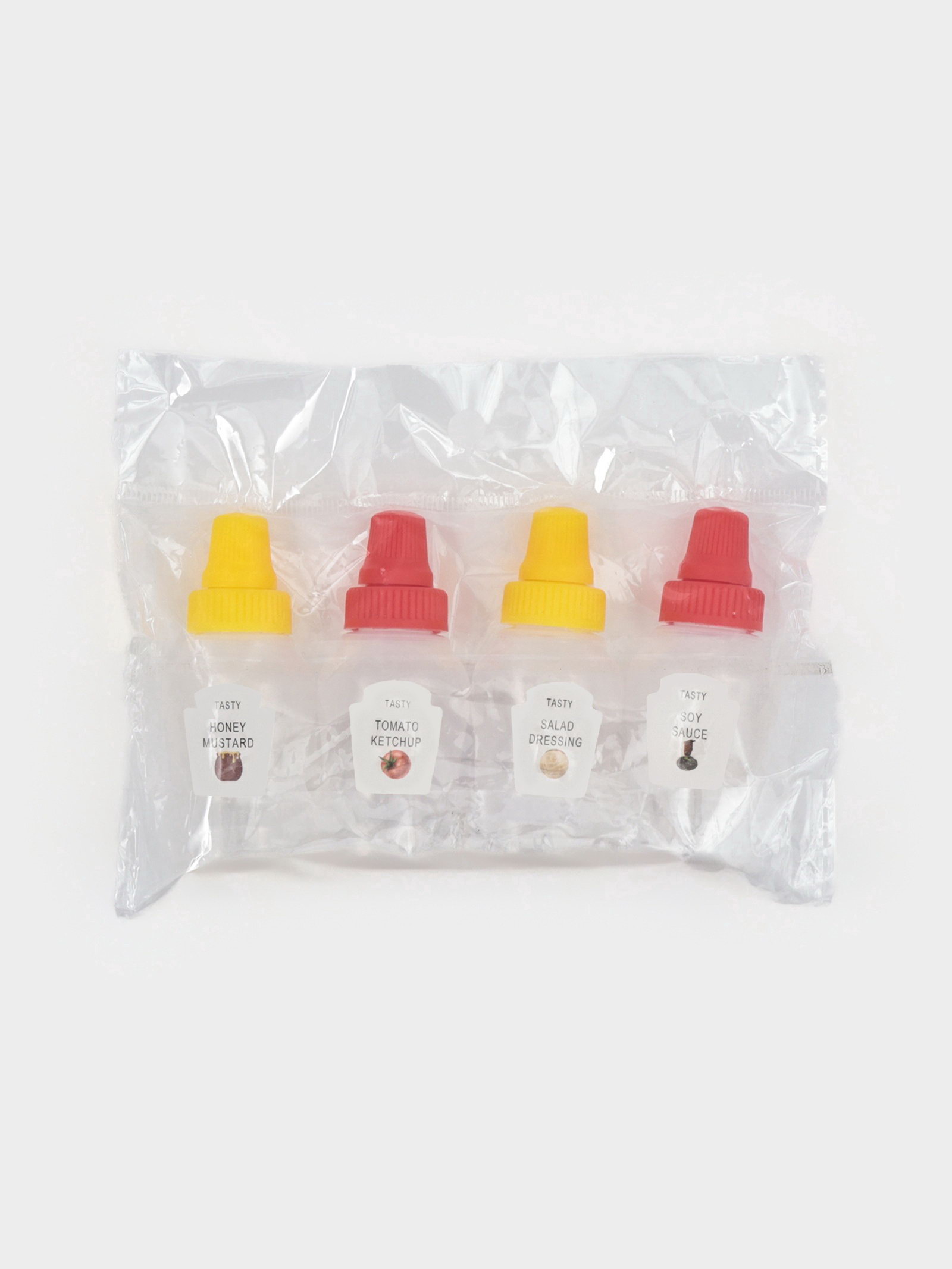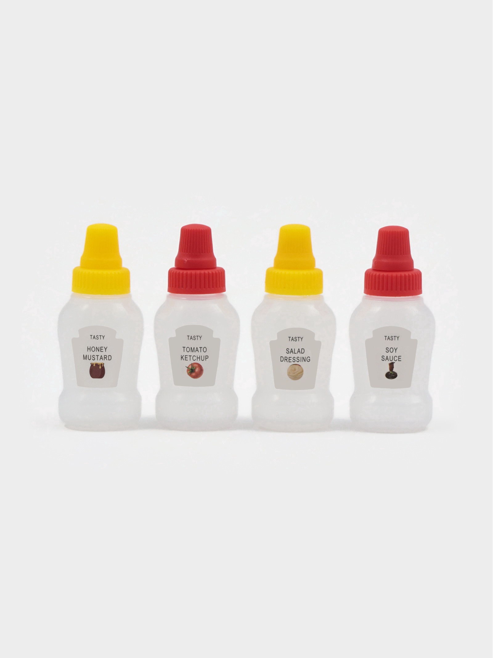 Бутылки для соуса "Мини", набор 4 шт., 24 мл, 7.4x3x2.6 см, пластик, прозрачные, наклейка МИКС, 24 мл., Китай