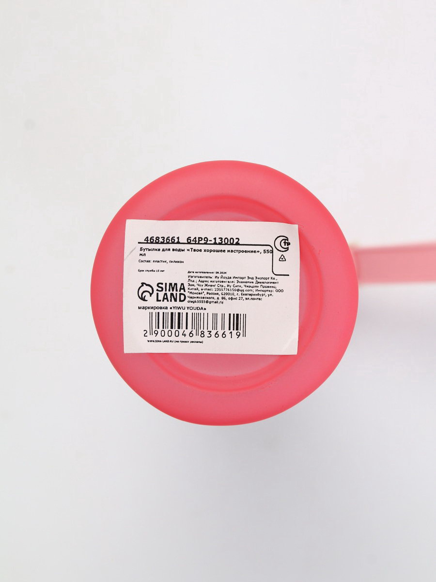 Бутылка для воды пластиковая "Твое хорошее настроение", 550 мл, 6x21.5x6 см., Сима-ленд, Китай