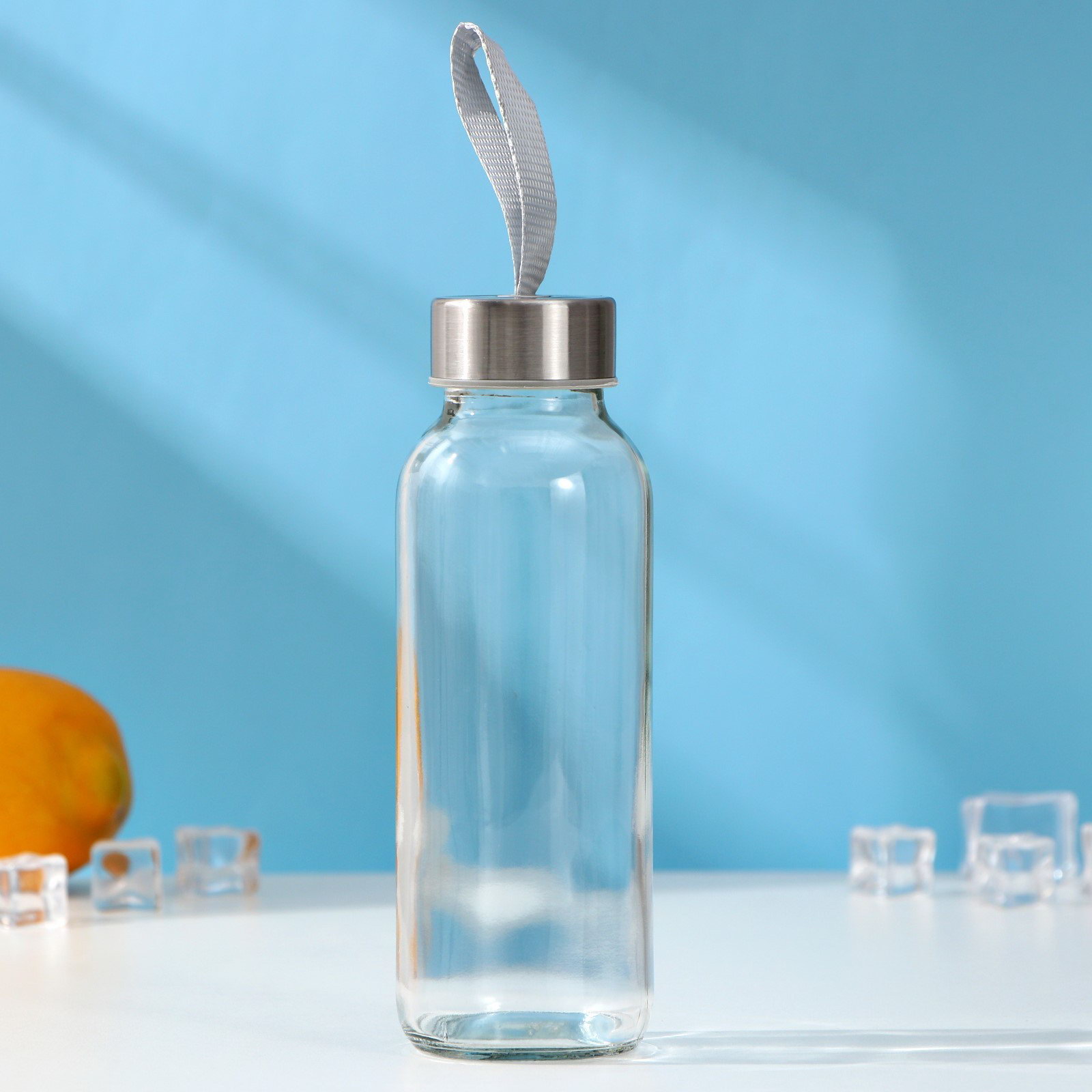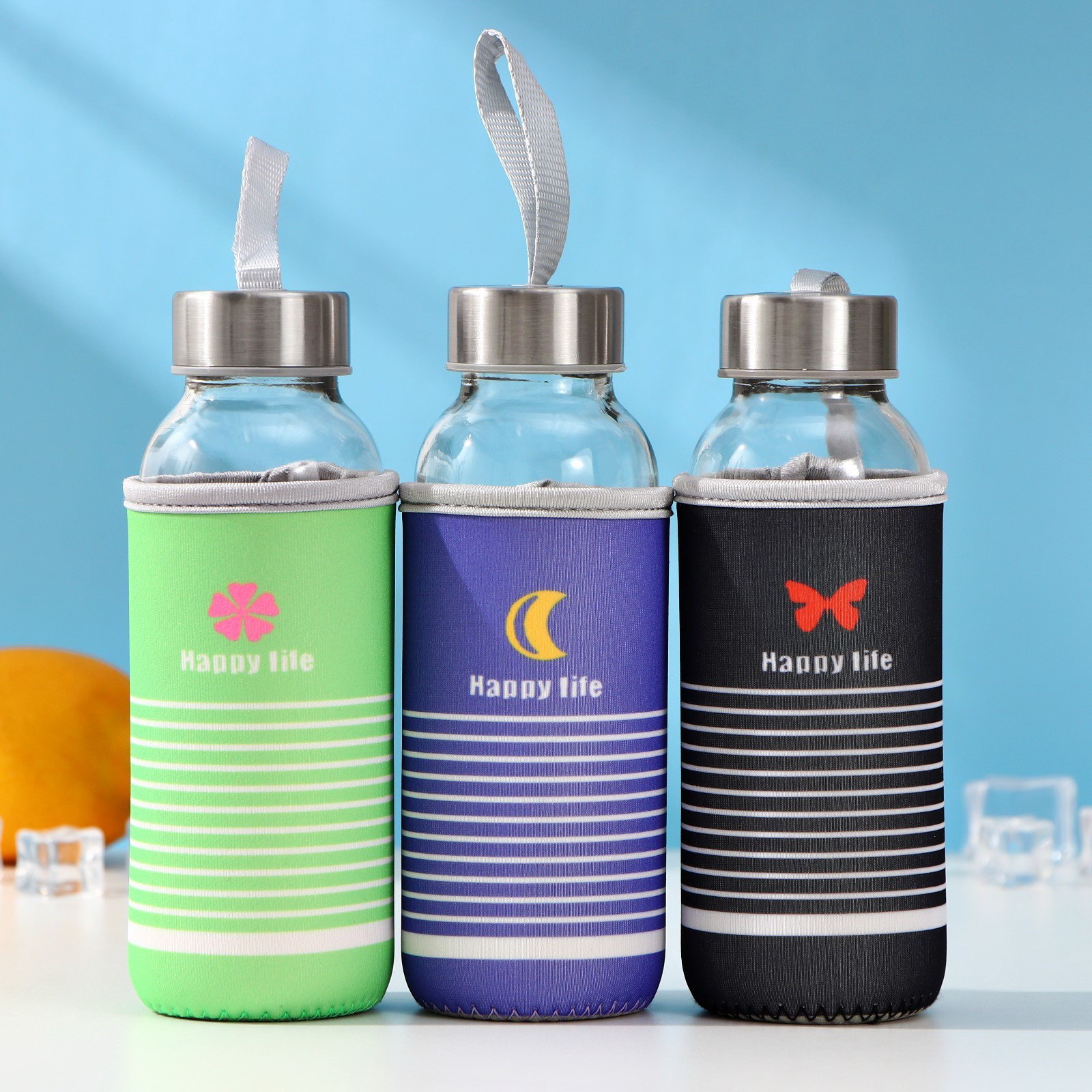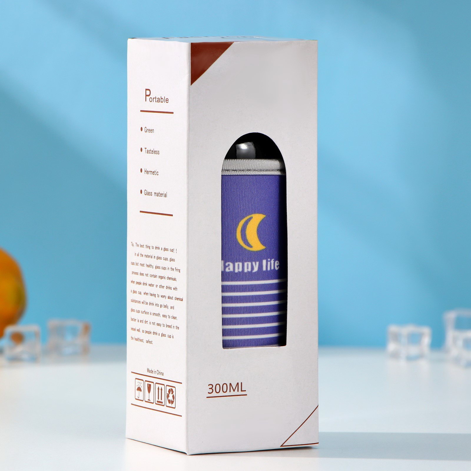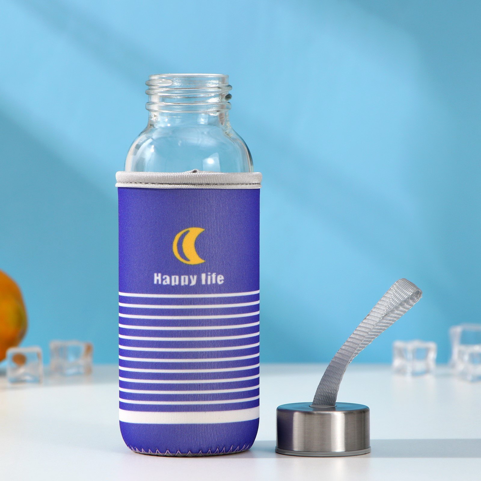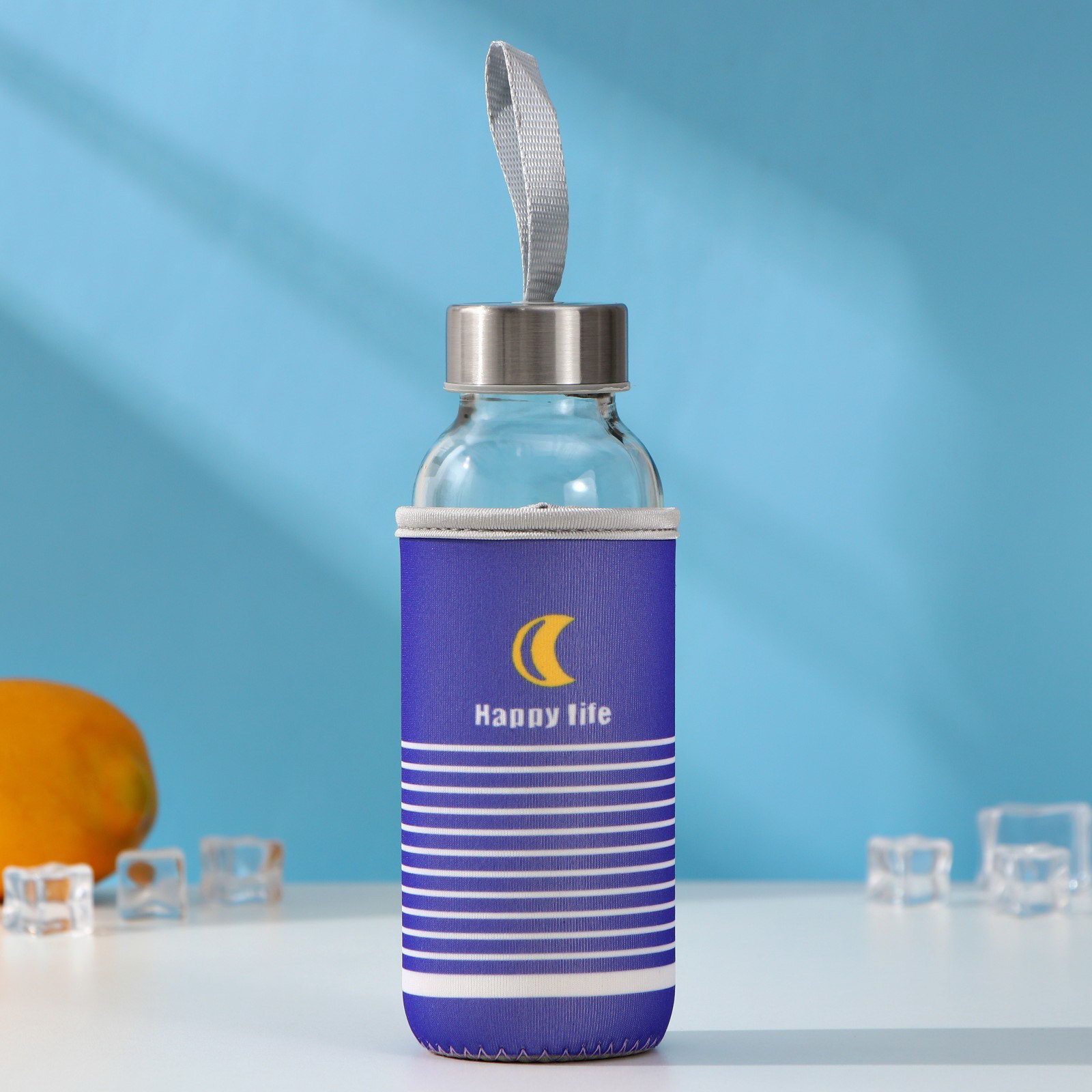 Бутылка для воды стеклянная в чехле "Счастливая жизнь", 300 мл, h=17 см, цвет МИКС, 6x6x17 см., Китай