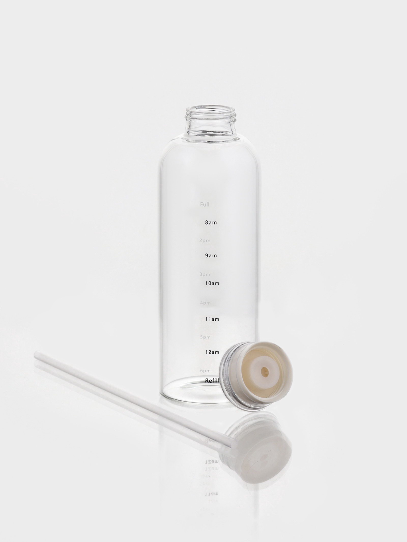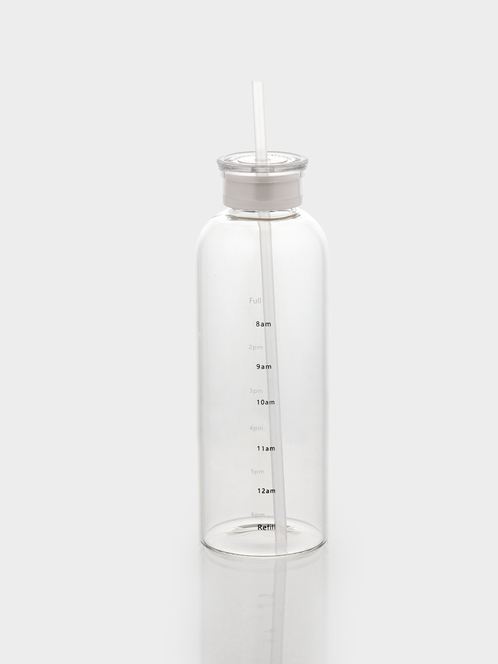 Бутылка для воды, 790 мл, 7.5x23 см, с трубочкой и шкалой времени, стекло, прозрачная, 7.5x7.5x23 см., Китай