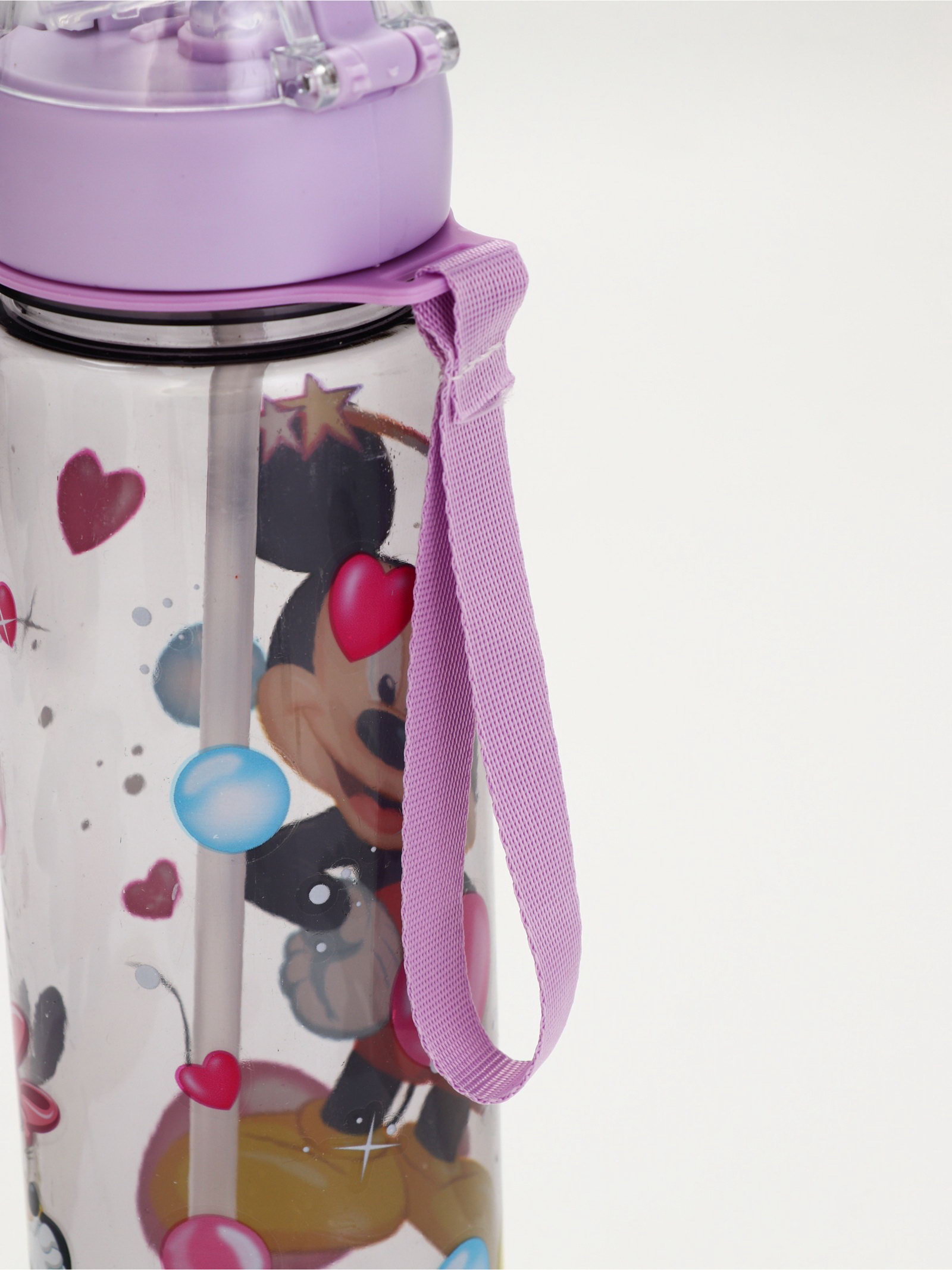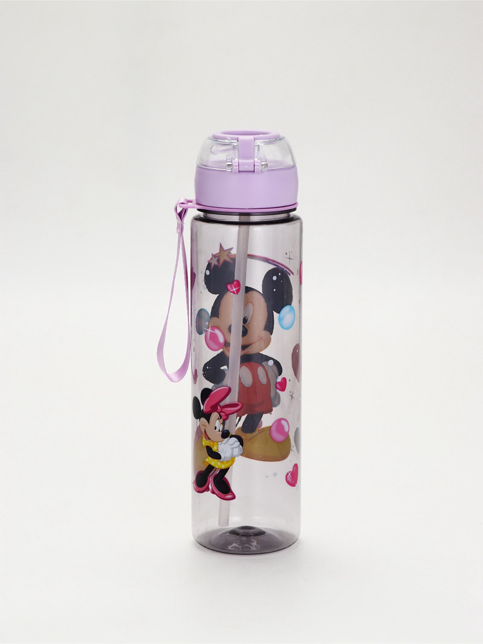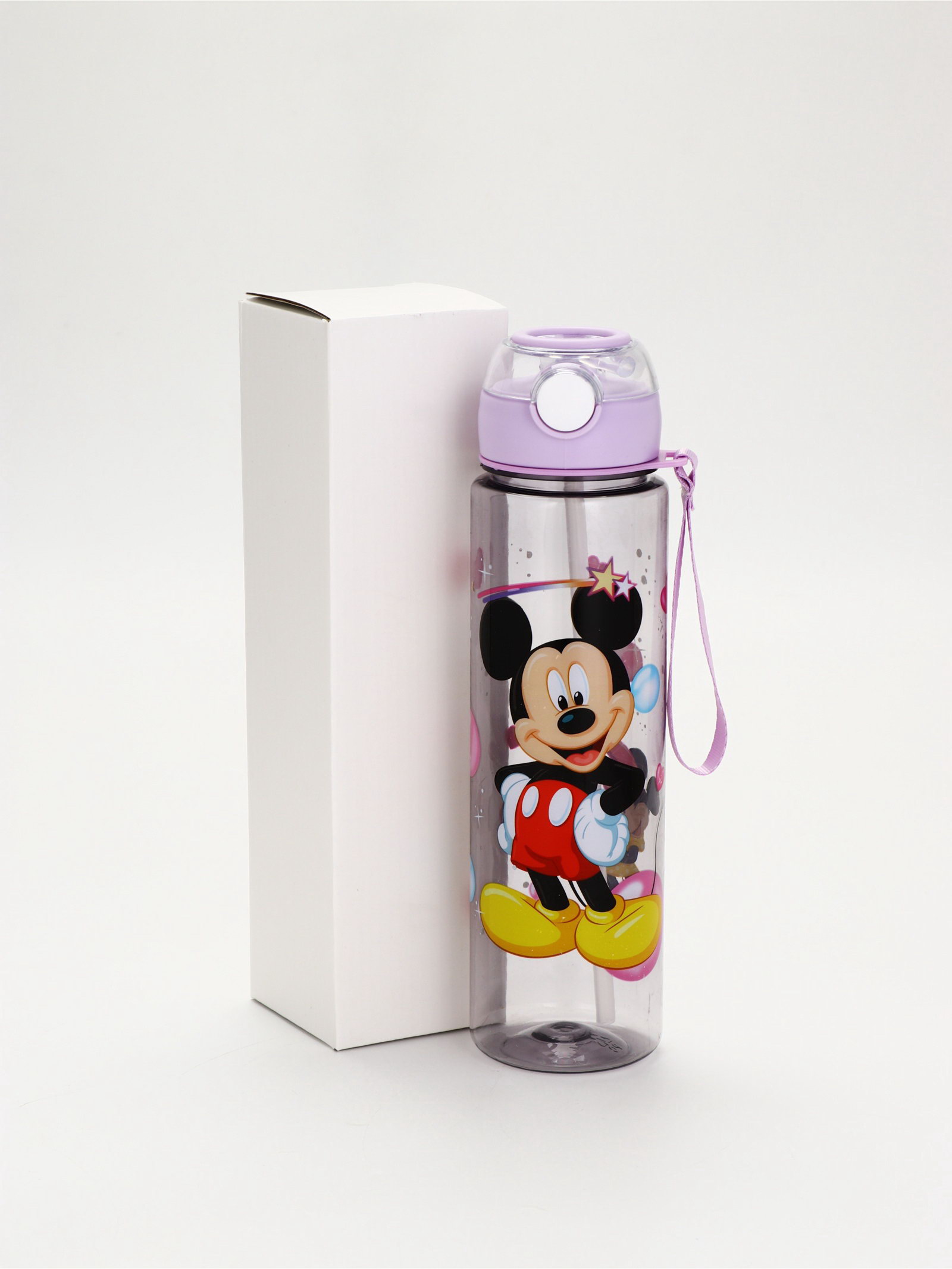 Бутылка пластиковая с трубочкой "Микки Маус", 800 мл, фиолетовая, 6.5x6.5x26 см., Disney, Китай