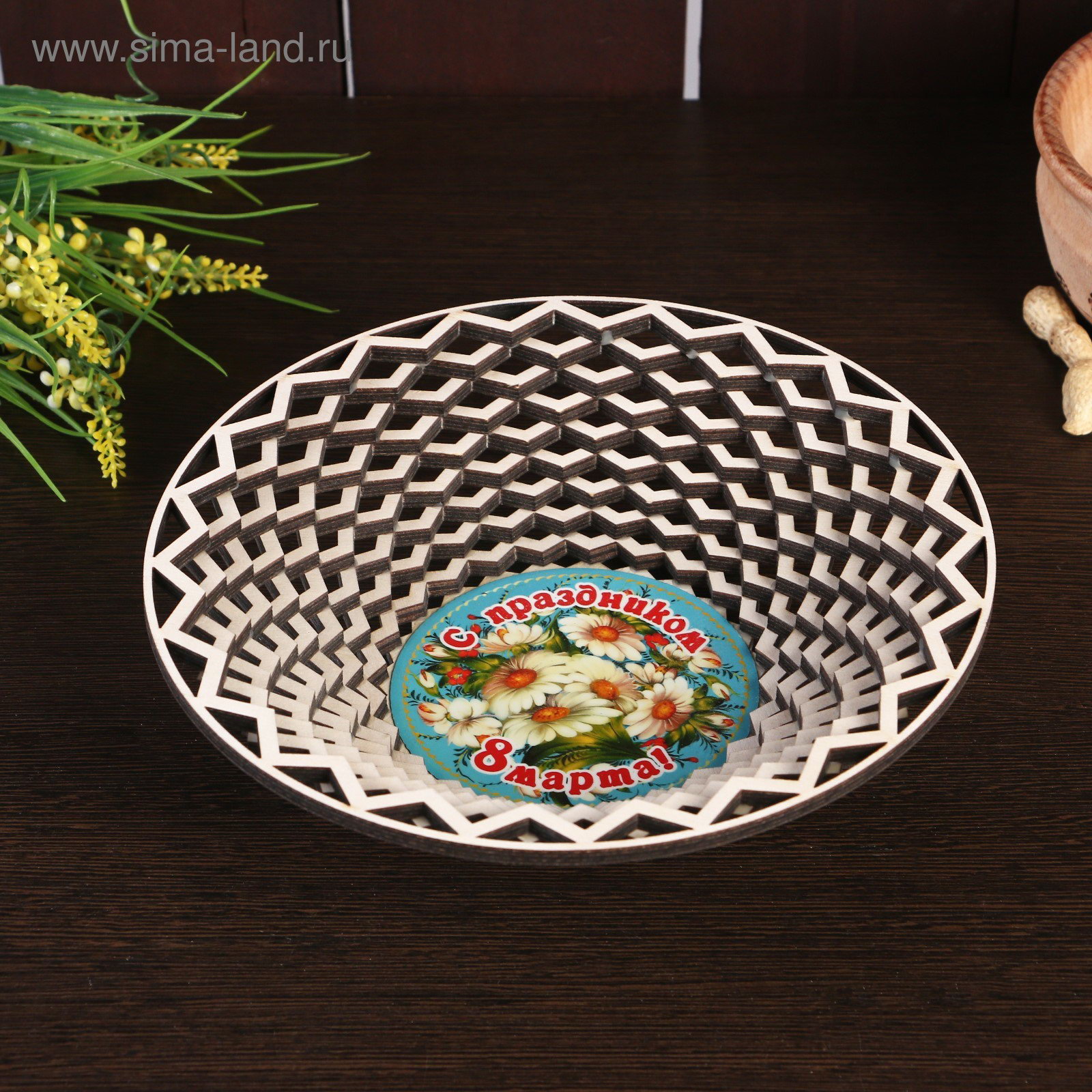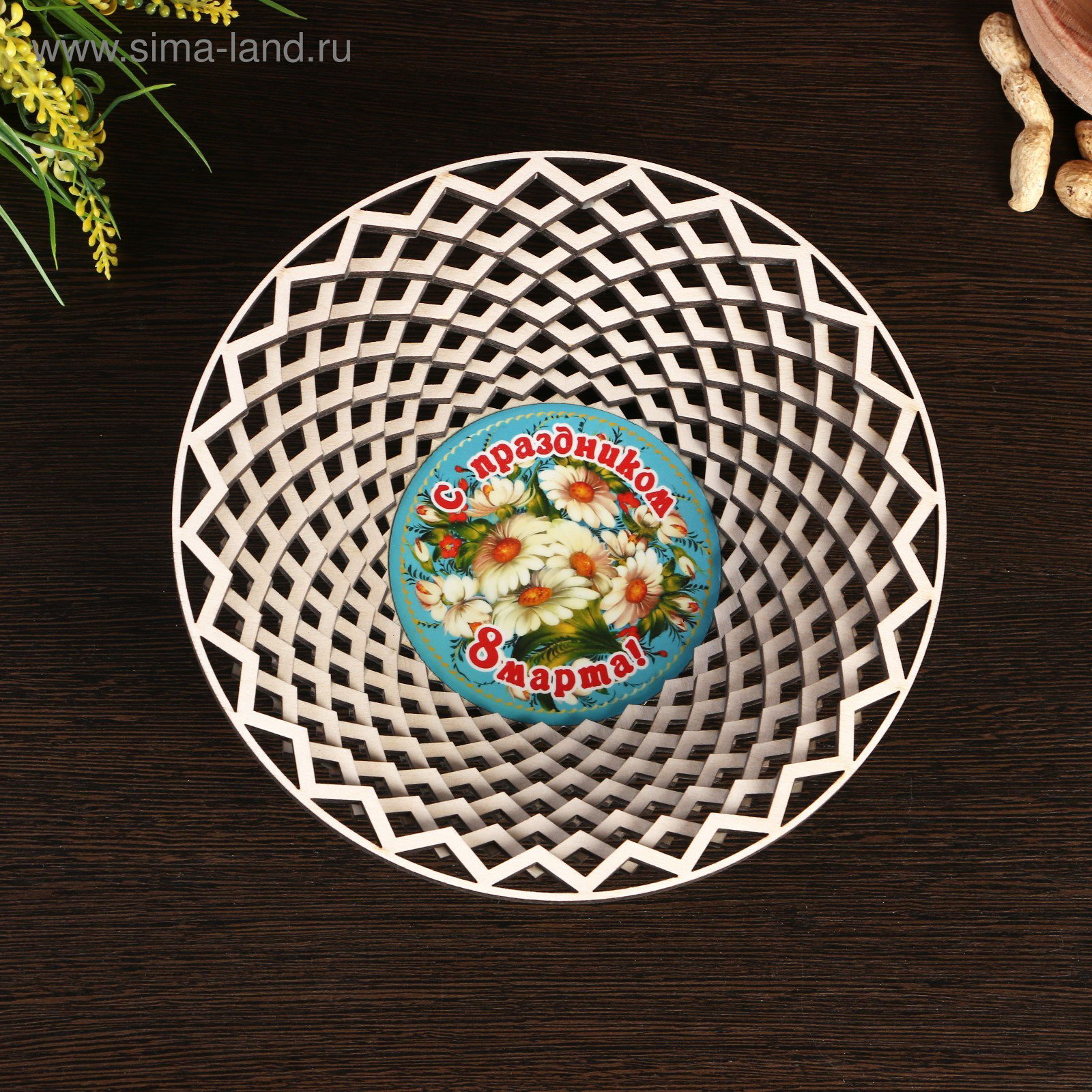 Сухарница "8 марта. Ромашки", круглая, d=20 см, дерево, Россия