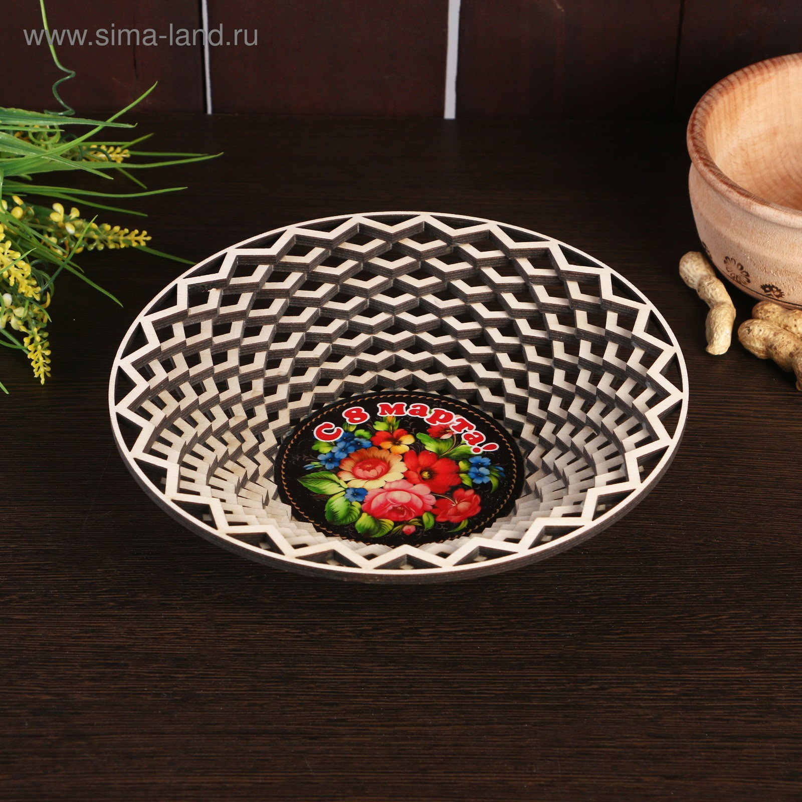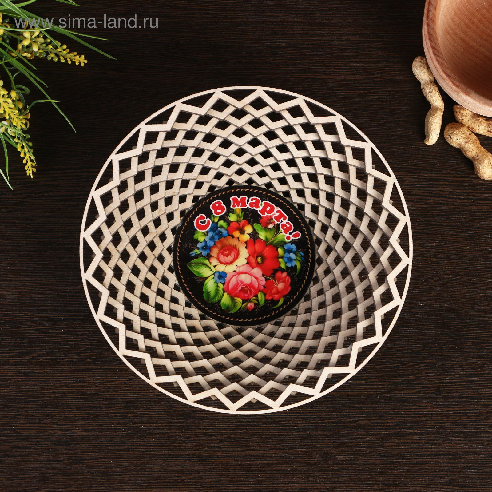 Сухарница "8 марта. Цветы.", круглая, d=20 см, дерево, Россия