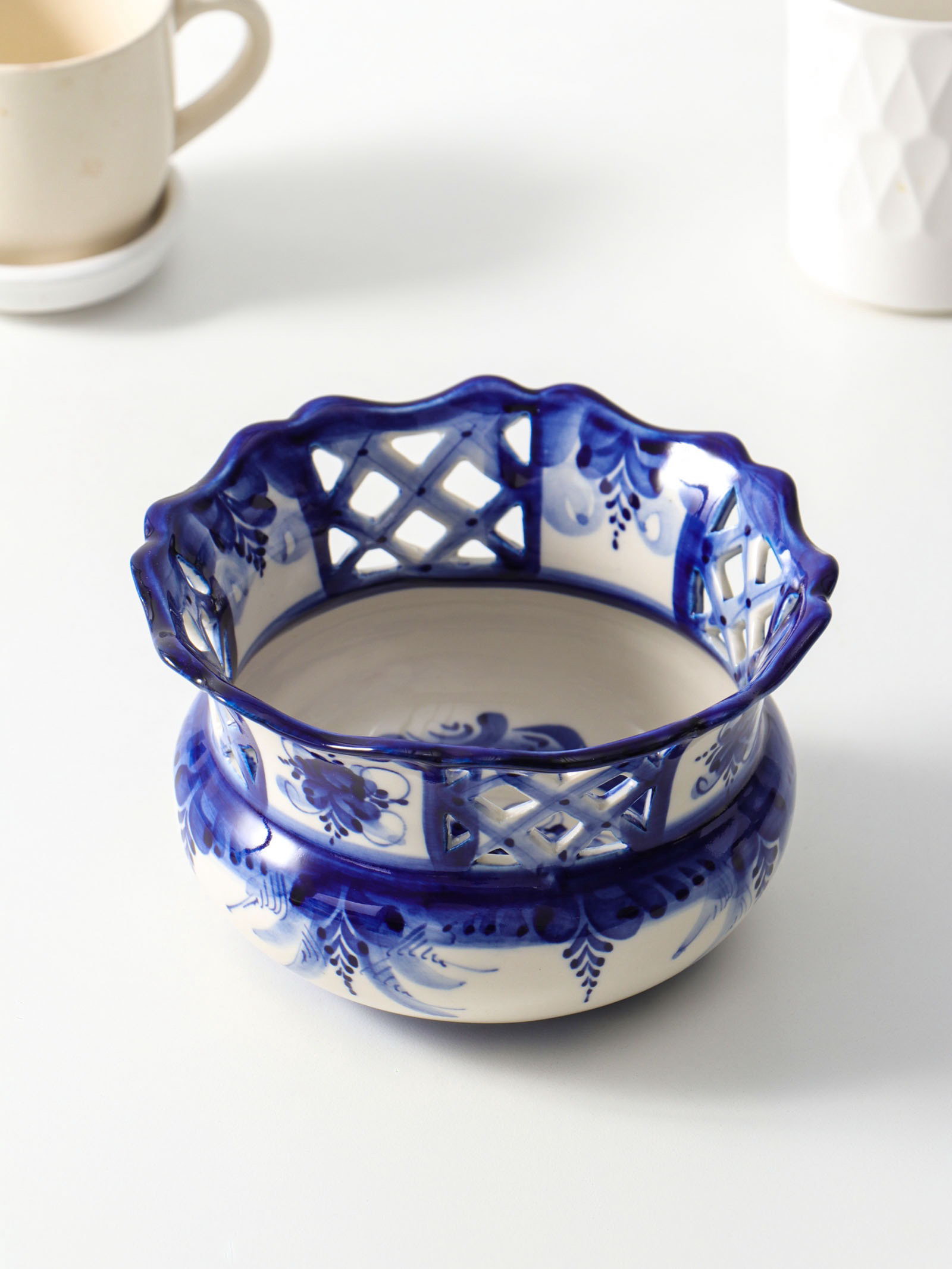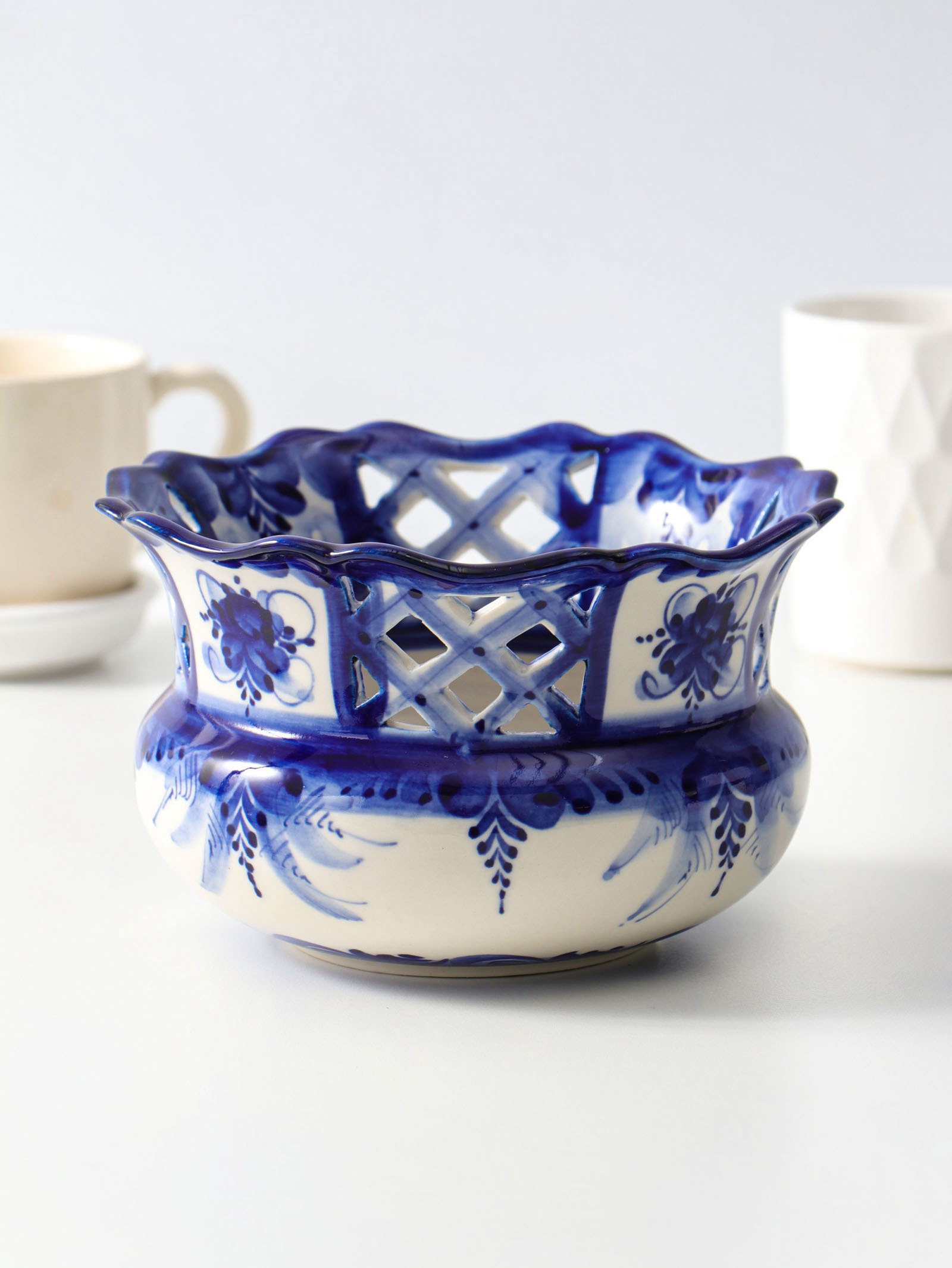 Цвет: Белый, Синий Размер упаковки: 17 x 8.5 x 17 см. tnved: 6911100000 Температурное ограничение: Нет Набор: Нет Форма: Круг Рисунок: Да Эта фарфоровая сухарница с ручной росписью в технике гжель станет изящным и практичным центром вашей столовой. Классическое сочетание белого фарфора и кобальтовой синевы создаёт ощущение свежести и воздушности, напоминая о летнем поле. Устойчивая круглая форма и оптимальный объём в 1,1 литра делают её удобной для сервировки хлеба, печенья или фруктов. Ключевые детали
