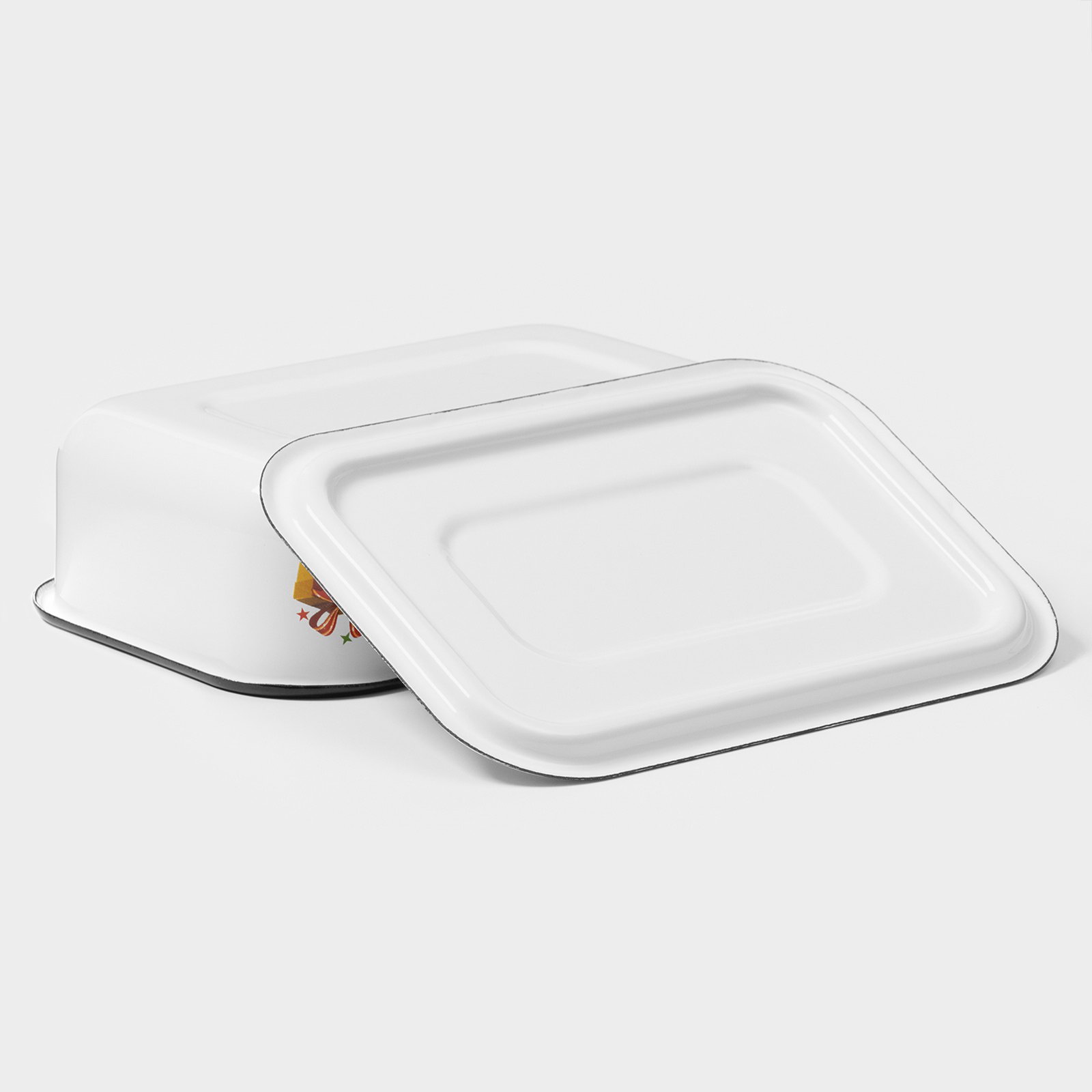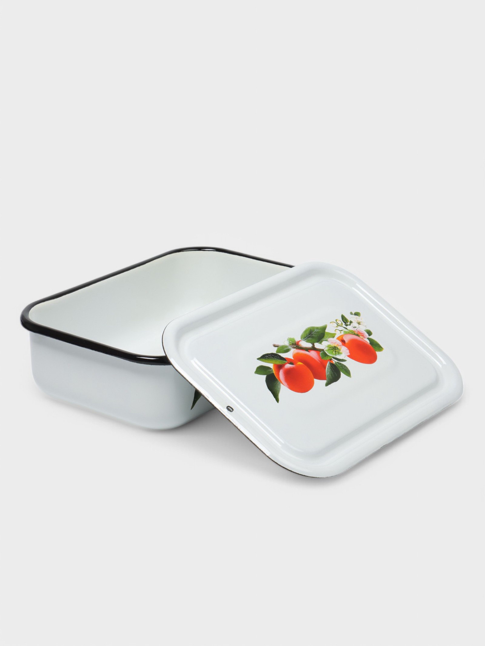Тип плиты: Для газовой плиты, Для галогенной плиты, Для стеклокерамической плиты, Для электрической плиты Размер упаковки: 16 x 6 x 22 см. Форма: Прямоугольник Крышка: Да Цвет крышки: Белый Тип покрытия: Эмалированное Особенности: Без особенностей tnved: 7323940000 tnved: 7323940000 Температурное ограничение: Нет Цвет: Белый Рисунок: Да Герметичная крышка: Нет Набор: Нет Можно использовать в СВЧ-печи: Нет Можно мыть в посудомоечной машине: Да Контейнеры всегда пригодятся в хозяйстве. В них можно хранить еду, салаты и другие пищевые продукты. Контейнер изготовлен из качественной эмали, с эмалированнной крышкой. Как известно, эмалированная посуда является безопасным материалом, сохраняет все свойства и качество содержимого. Преимущества: