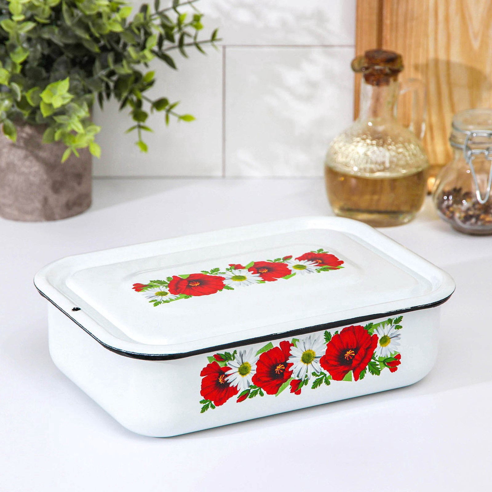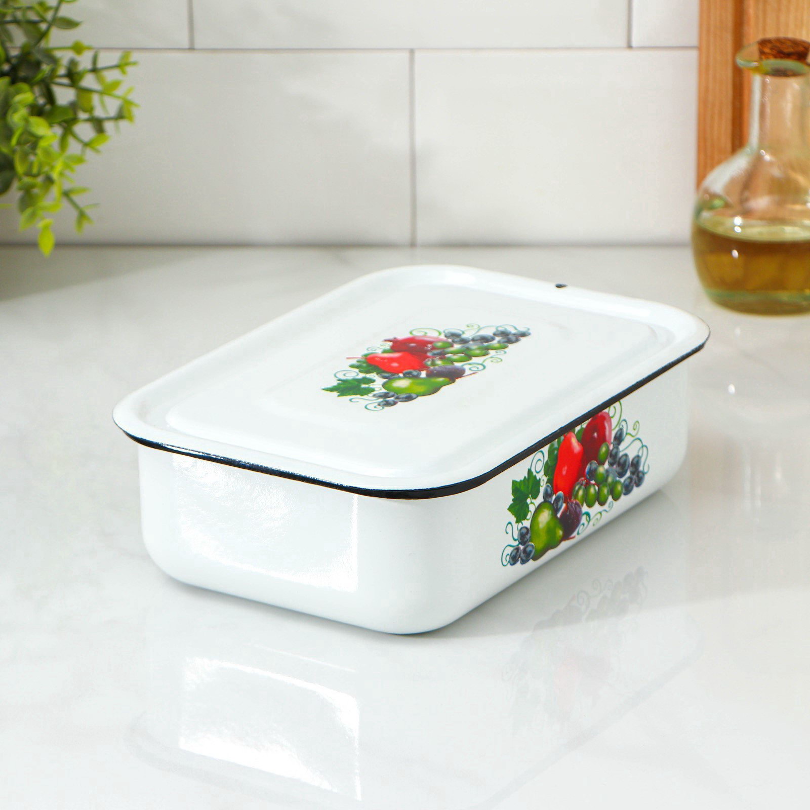 Контейнер, 1.5 л, с крышкой, эмалированная сталь, деколь МИКС, белый, 1500 мл., Керченская эмаль, Россия