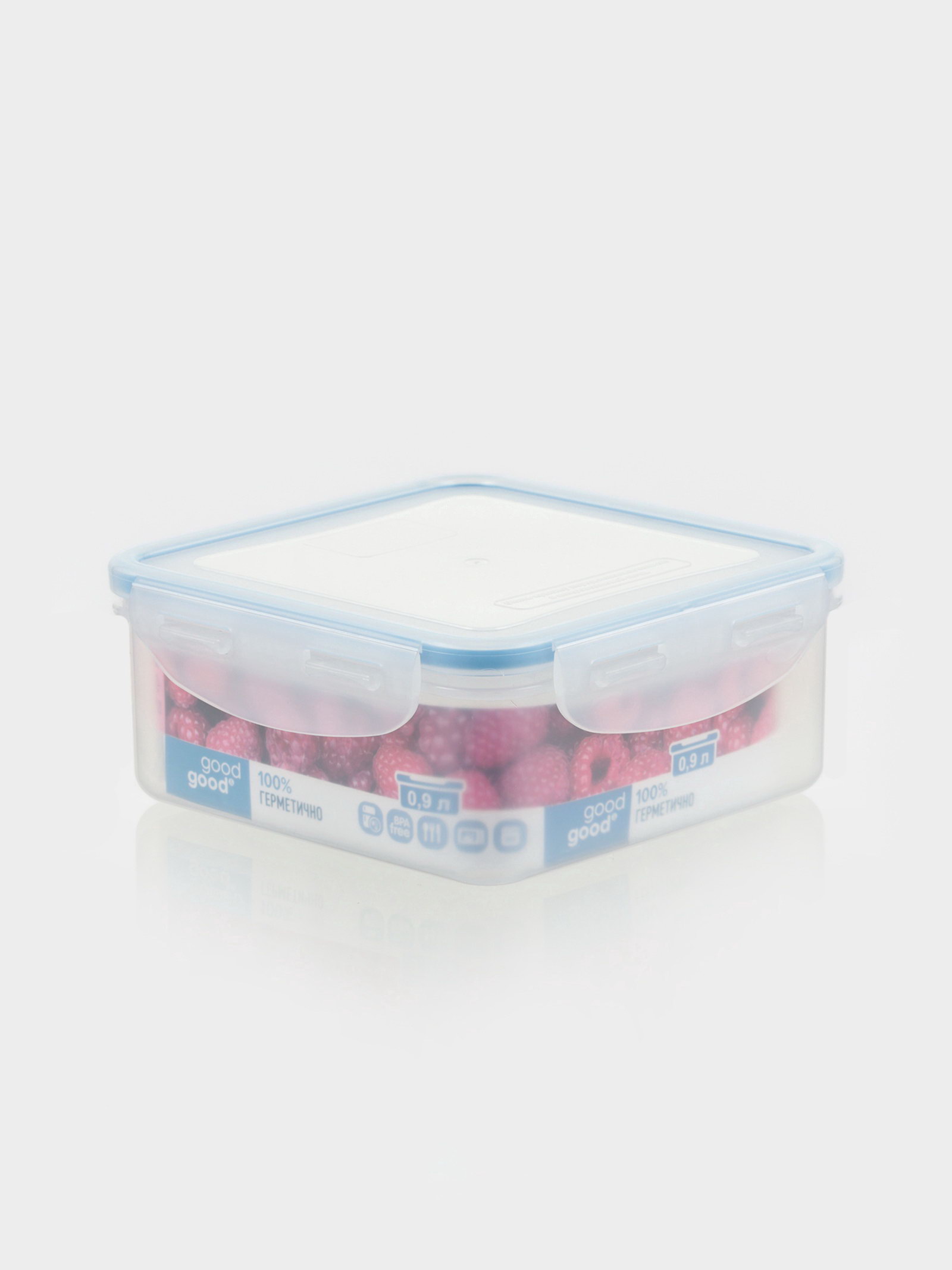 Контейнер для хранения еды 900 мл, с герметичной крышкой, пластик, МИКС, 15x15x6.5 см., Good & Good, Россия