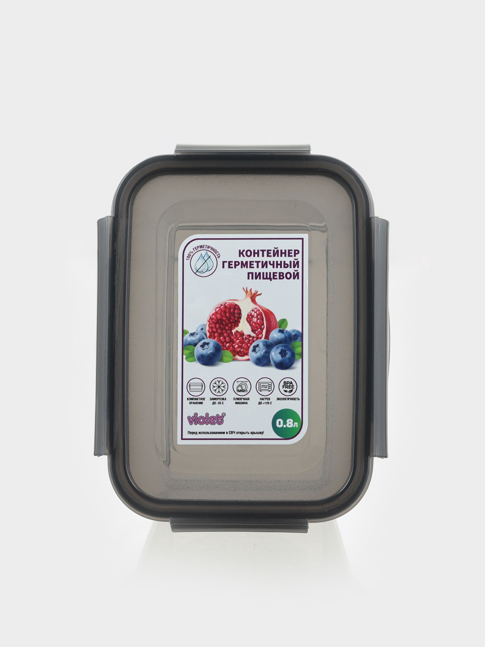Контейнер для хранения еды 800 мл, герметичный, пластик, серый, 12x17x8 см., Виолет, Россия