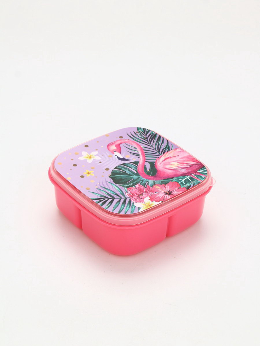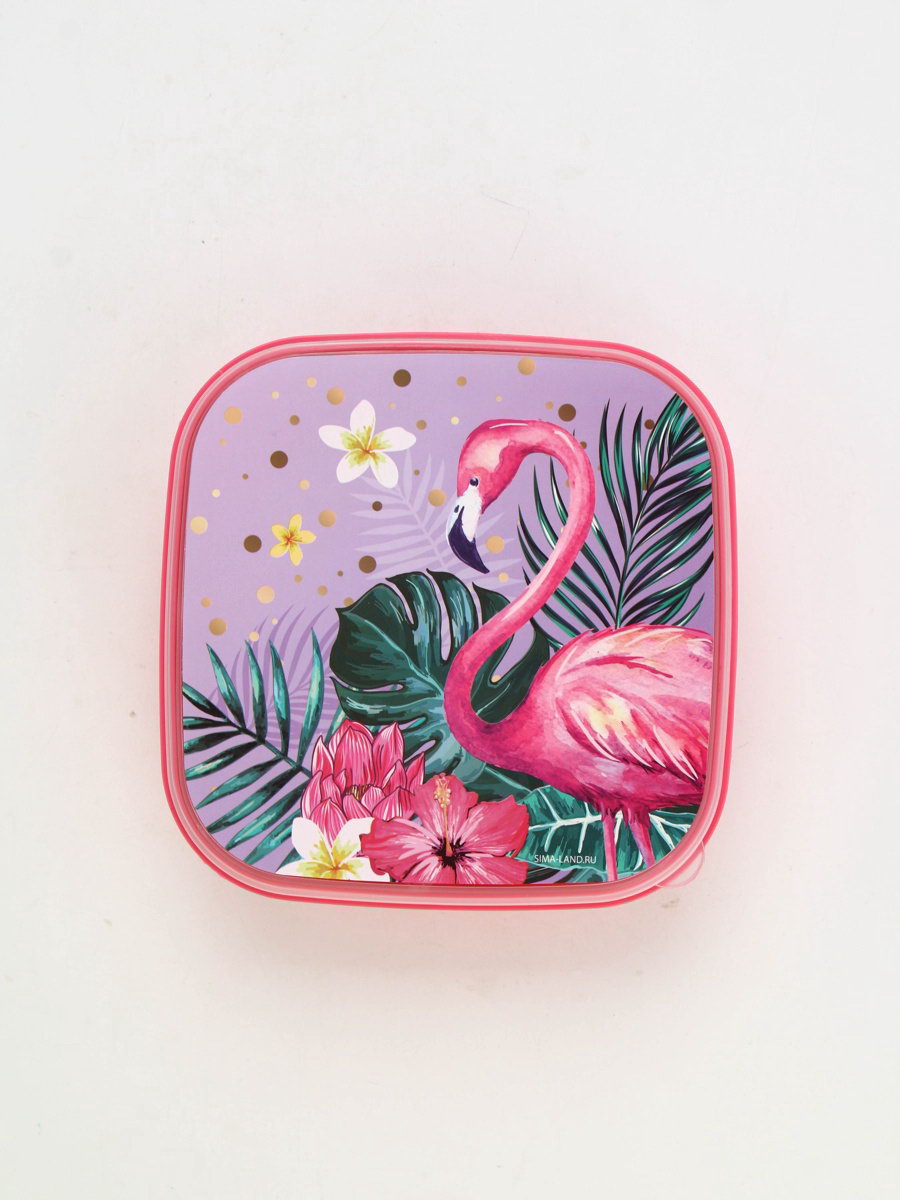 Ланч - бокс квадратный с секциями и ложкой "Фламинго", 400 мл, 15x15x6 см., Сима-ленд, Китай