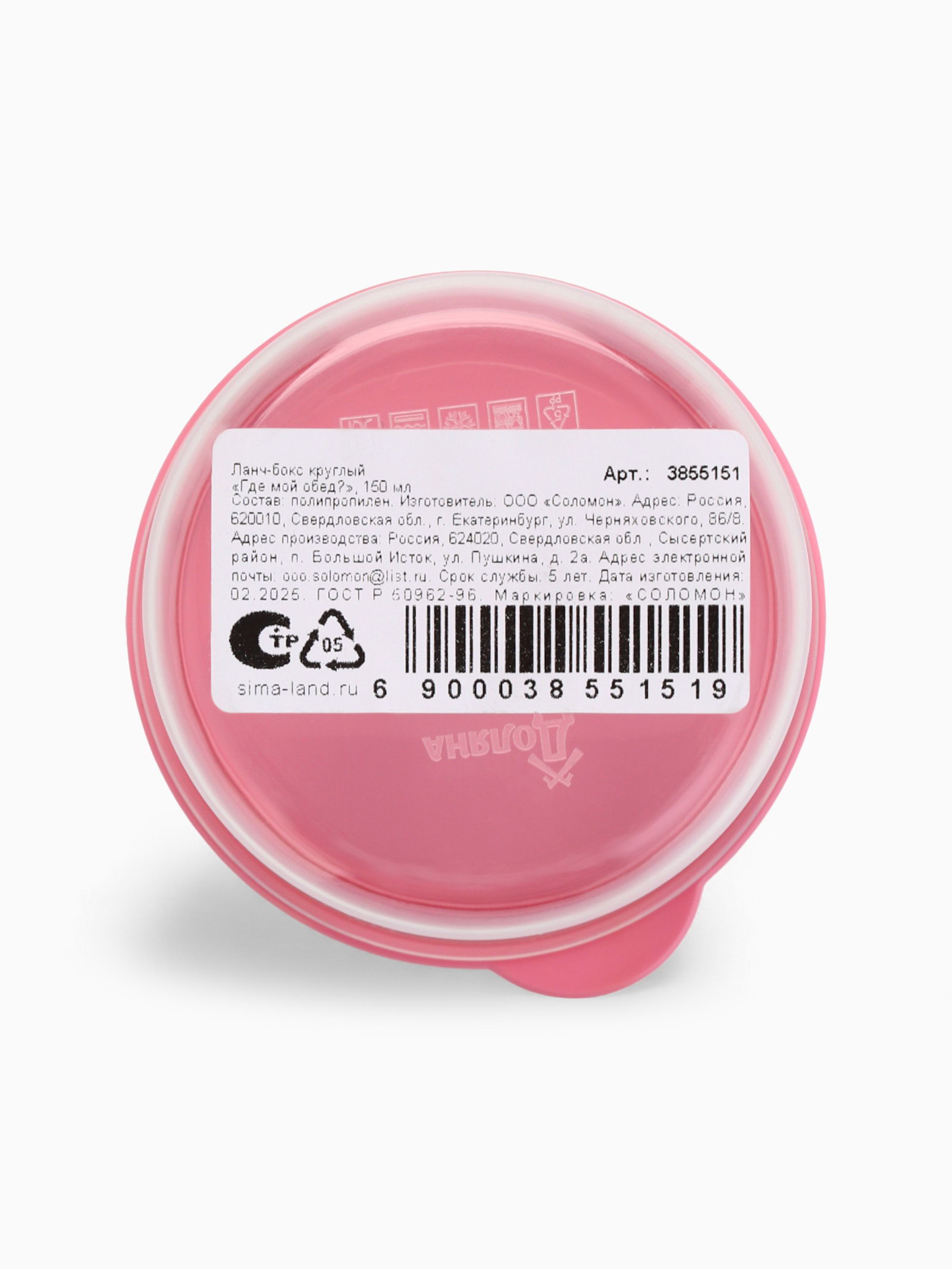 Ланч - бокс круглый "Где мой обед", 150 мл, 150 мл., Сима-ленд, Россия