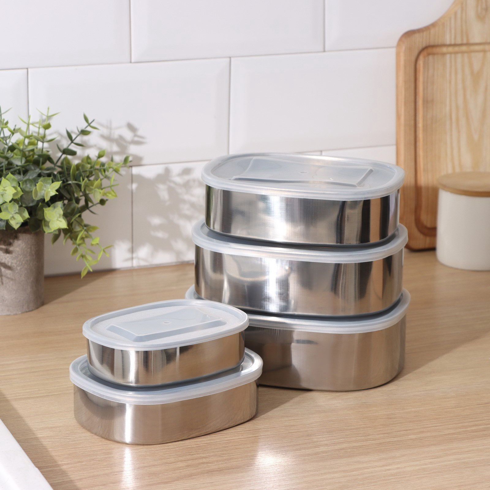 Объём, л: 0.35, 0.5, 0.7, 1, 1.2 Объём, мл: 350, 500, 700, 1000, 1200 Размер упаковки: 7 x 18.5 x 15 см. Форма: Прямоугольник tnved: 7323930000 tnved: 7323930000 Особенности: Без особенностей Цвет крышки: Белый Рисунок: Нет Набор: Да В наборе, шт.: 5 Герметичная крышка: Да Можно использовать в СВЧ-печи: Нет Цвет: Серебристый | ||