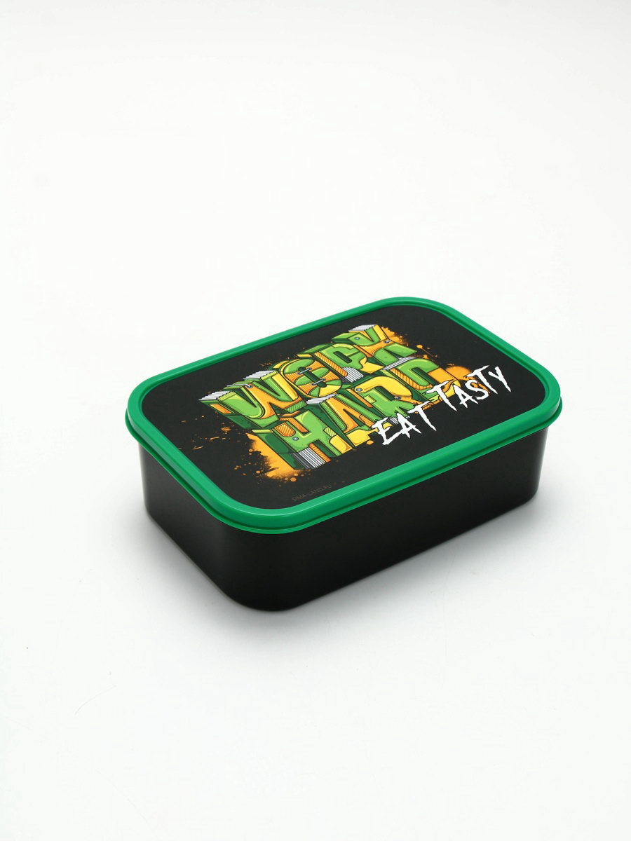 Цвет крышки: Зелёный, Чёрный Размер упаковки: 13.5 x 6 x 20 см. Можно мыть в посудомоечной машине: Да Цвет: Чёрный Форма: Прямоугольник tnved: 3924100000 Особенности: Герметичный Тематика праздника: Универсальная тематика Температурное ограничение: Нет Рисунок: Да Набор: Нет Герметичная крышка: Да Можно использовать в СВЧ-печи: Да Наличие столовых приборов: Нет Ланч-бокс от торговой марки FoodVibes - это удобное и стильное решение для хранения и переноса пищи. Изготовленный из высококачественного пластика, этот ланч-бокс комбинирует прочность и легкость, делая его идеальным для повседневного использования. Данный прямоугольный ланч-бокс обладает объемом в 1200 мл - достаточно для хранения обеда или перекуса. Герметичная крышка обеспечивает сохранность пищи, а возможность использования в СВЧ-печи делает его удобным для подогрева пищи. Яркий дизайн ланч-бокса, выполненный в одном цвете с крышкой, делает его не только функциональным, но и модным аксессуаром. Этот ланч-бокс подойдет как для личного использования, так и в качестве подарка. Одним из преимуществ этого ланч-бокса является возможность самостоятельно собрать набор с другими ланч-боксами различных объемов схожего дизайна. Это позволяет вам создать индивидуальный комплект, который отвечает всем вашим потребностям. | ||