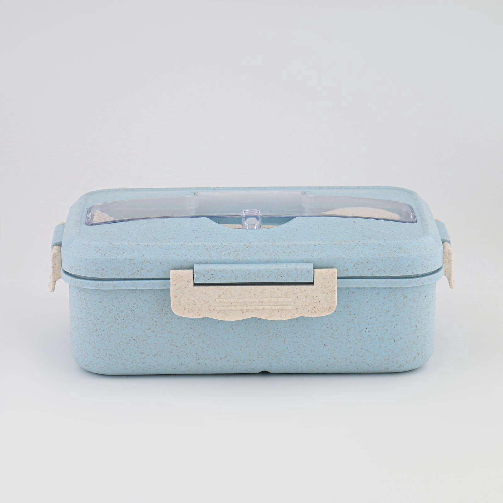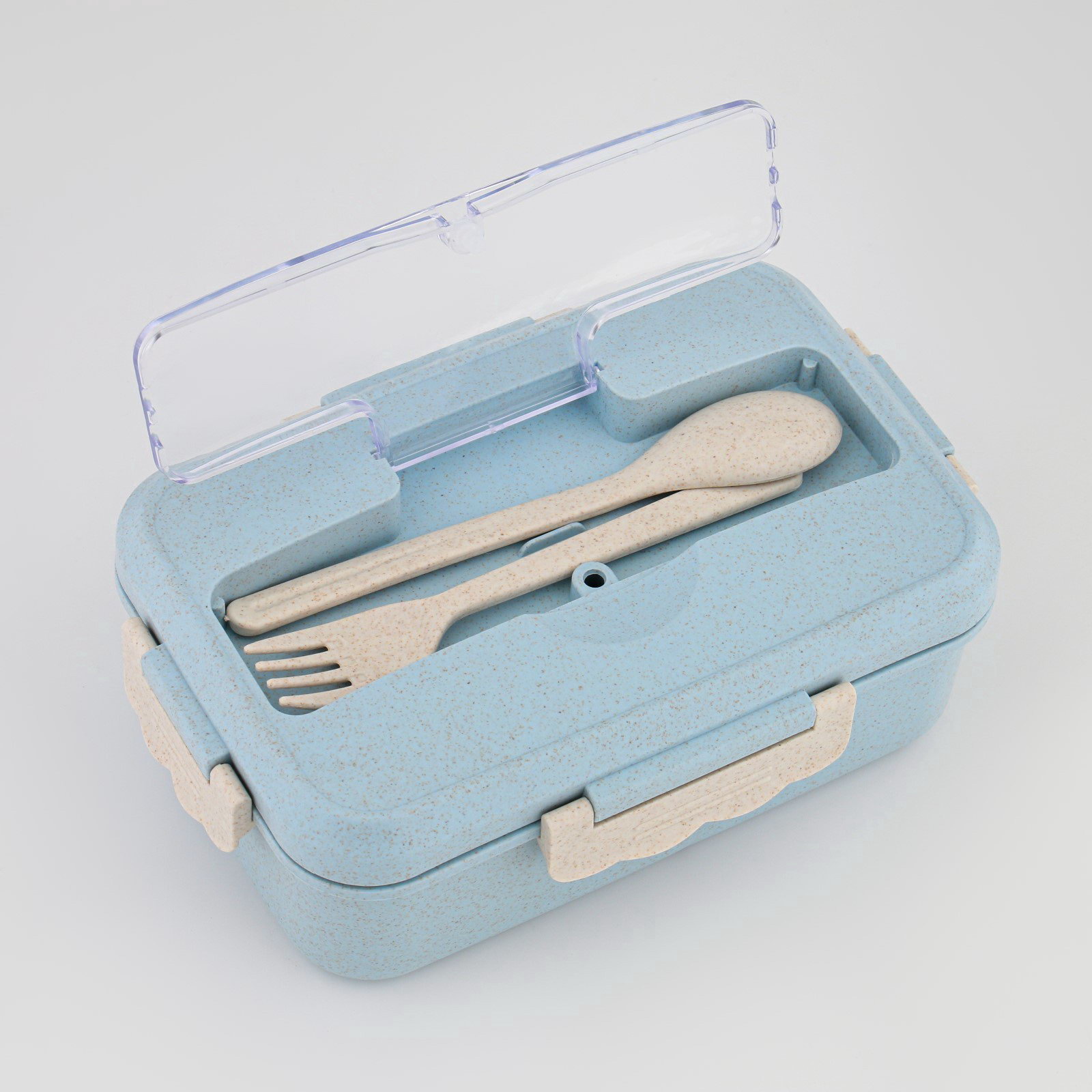 Ланч-бокс в школу TAKE IT EASY, 800 мл, с приборами, 12x7.6x20 см, пшеничная солома, голубой, 800 мл., TAKE IT EASY, Китай